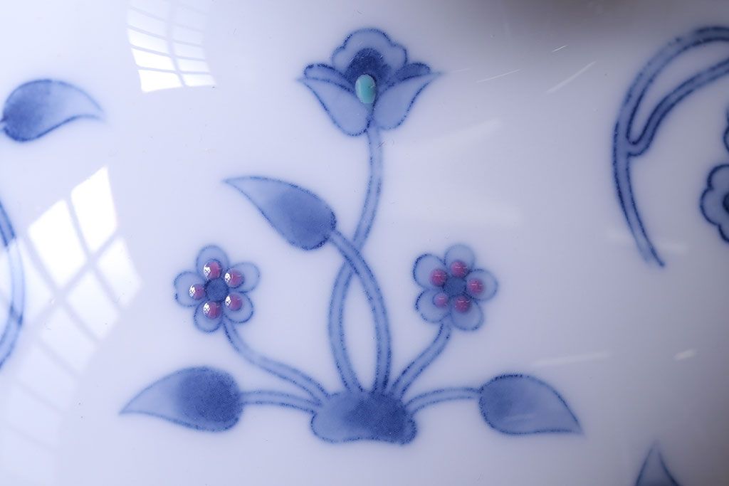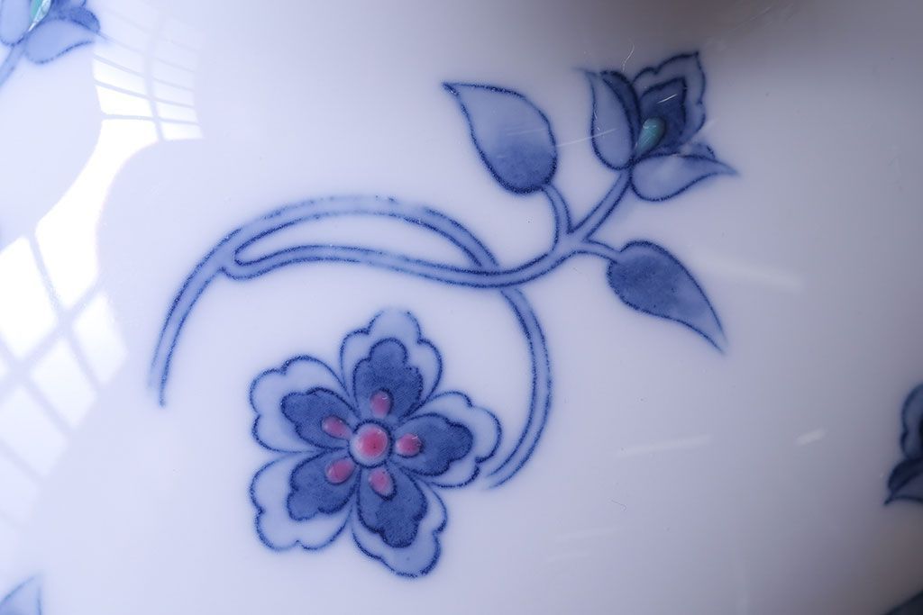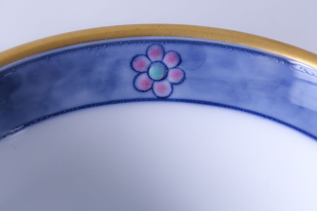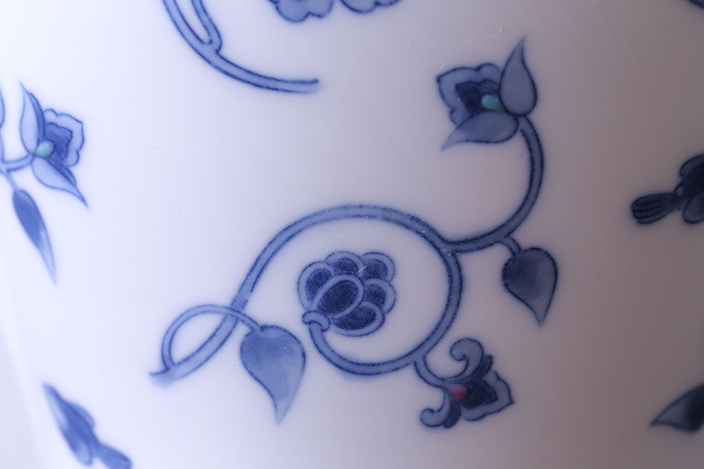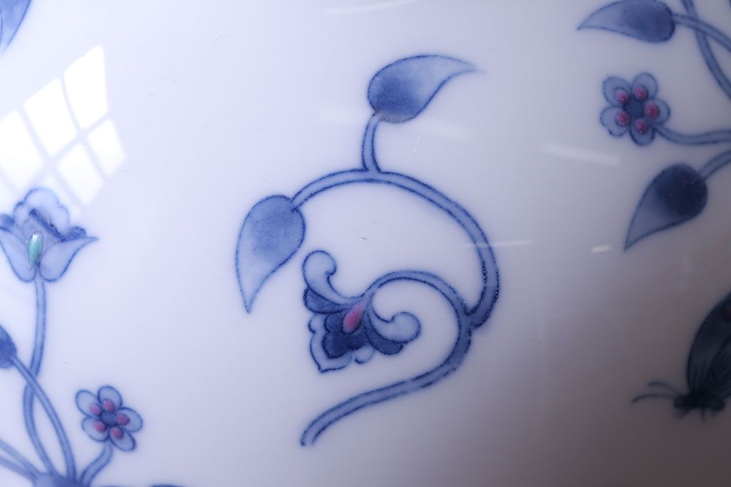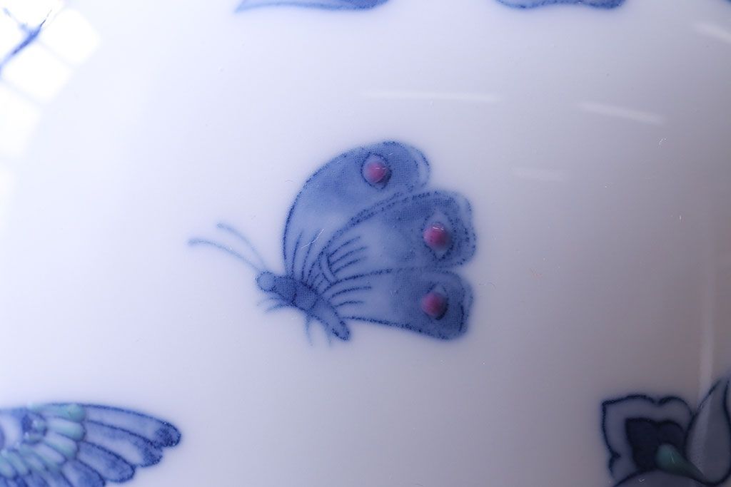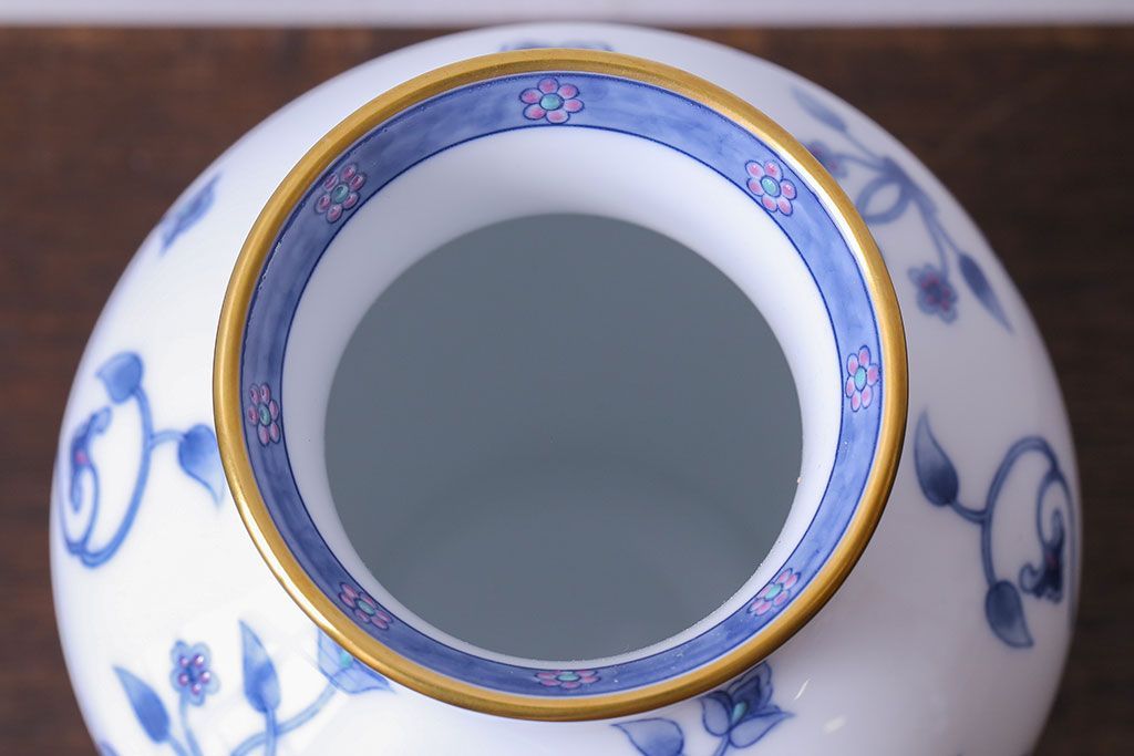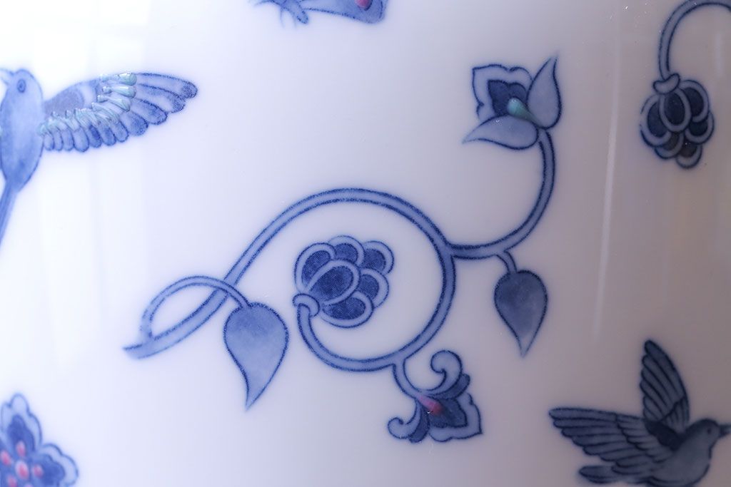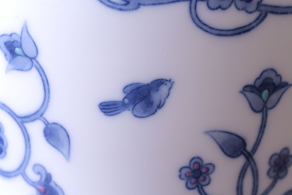 アンティーク雑貨 中古 大蔵陶園(OKURA) 花と蝶と鳥の絵柄が上品な花瓶(花器)