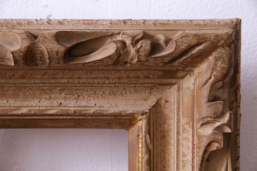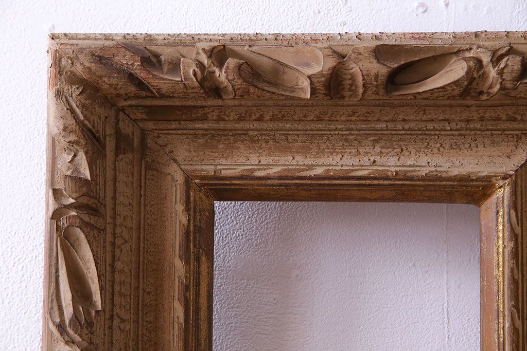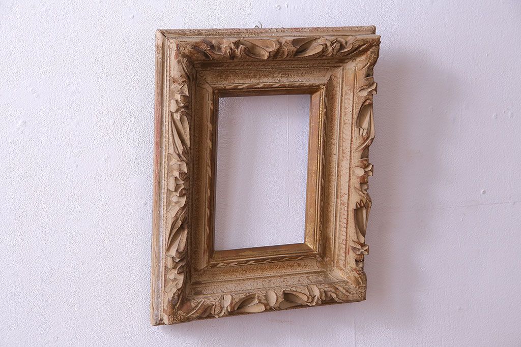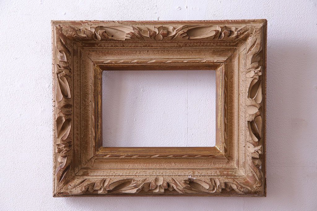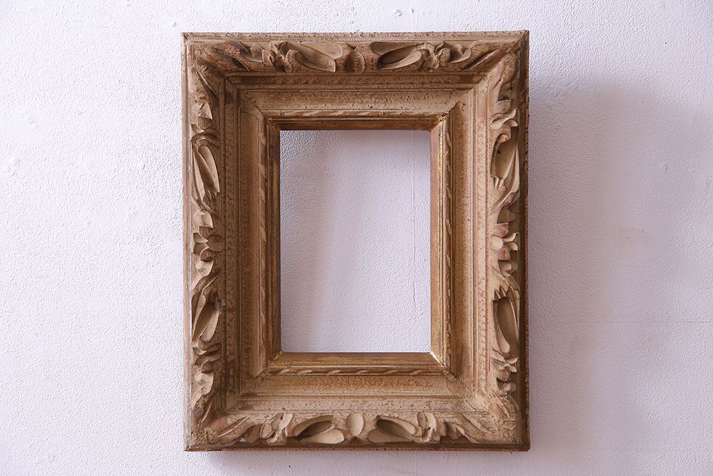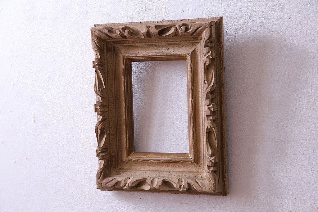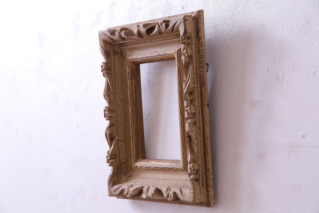アンティーク雑貨 立体的で味のある木彫りのフレーム(額縁)