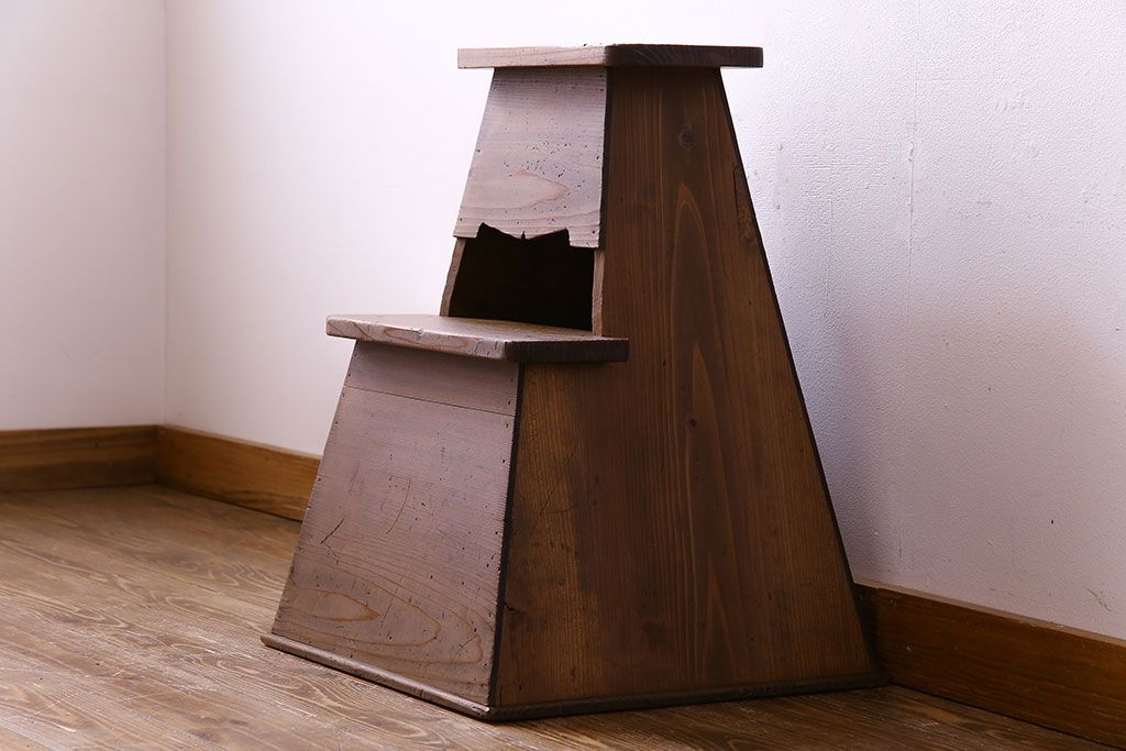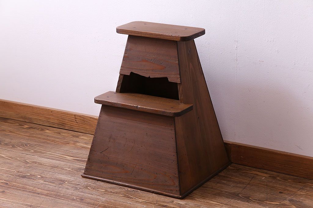 アンティーク雑貨 大正昭和期 素朴な風合いのレトロな踏み台(飾り台、花台)