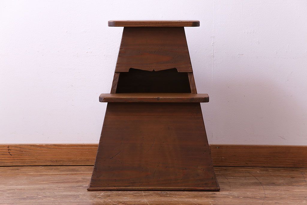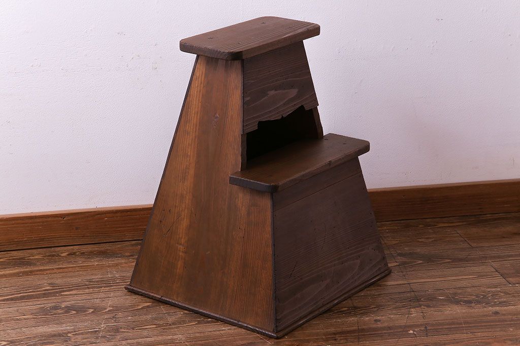 大正昭和期 素朴な風合いのレトロな踏み台(飾り台、花台)です。