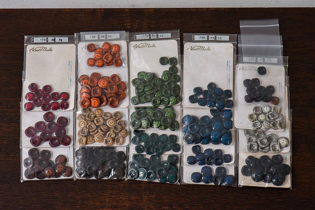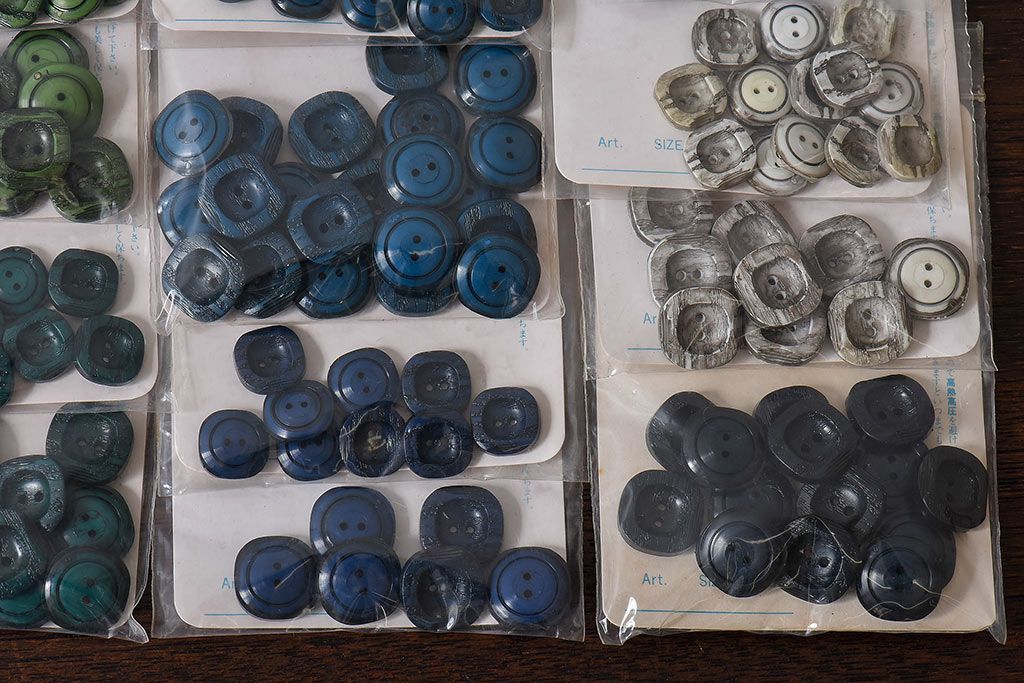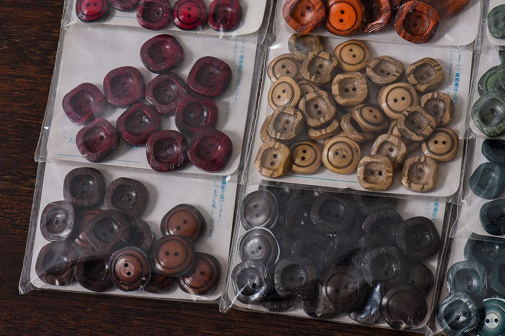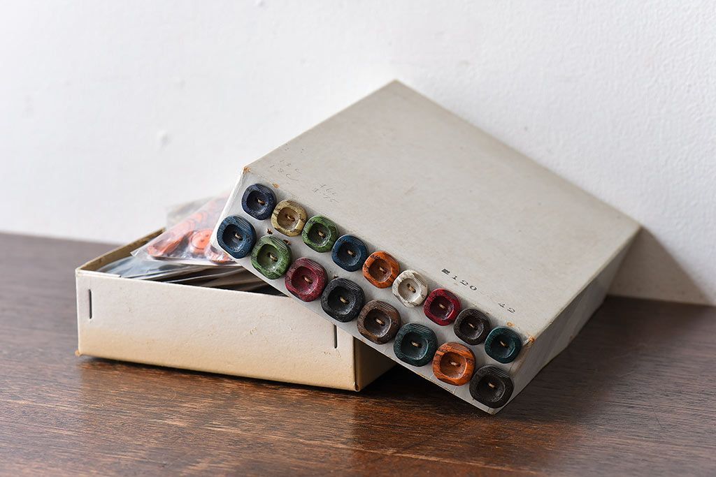 アンティーク雑貨 木目調のカラフルなビンテージボタンセット