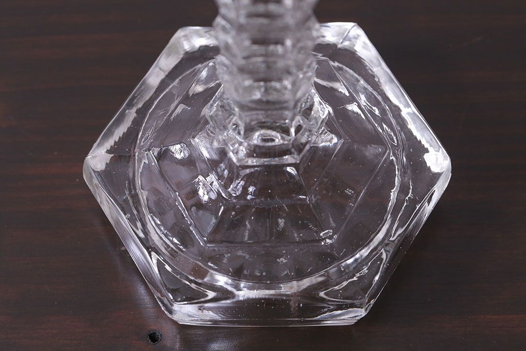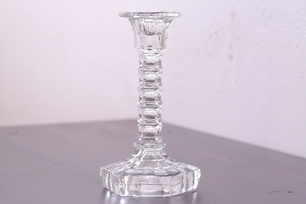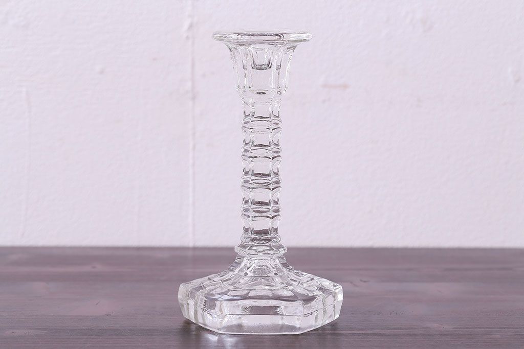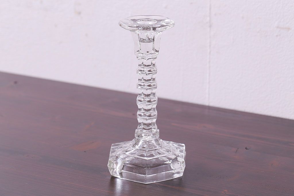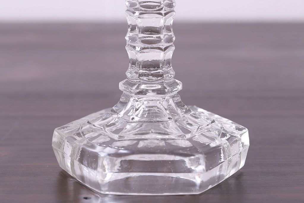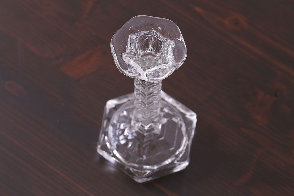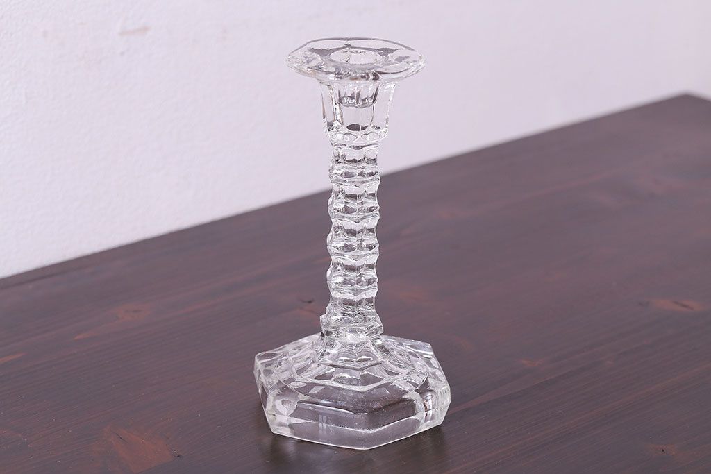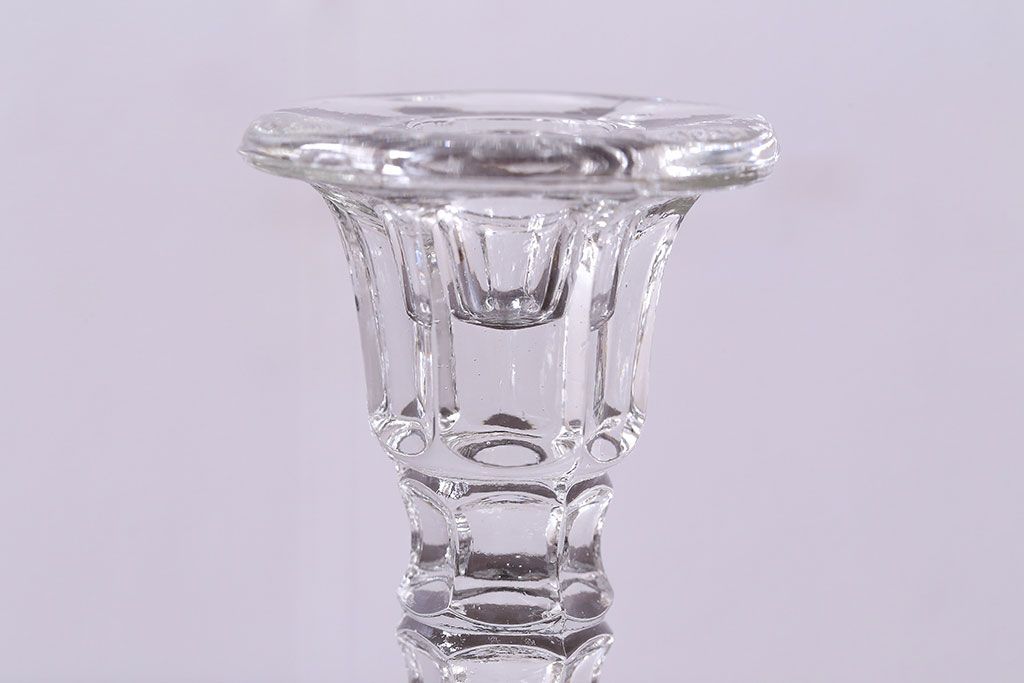 アンティーク雑貨 イギリスビンテージ エレガントなフォルムのガラス製キャンドルスタンド(ろうそく立て)