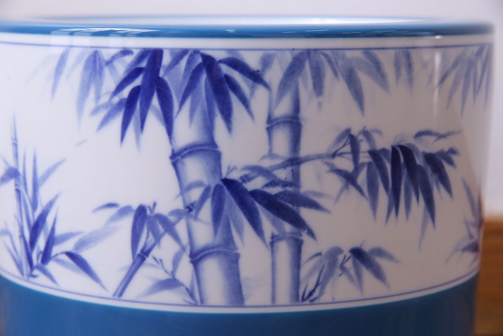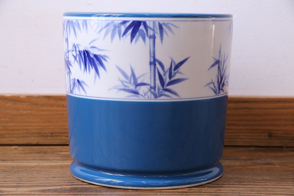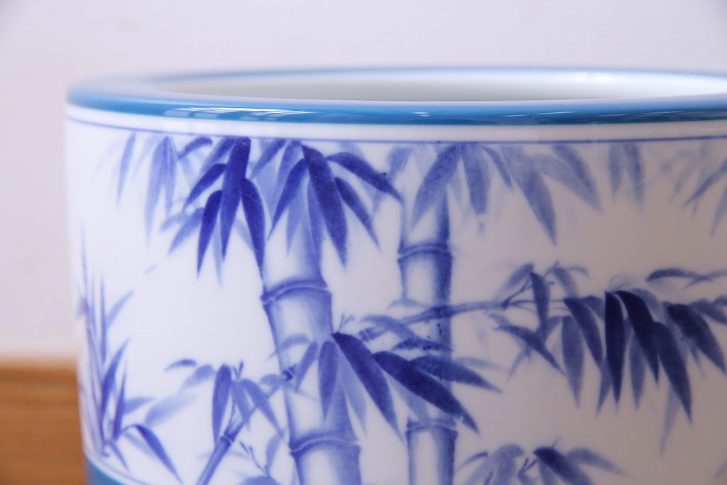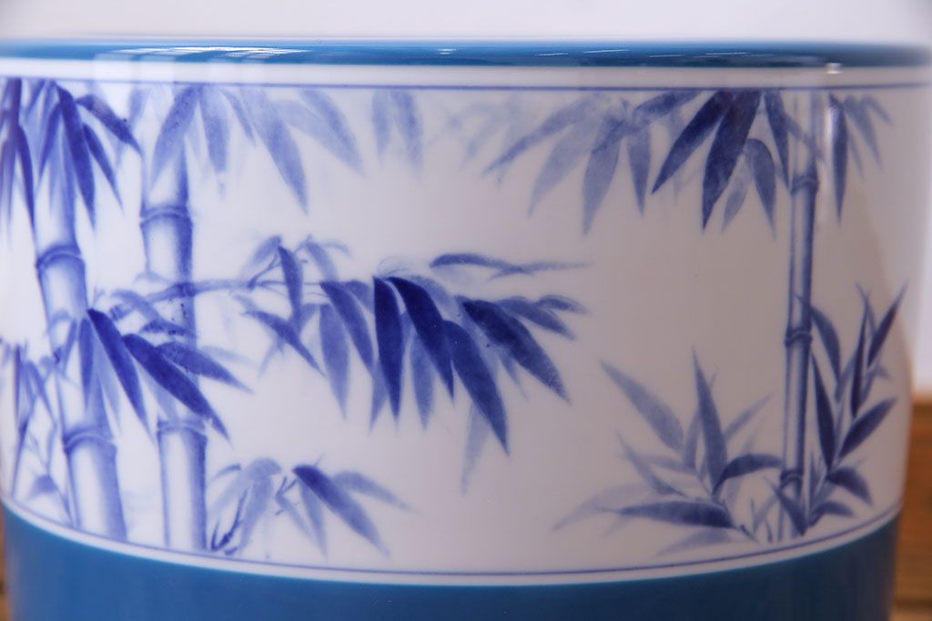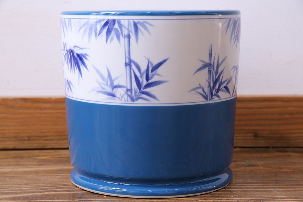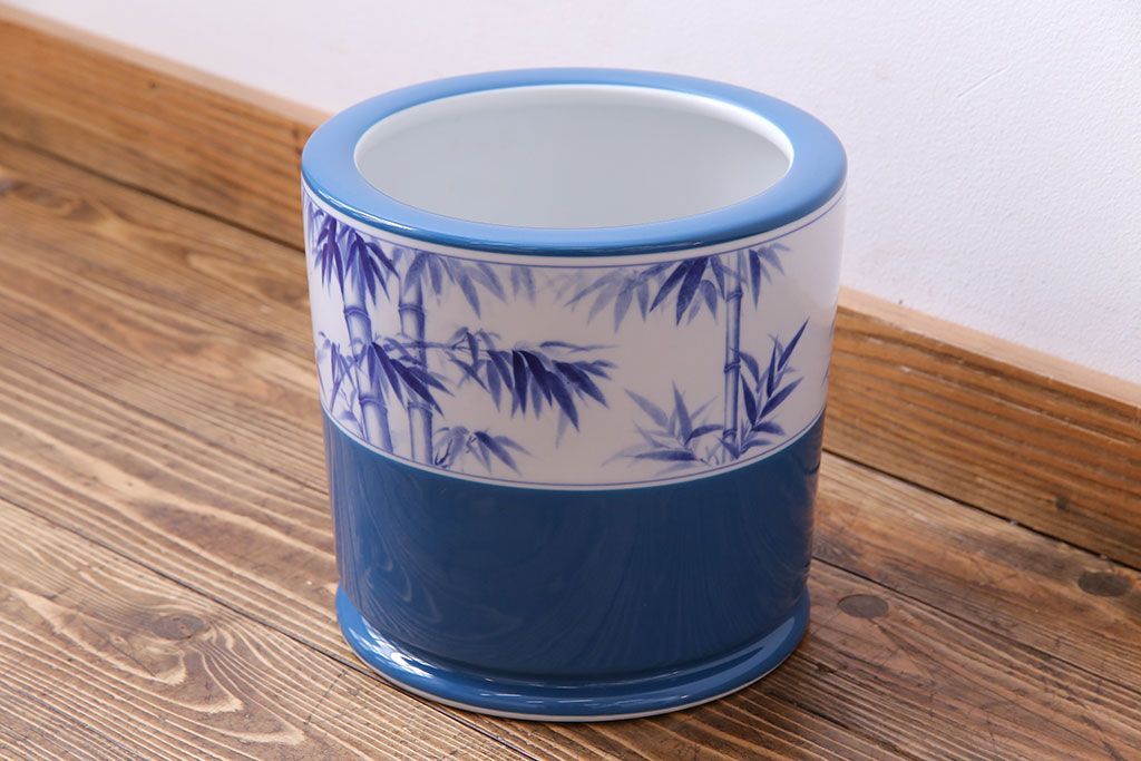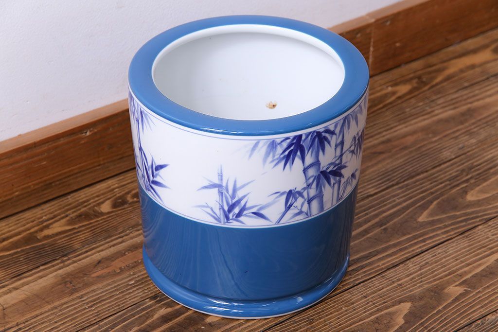 火鉢> 瀬戸火鉢 > アンティーク雑貨 ノリタケ・則武(日陶) 風情ある竹モチーフの火鉢(手あぶり、鉢カバー、傘立て)