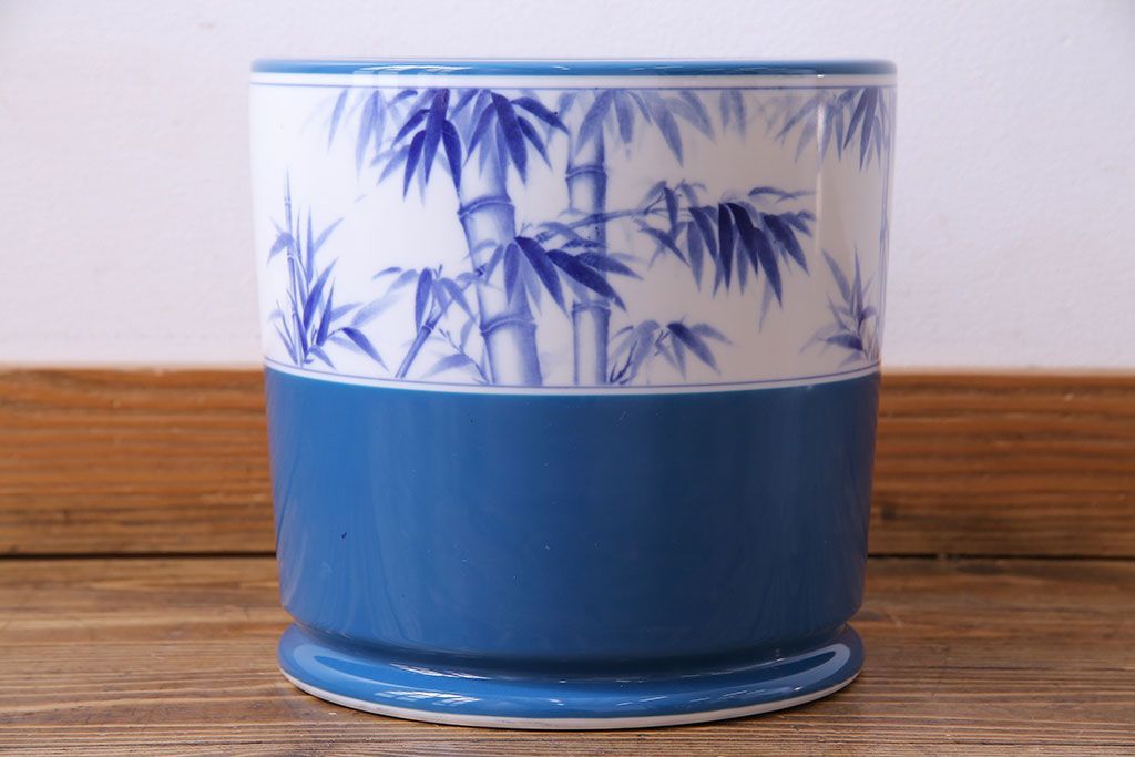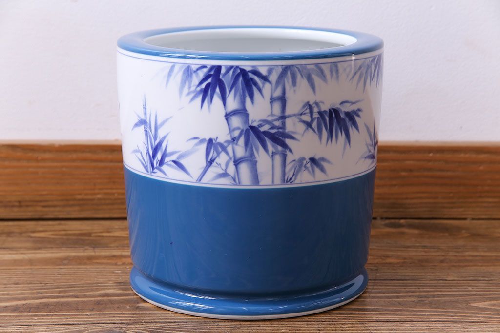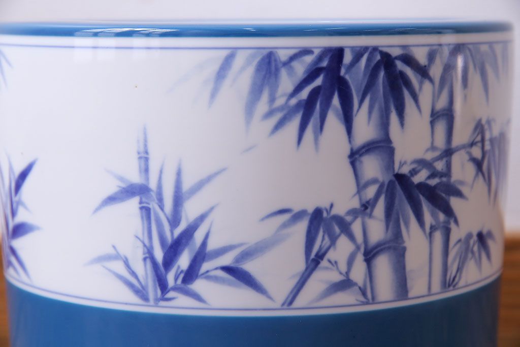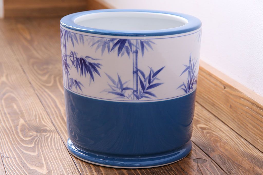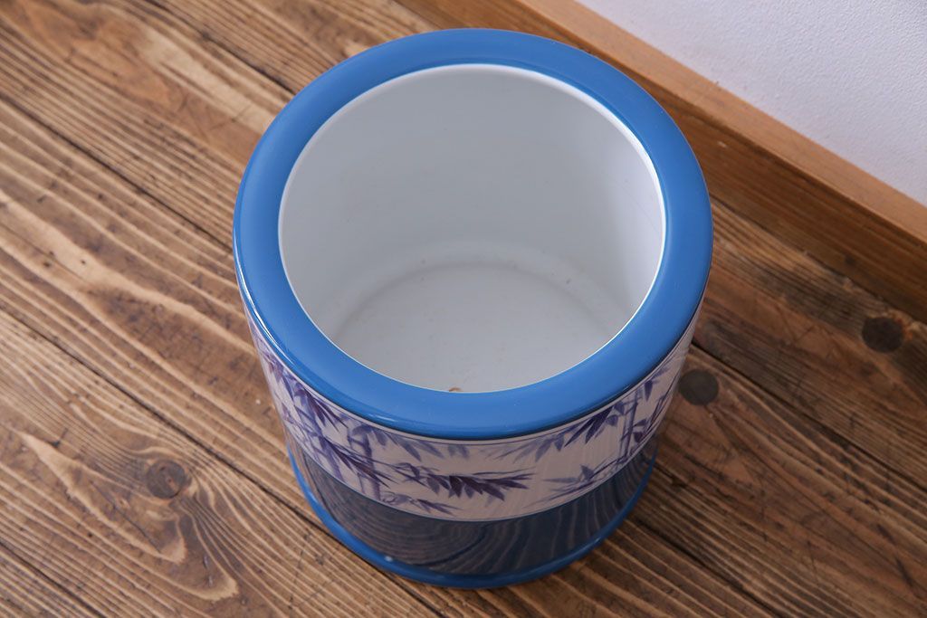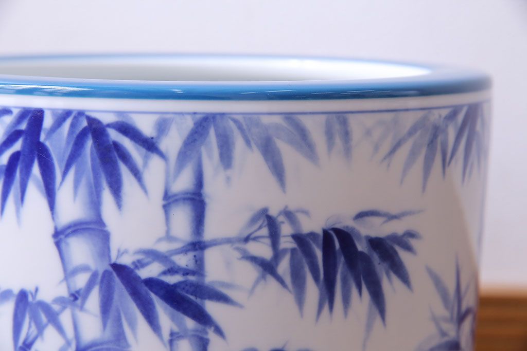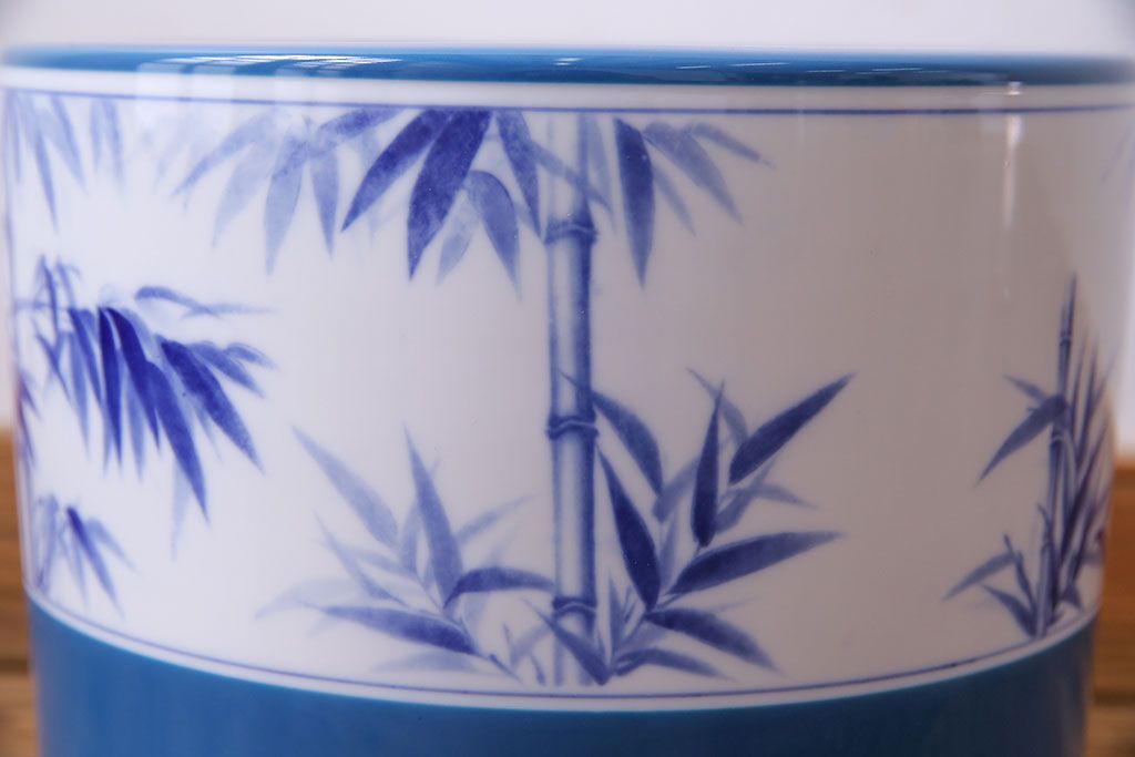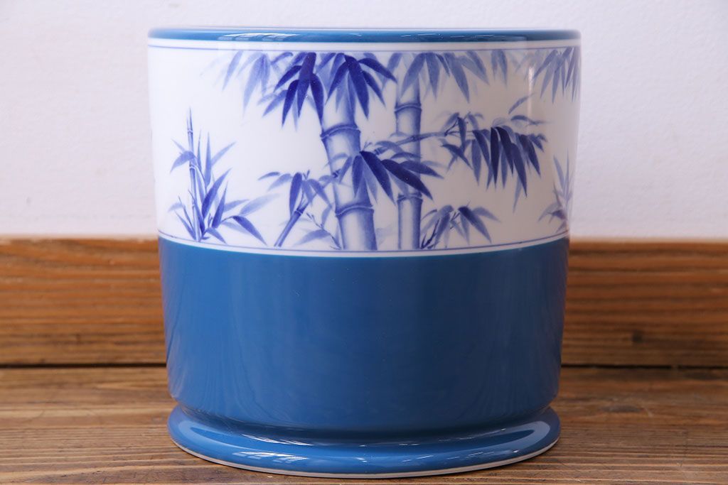 火鉢> 瀬戸火鉢 > アンティーク雑貨 ノリタケ・則武(日陶) 風情ある竹モチーフの火鉢(手あぶり、鉢カバー、傘立て)