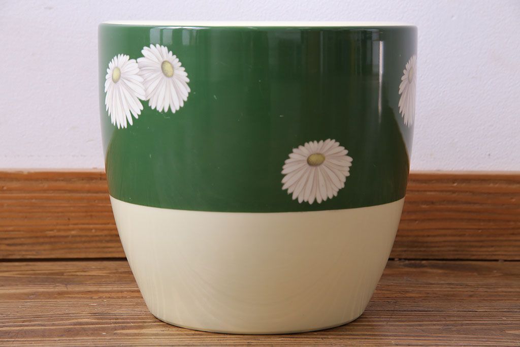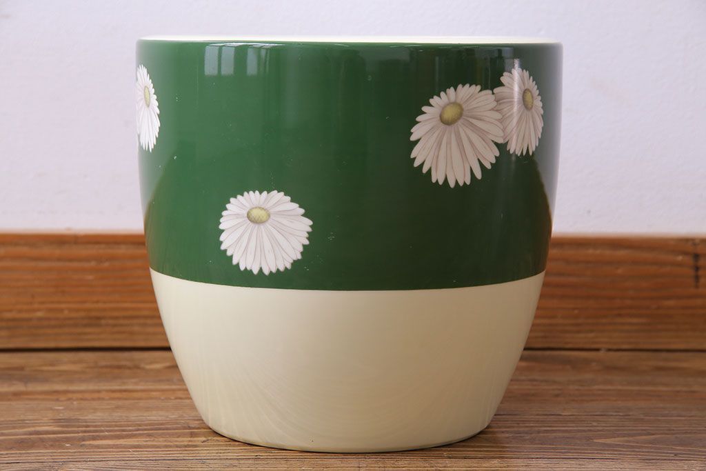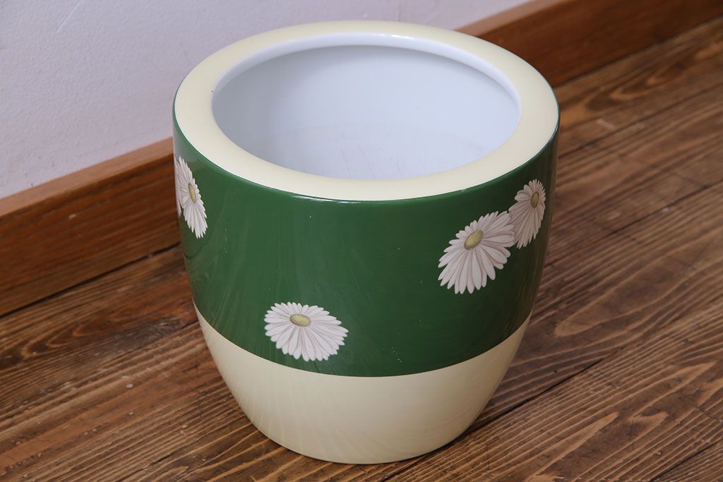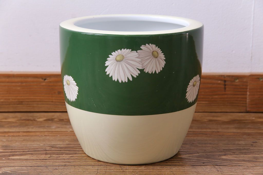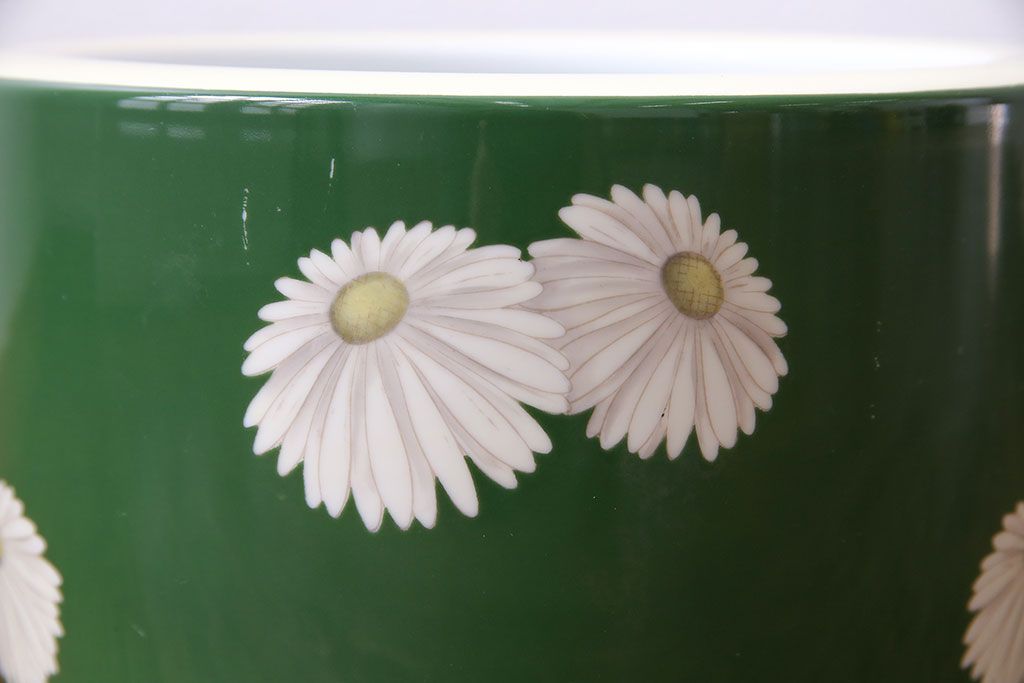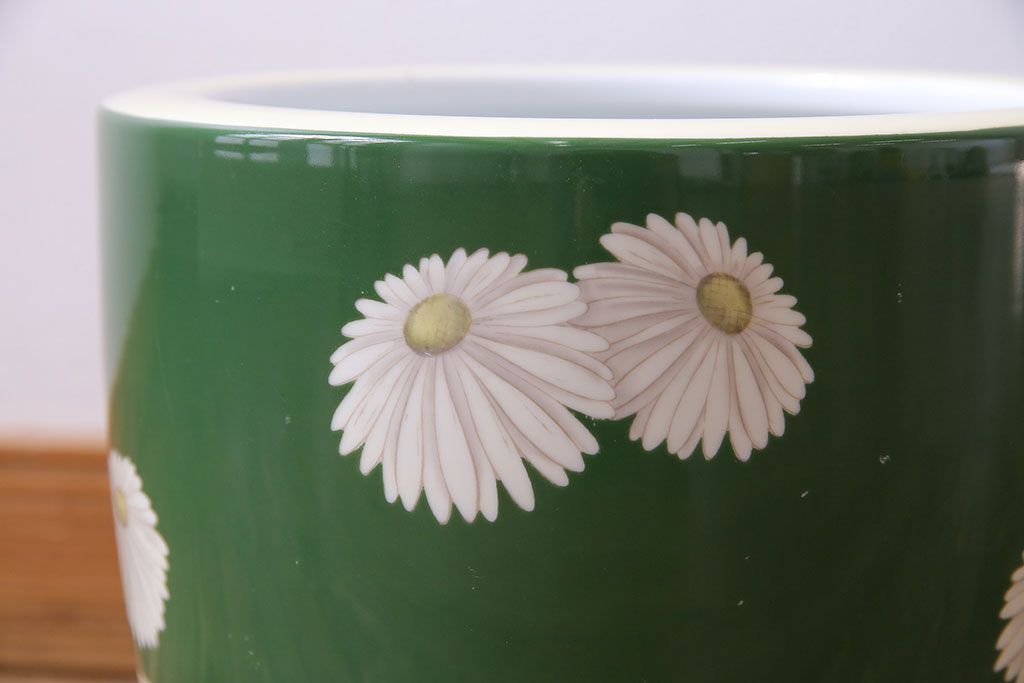 雑貨 > アンティーク雑貨 オールドノリタケ・則武(日陶) 緑地 白菊文様 バイカラーがおしゃれな壱型火鉢(手あぶり、鉢カバー、傘立て)