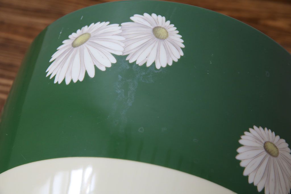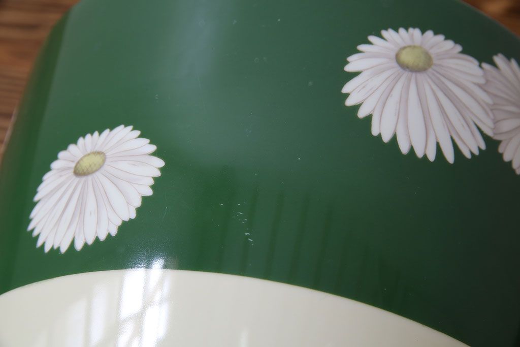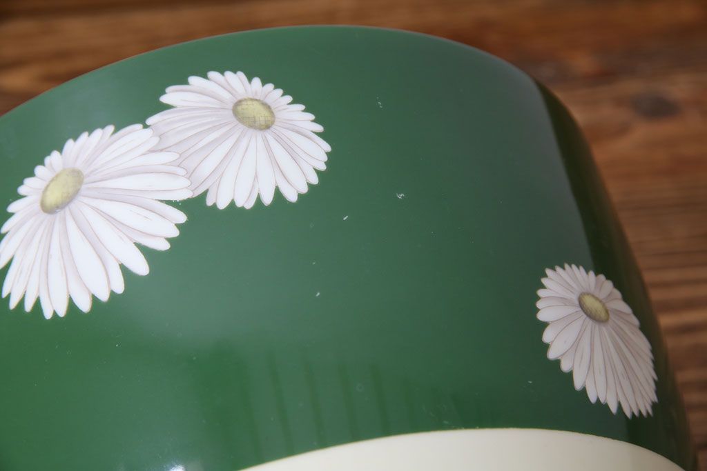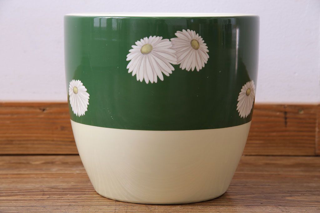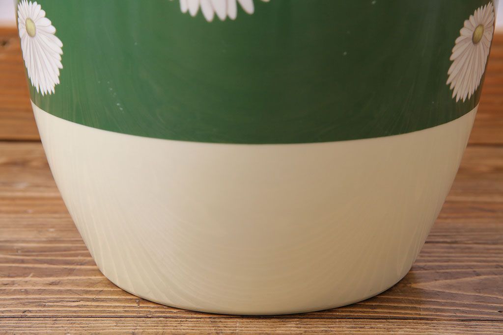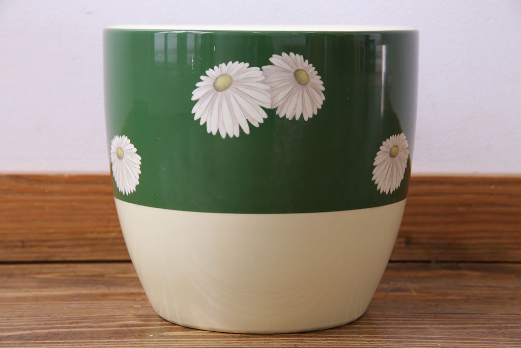 雑貨 > アンティーク雑貨 オールドノリタケ・則武(日陶) 緑地 白菊文様 バイカラーがおしゃれな壱型火鉢(手あぶり、鉢カバー、傘立て)