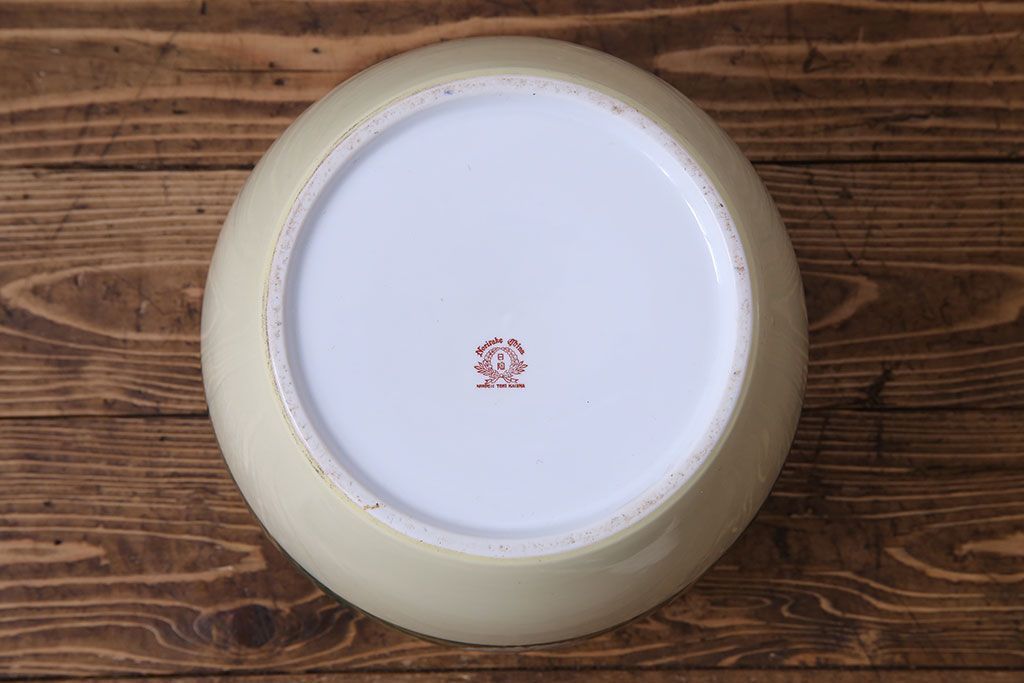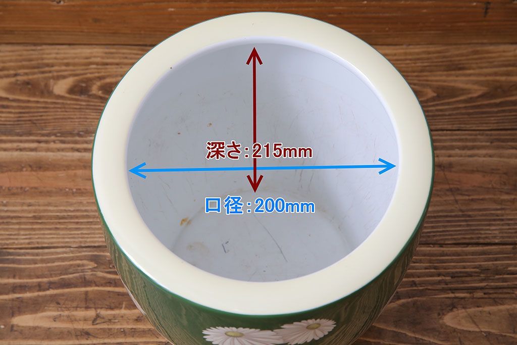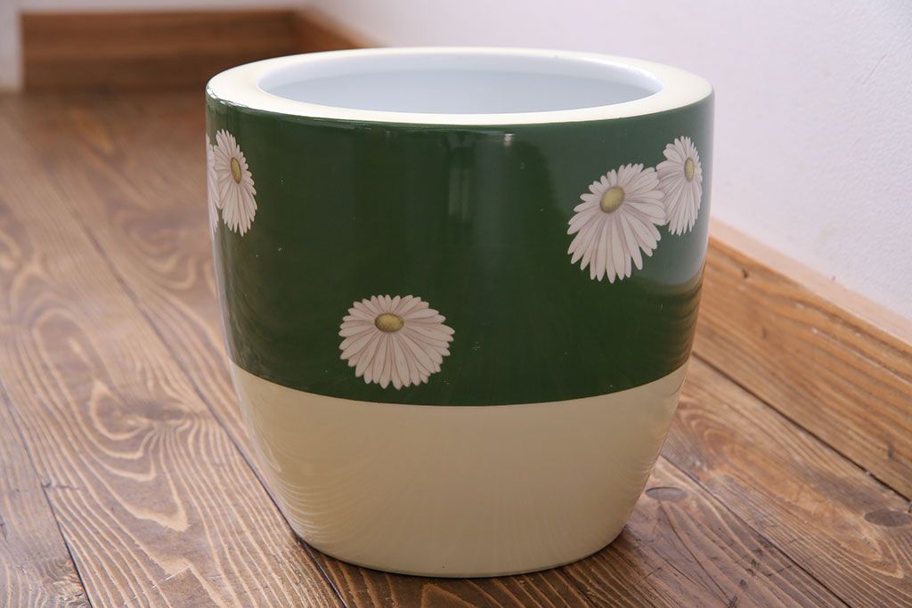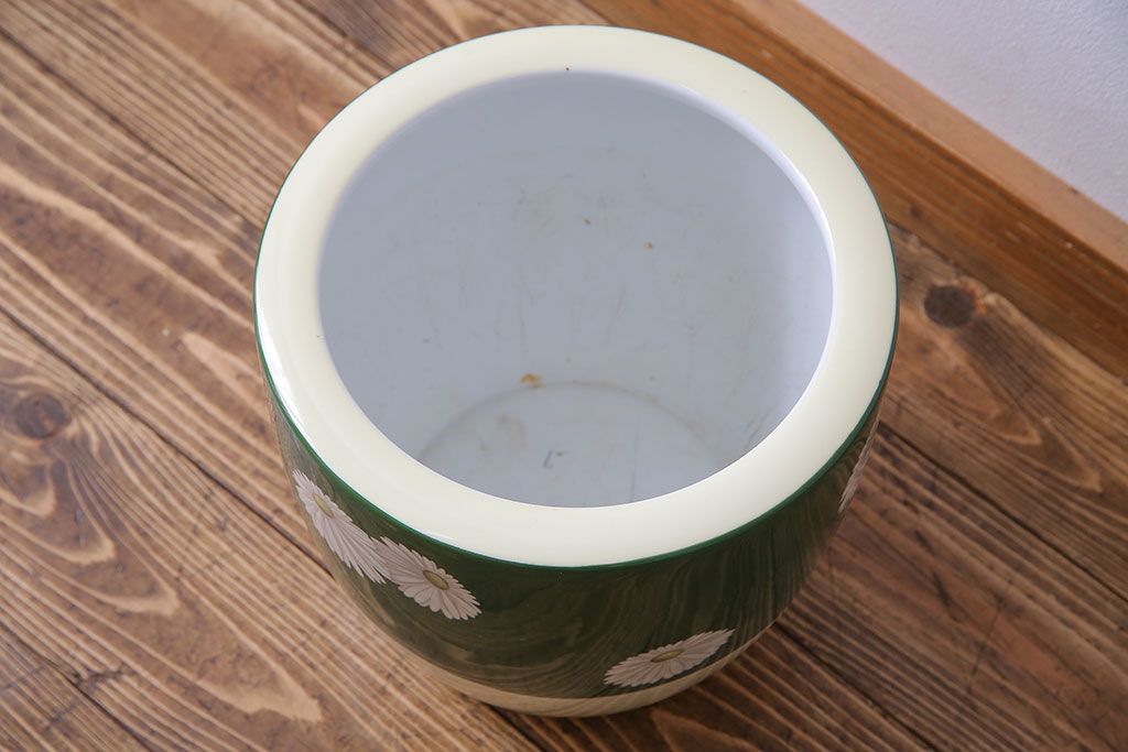 火鉢> 瀬戸火鉢 > アンティーク雑貨 オールドノリタケ・則武(日陶) 緑地 白菊文様 バイカラーがおしゃれな壱型火鉢(手あぶり、鉢カバー、傘立て)