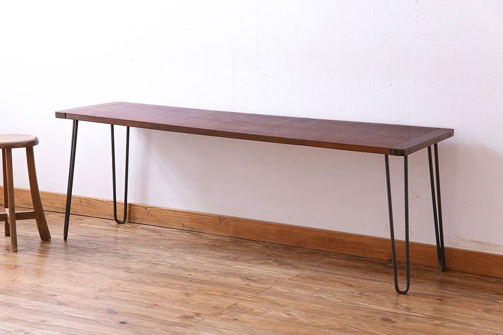 アンティーク家具 和製アンティーク 古材の質感が味わい深い鉄脚テーブル(作業台、アイアンテーブル、ディスプレイ台、飾り台)(R-027767)です。