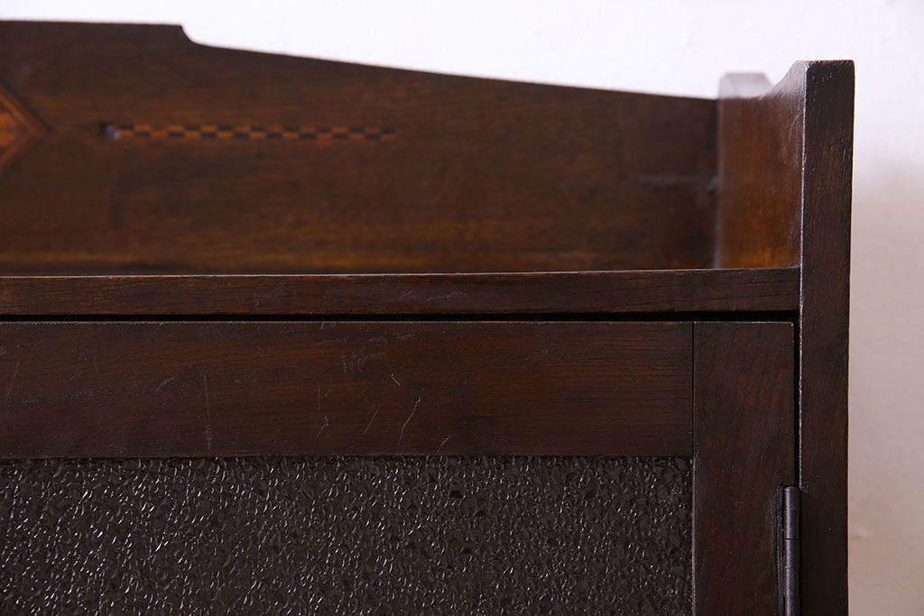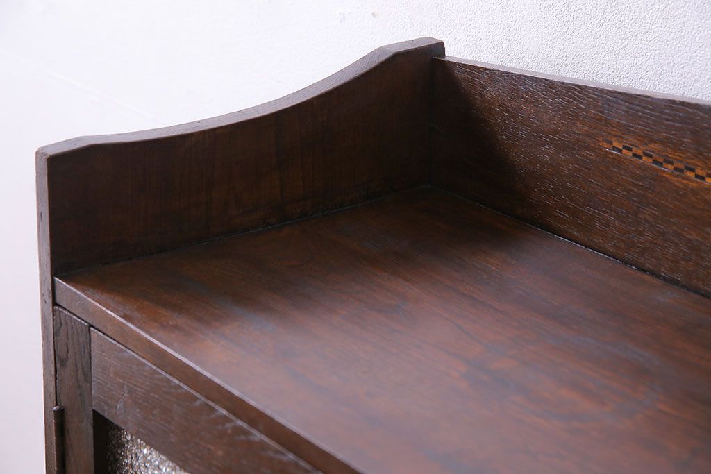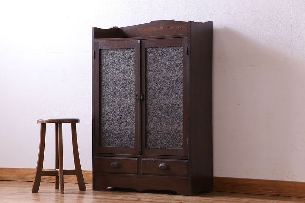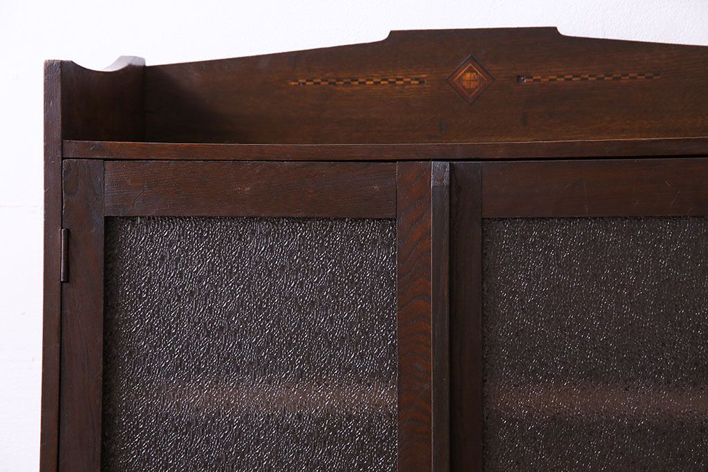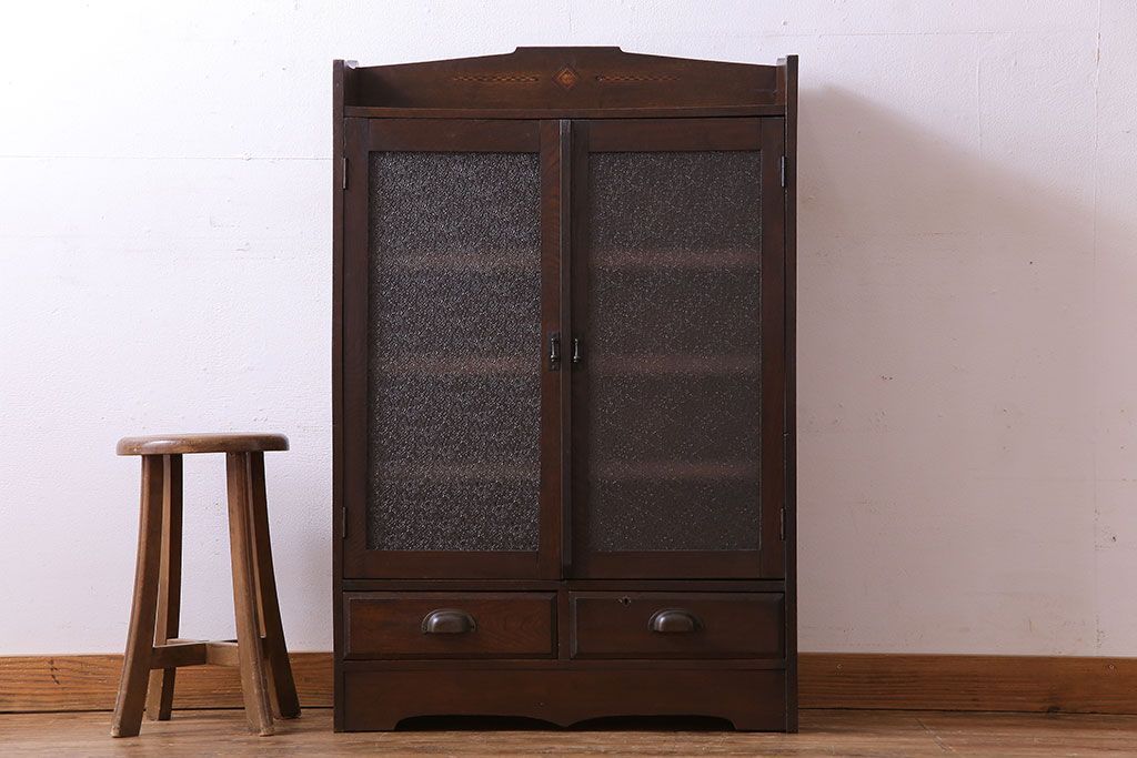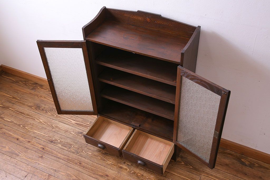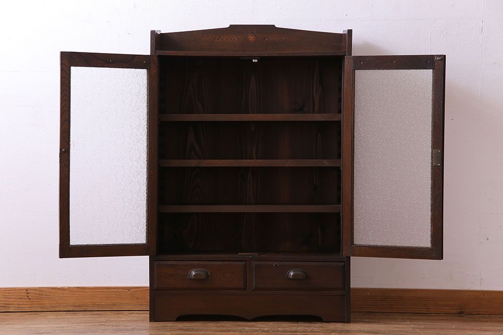 ラフジュ工房> キャビネット・戸棚> 食器棚・カップボード > アンティーク家具 大正ロマン 人気のダイヤガラス!象嵌の入ったブックケース(本棚、本箱、キャビネット)
