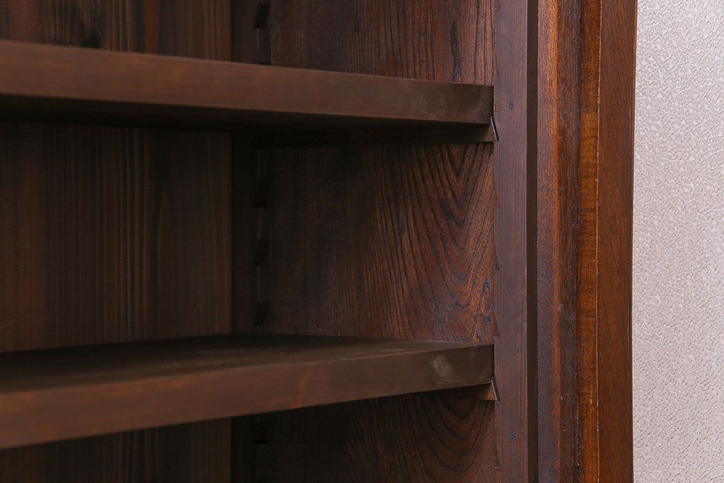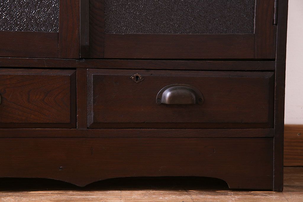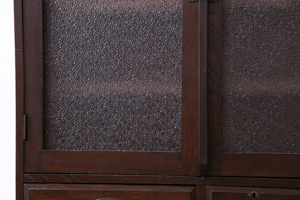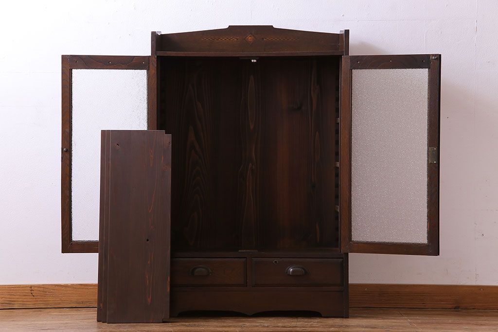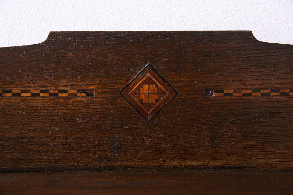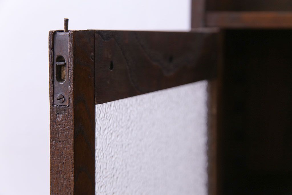 ラフジュ工房> キャビネット・戸棚> 食器棚・カップボード > アンティーク家具 大正ロマン 人気のダイヤガラス!象嵌の入ったブックケース(本棚、本箱、キャビネット)