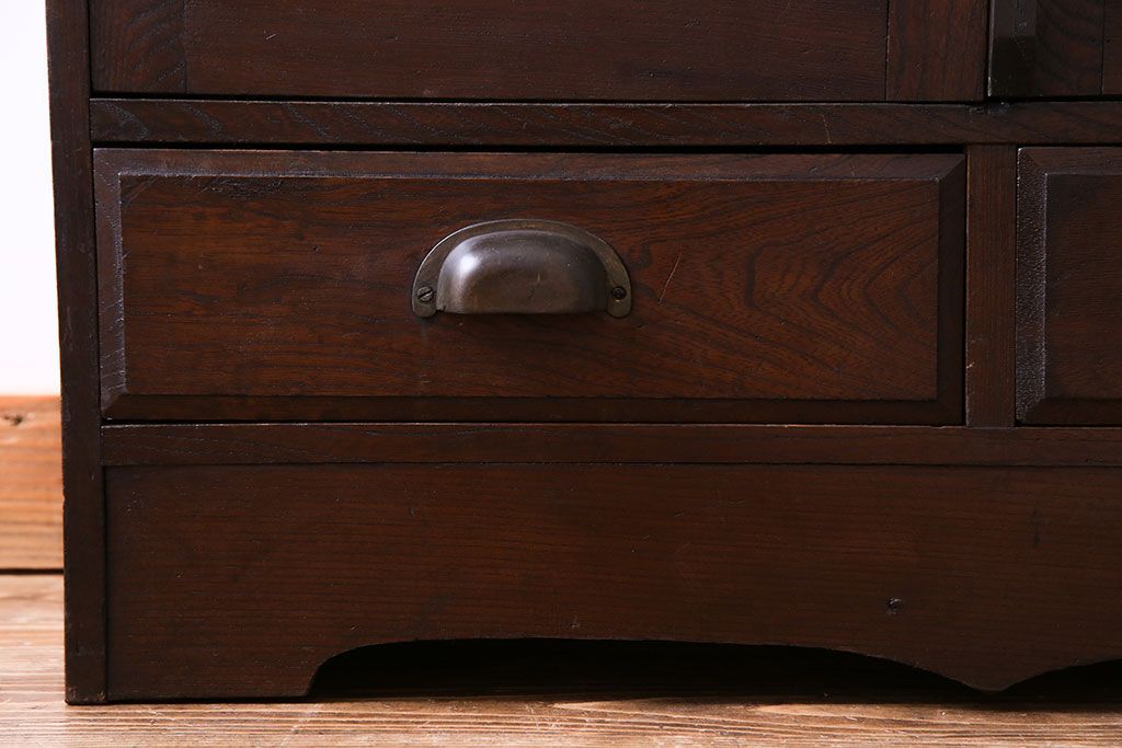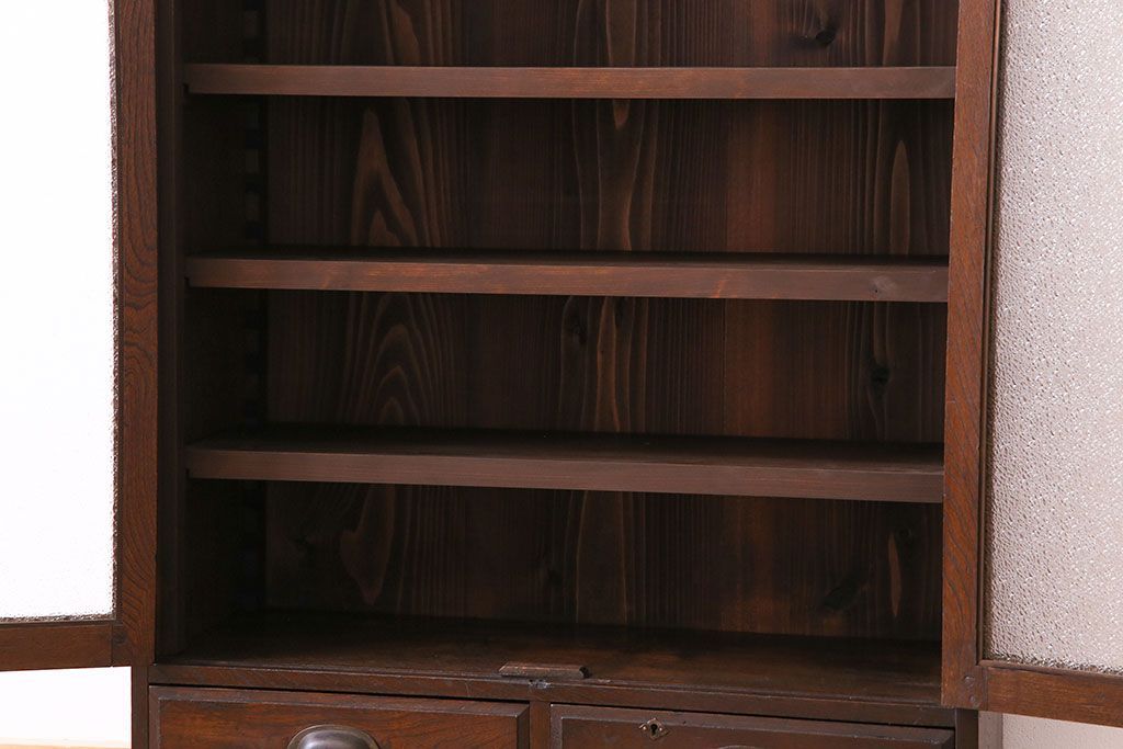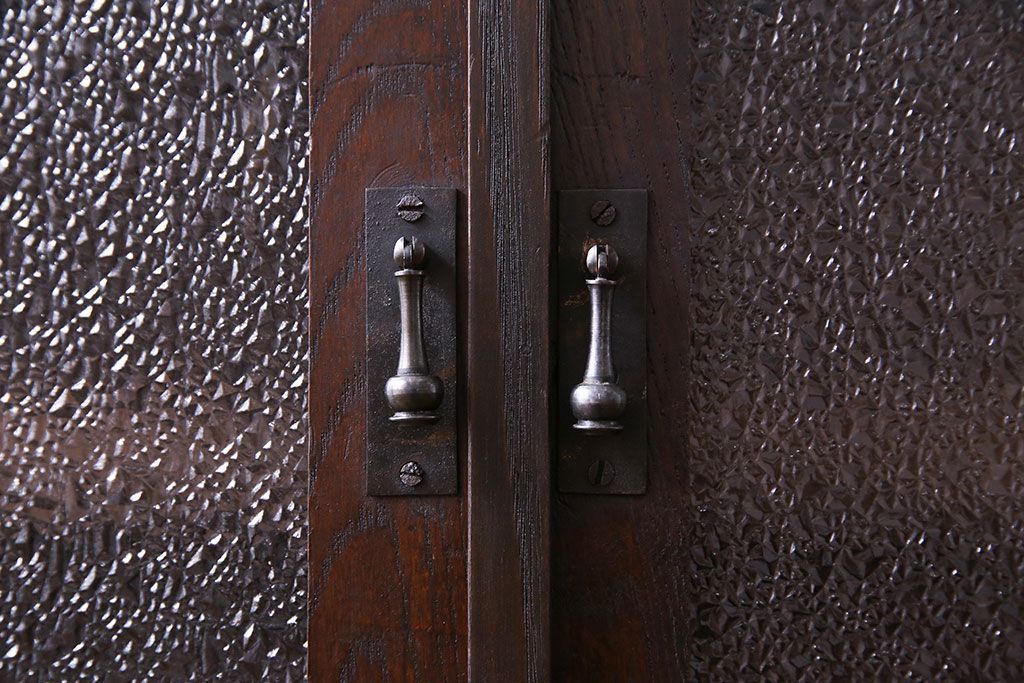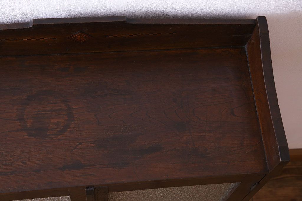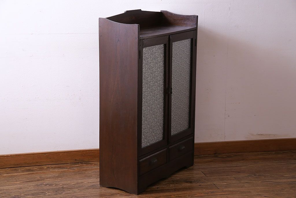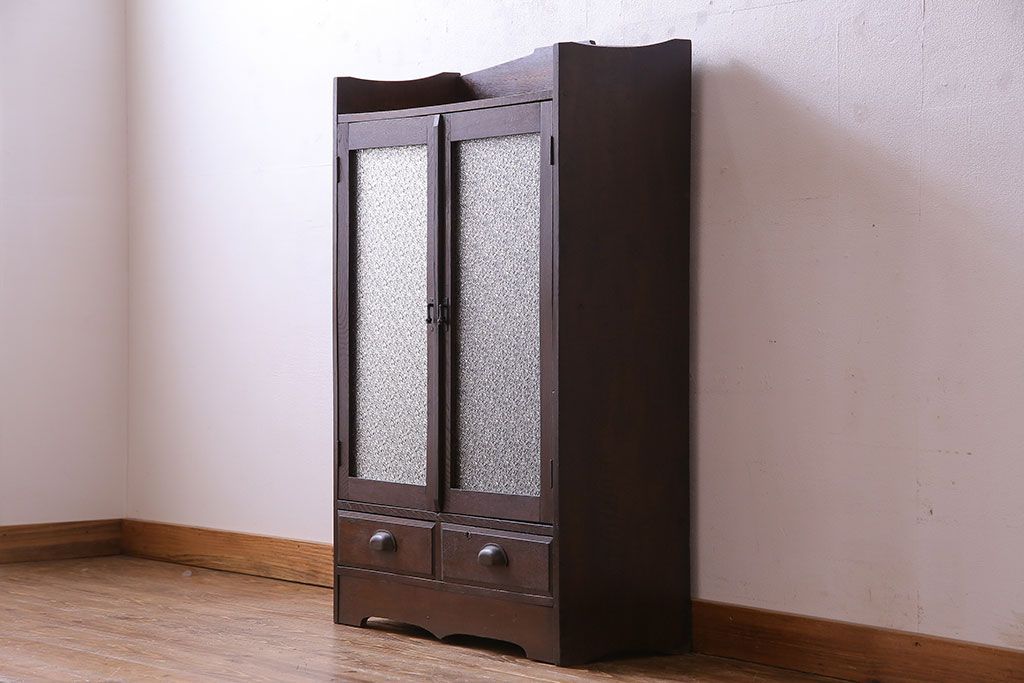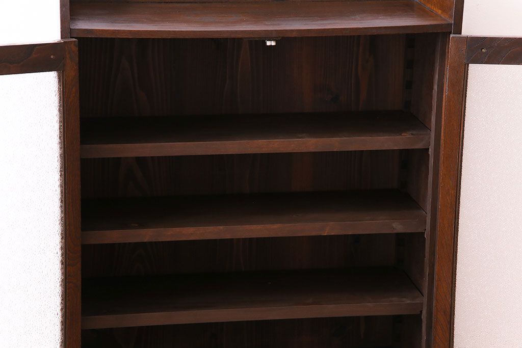 ラフジュ工房> キャビネット・戸棚> 食器棚・カップボード > アンティーク家具 大正ロマン 人気のダイヤガラス!象嵌の入ったブックケース(本棚、本箱、キャビネット)
