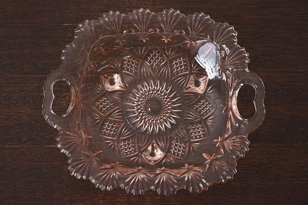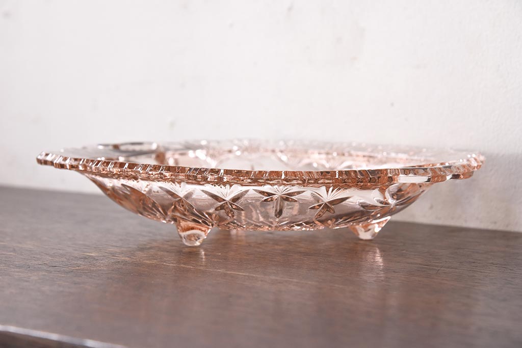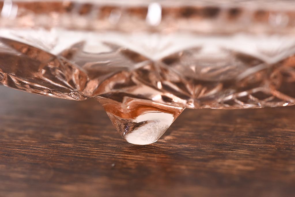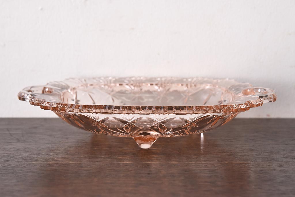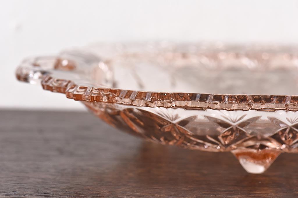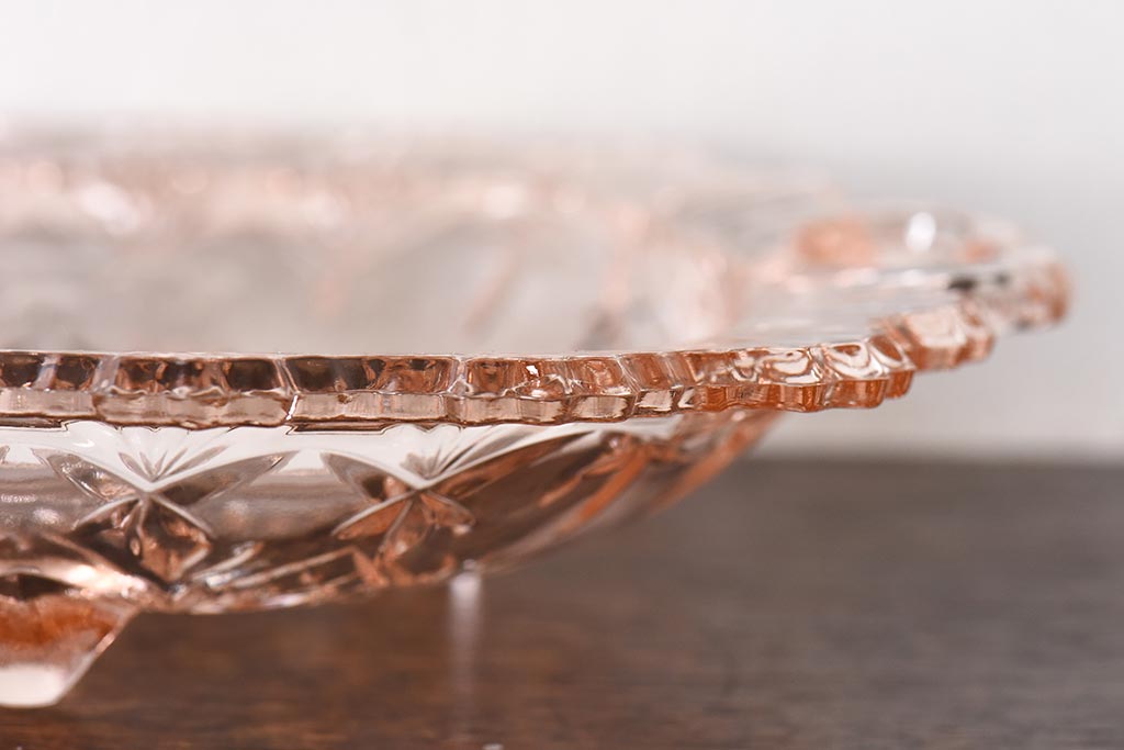 ラフジュ工房> 和食器・茶道具 > アンティーク雑貨 昭和レトロ レトロな雰囲気漂う薄ピンクの脚付きプレート皿(プレスガラス、器)