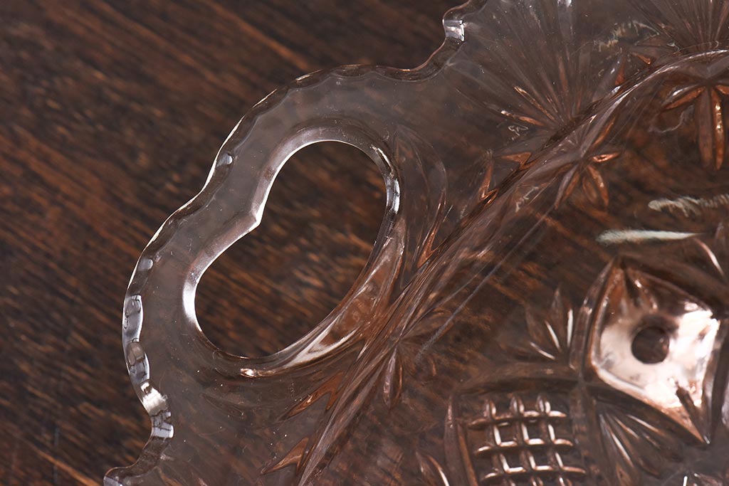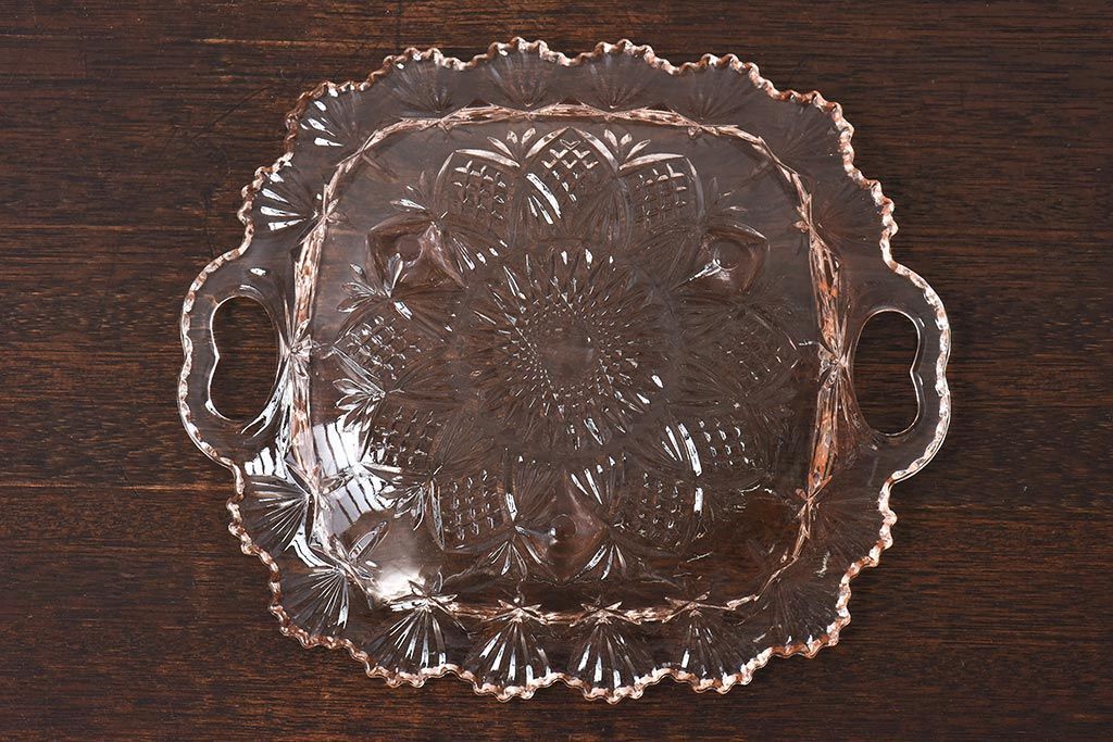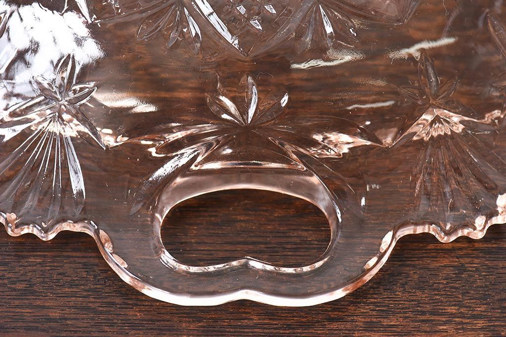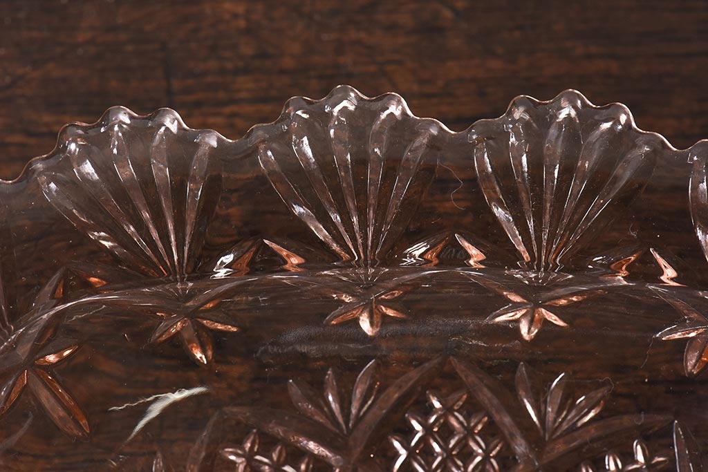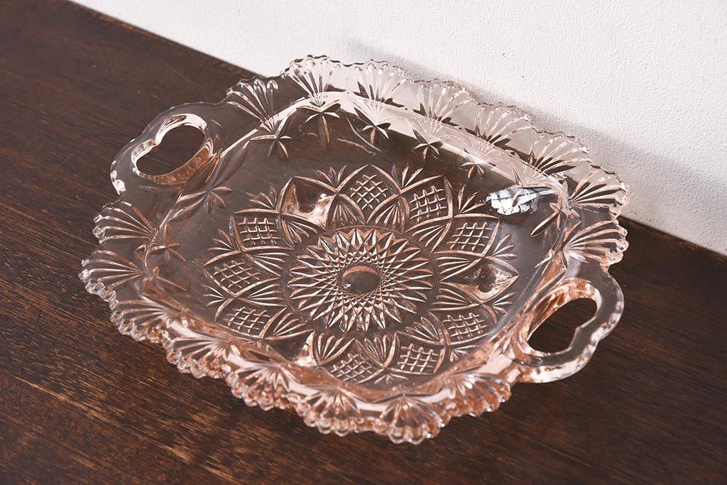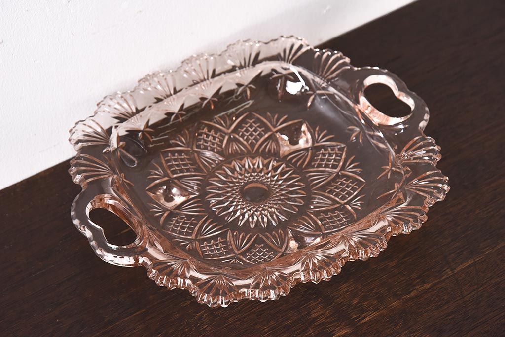 ラフジュ工房> 和食器・茶道具 > アンティーク雑貨 昭和レトロ レトロな雰囲気漂う薄ピンクの脚付きプレート皿(プレスガラス、器)