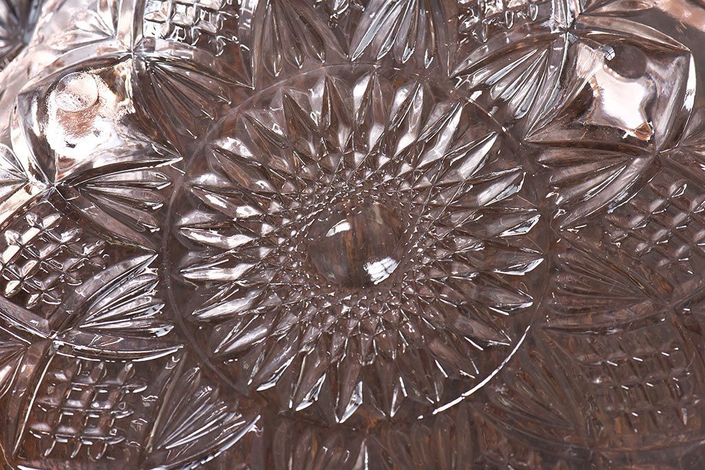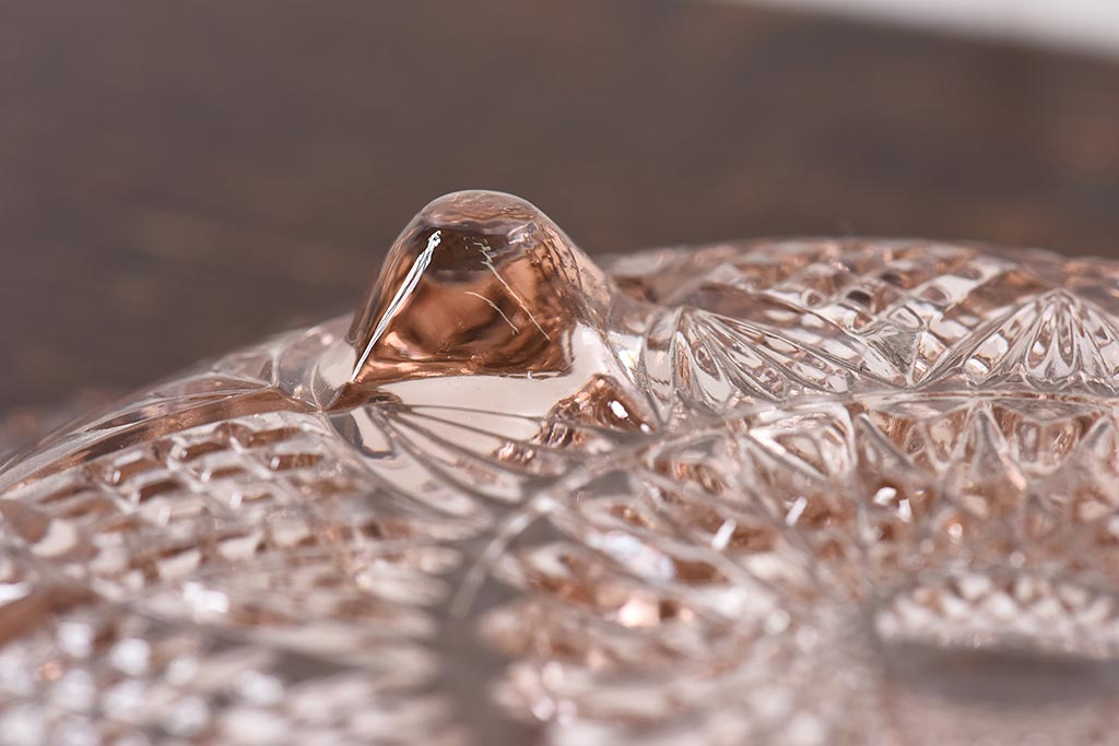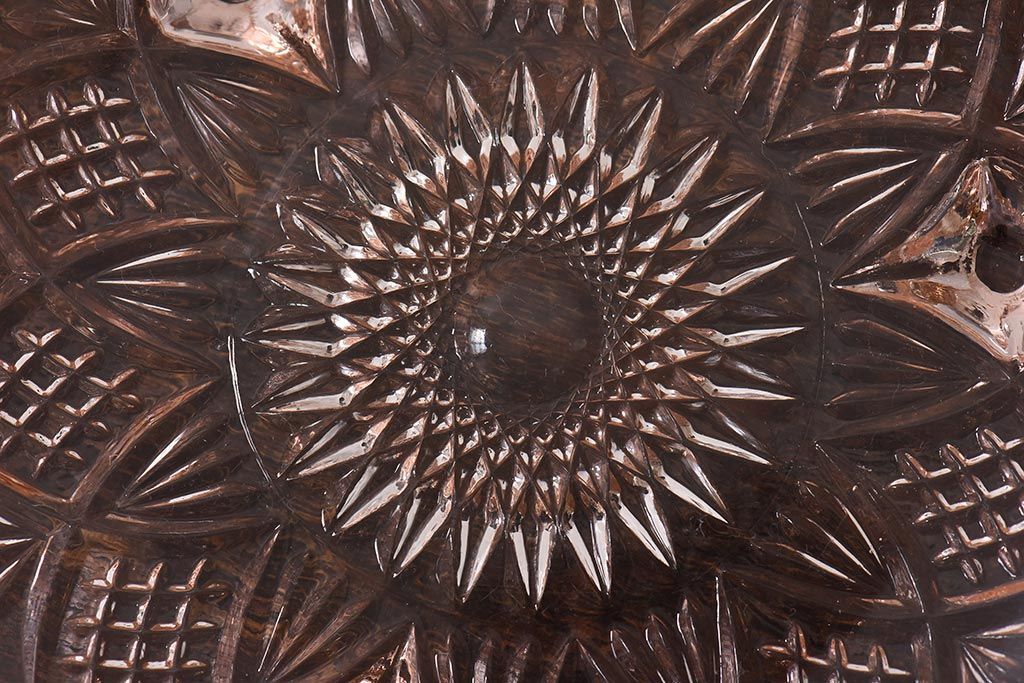ラフジュ工房> 骨董・美術品> 骨董-ガラス食器 > アンティーク雑貨 昭和レトロ レトロな雰囲気漂う薄ピンクの脚付きプレート皿(プレスガラス、器)