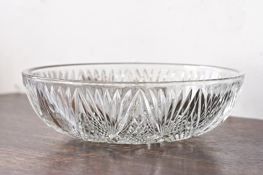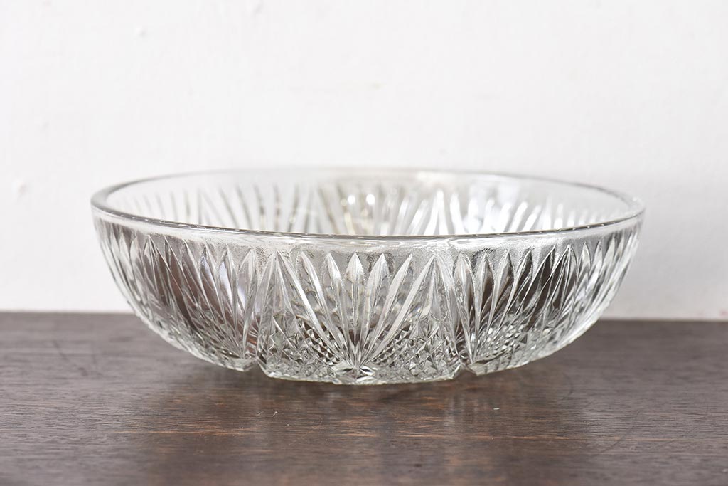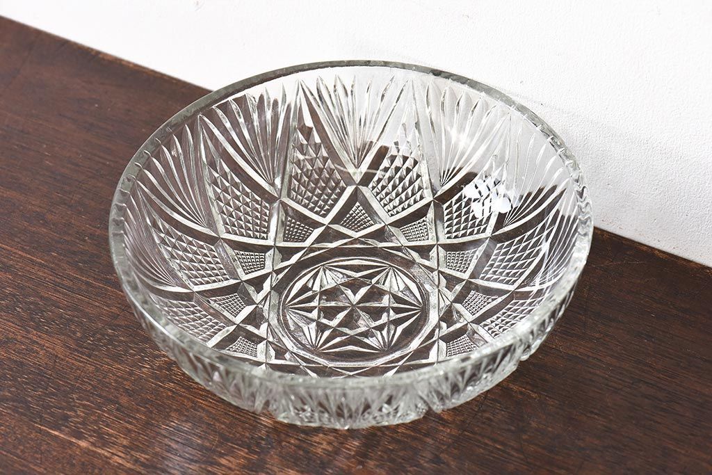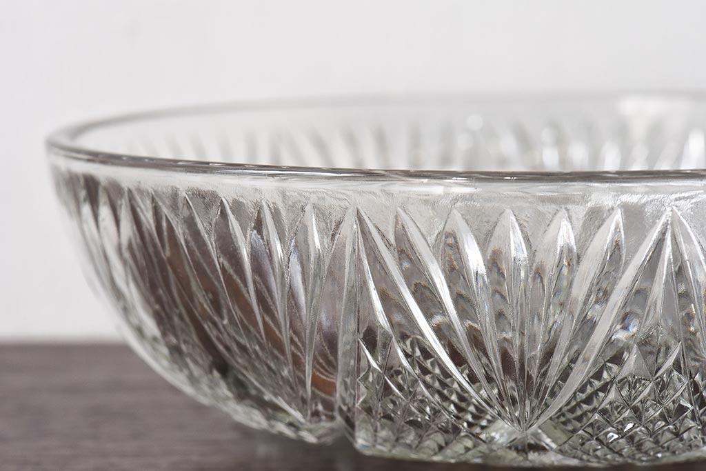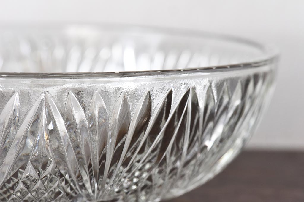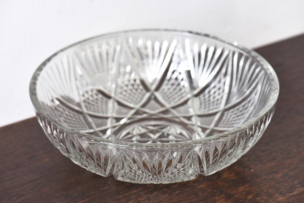 アンティーク雑貨 昭和レトロ プレスガラス 直線のデザインが美しいボウル型の深皿(器、鉢)