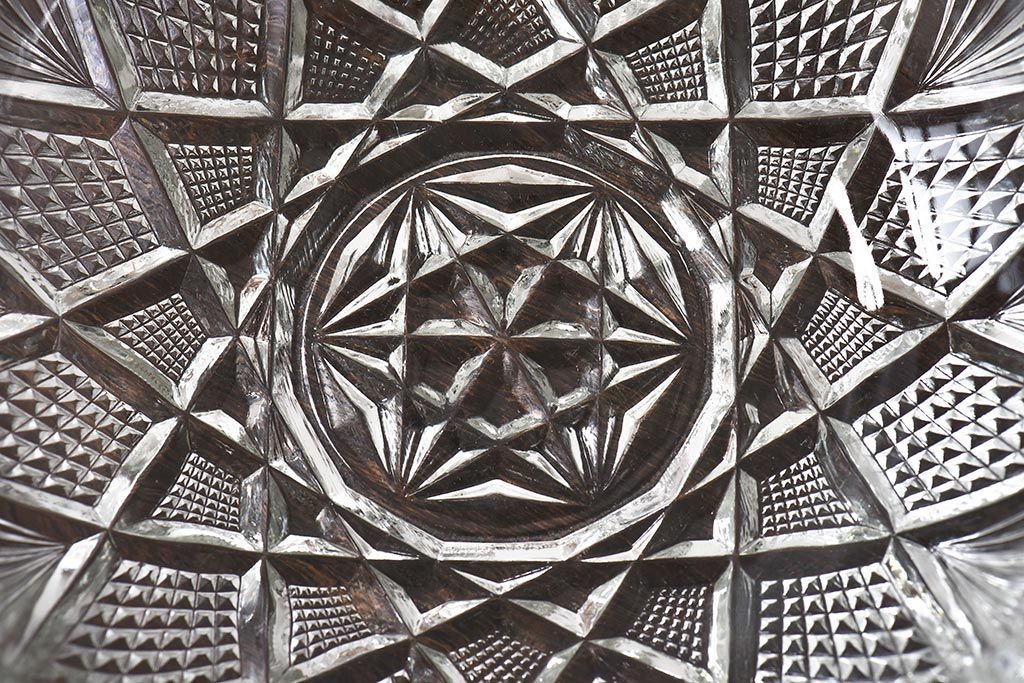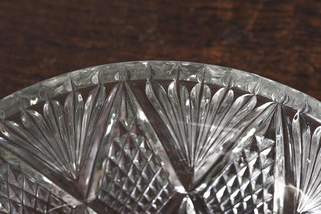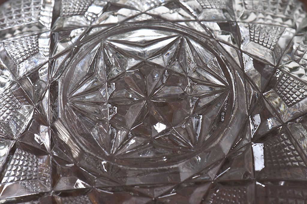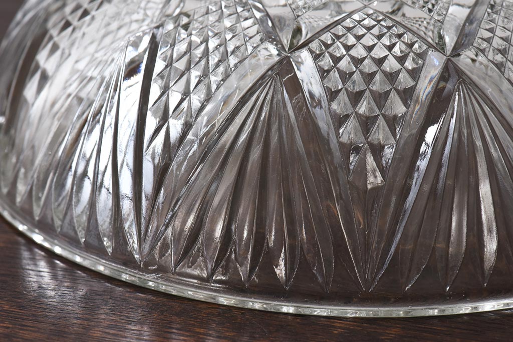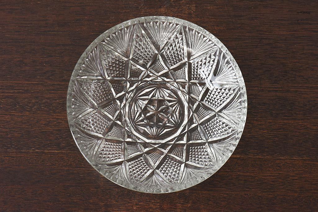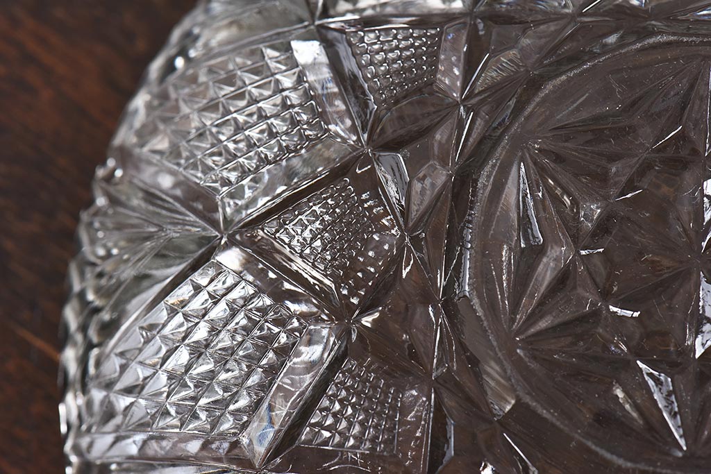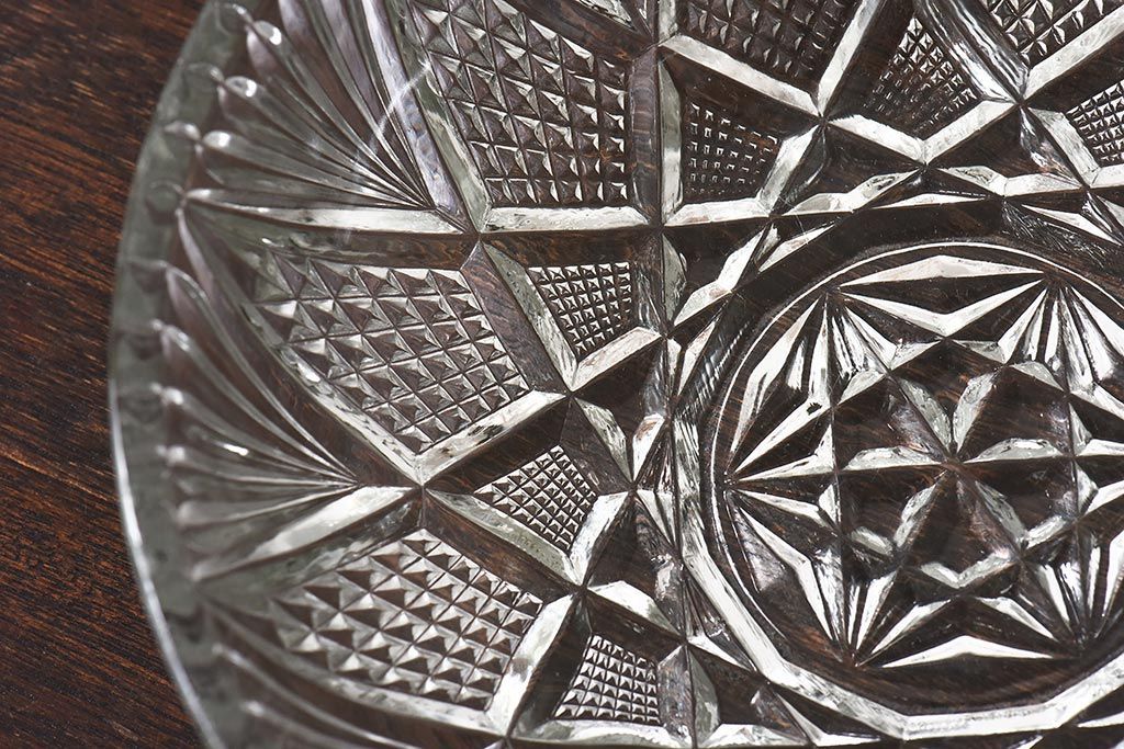 アンティーク雑貨 昭和レトロ プレスガラス 直線のデザインが美しいボウル型の深皿(器、鉢)