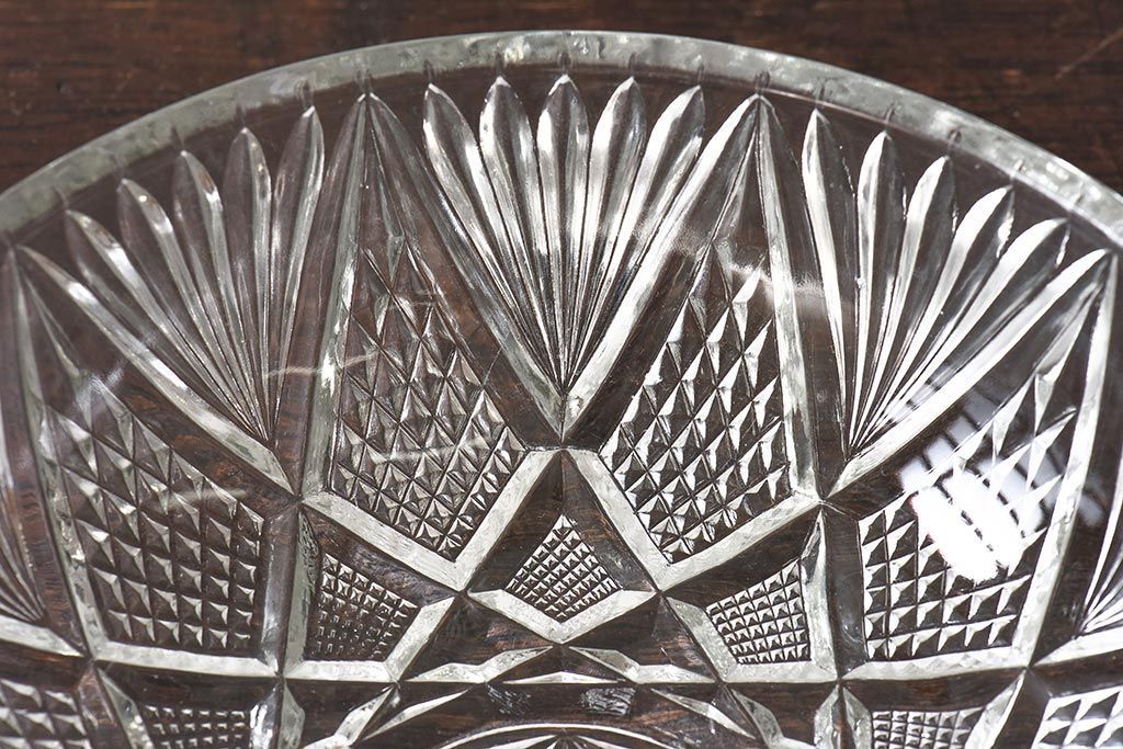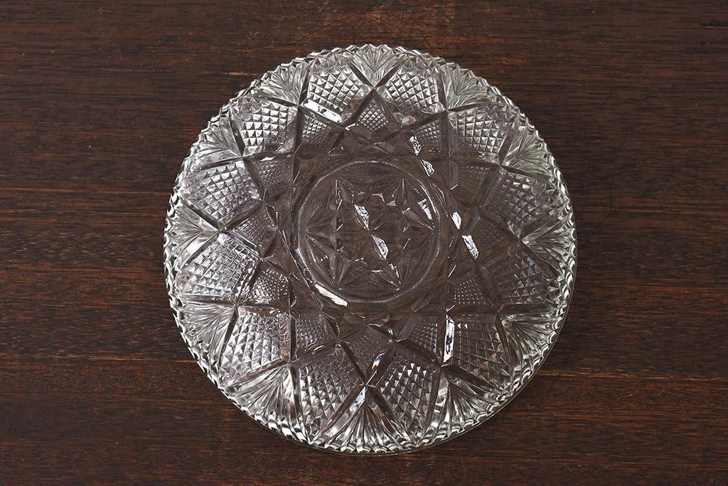ラフジュ工房> 和食器・茶道具 > アンティーク雑貨 昭和レトロ プレスガラス 直線のデザインが美しいボウル型の深皿(器、鉢)