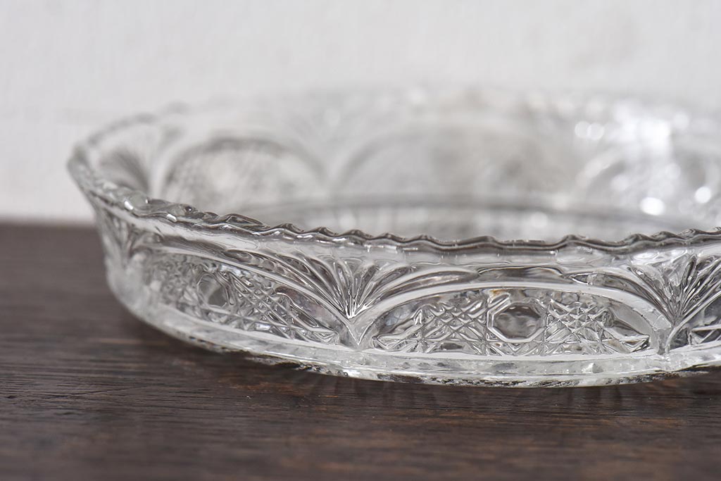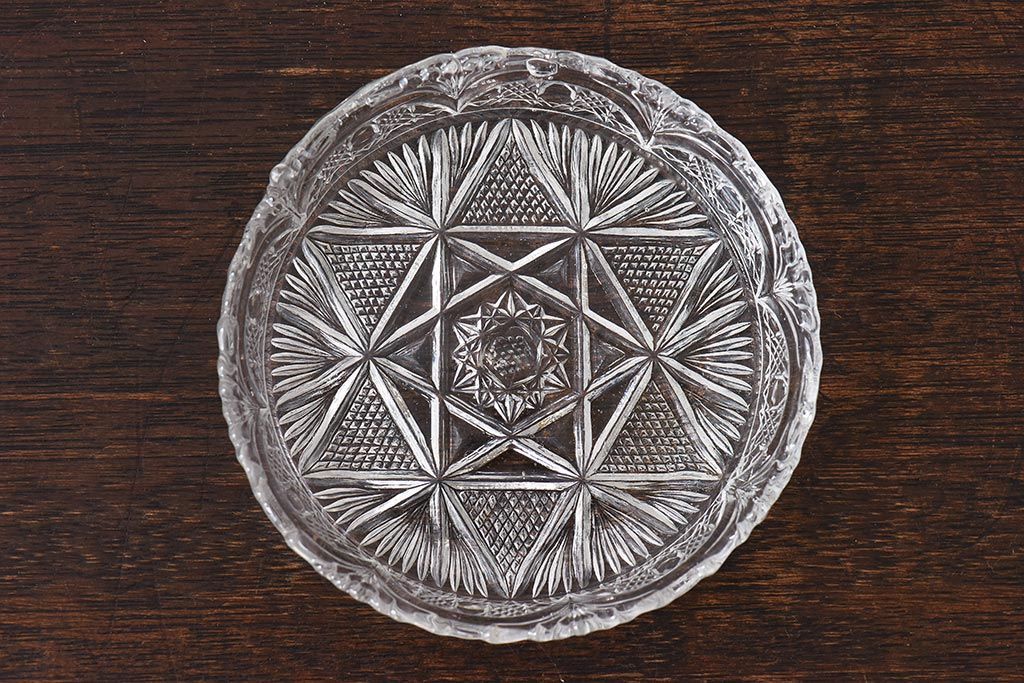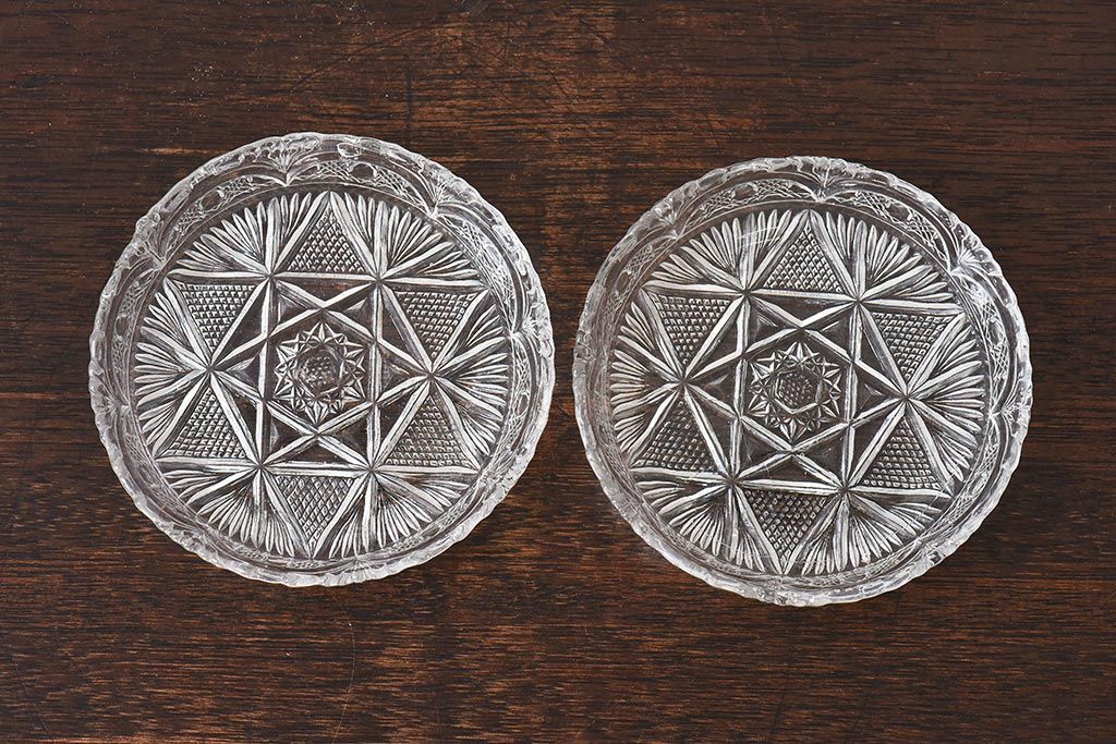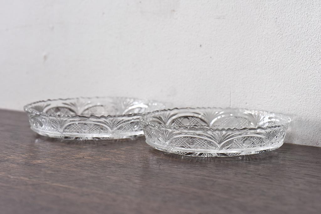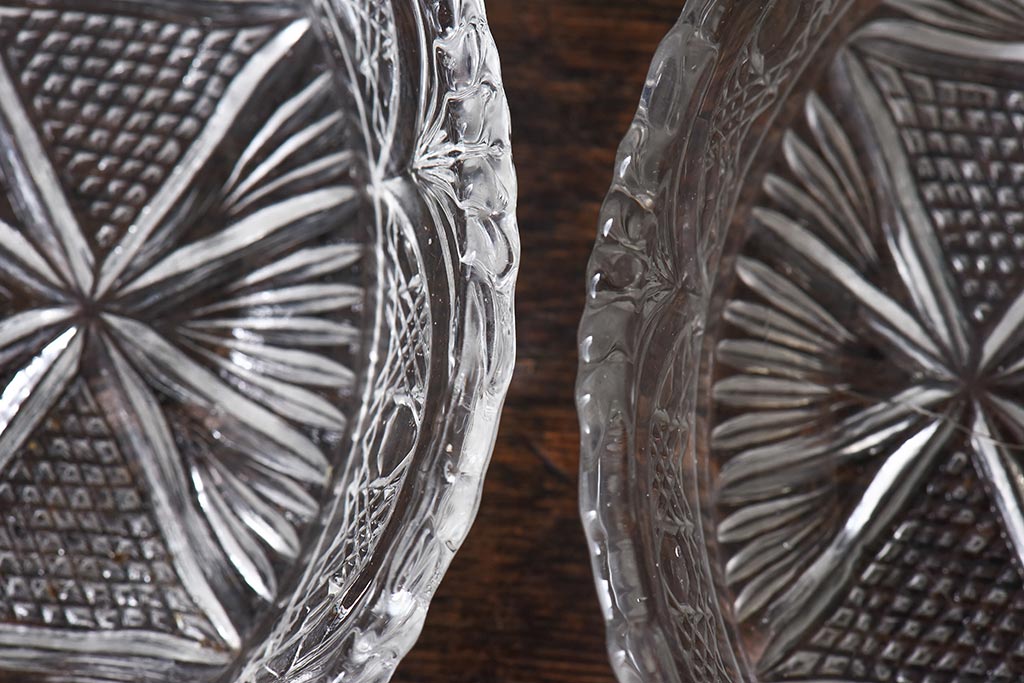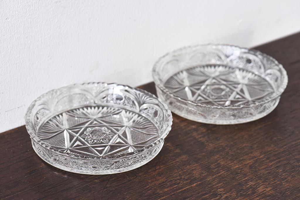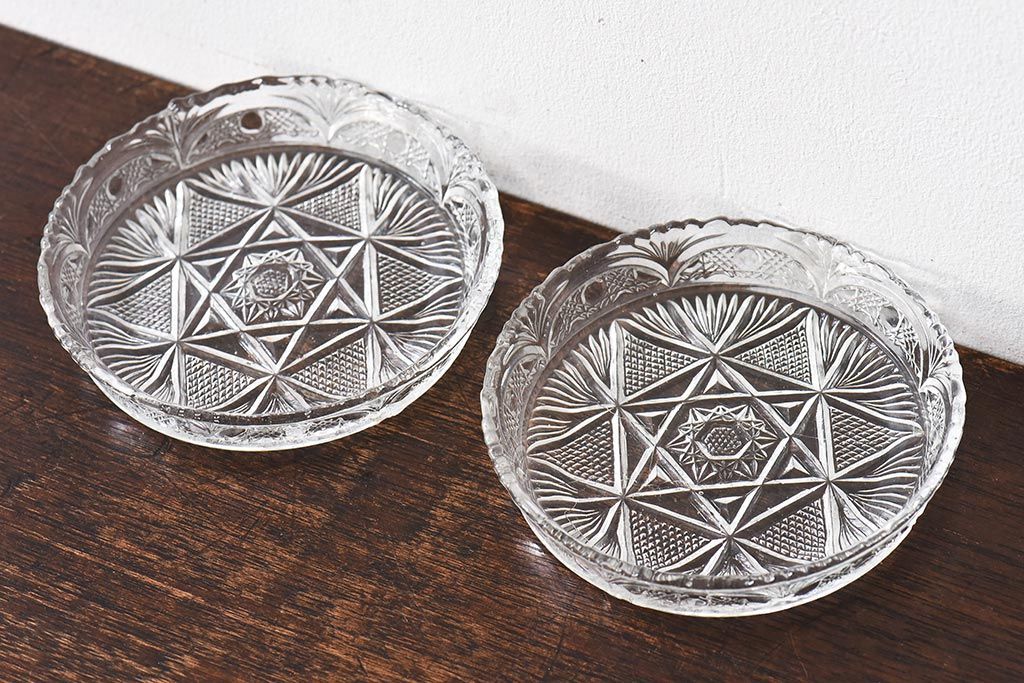 アンティーク雑貨 昭和レトロ 小振りなサイズが可愛らしいプレスガラス製のお皿(器)2枚セット