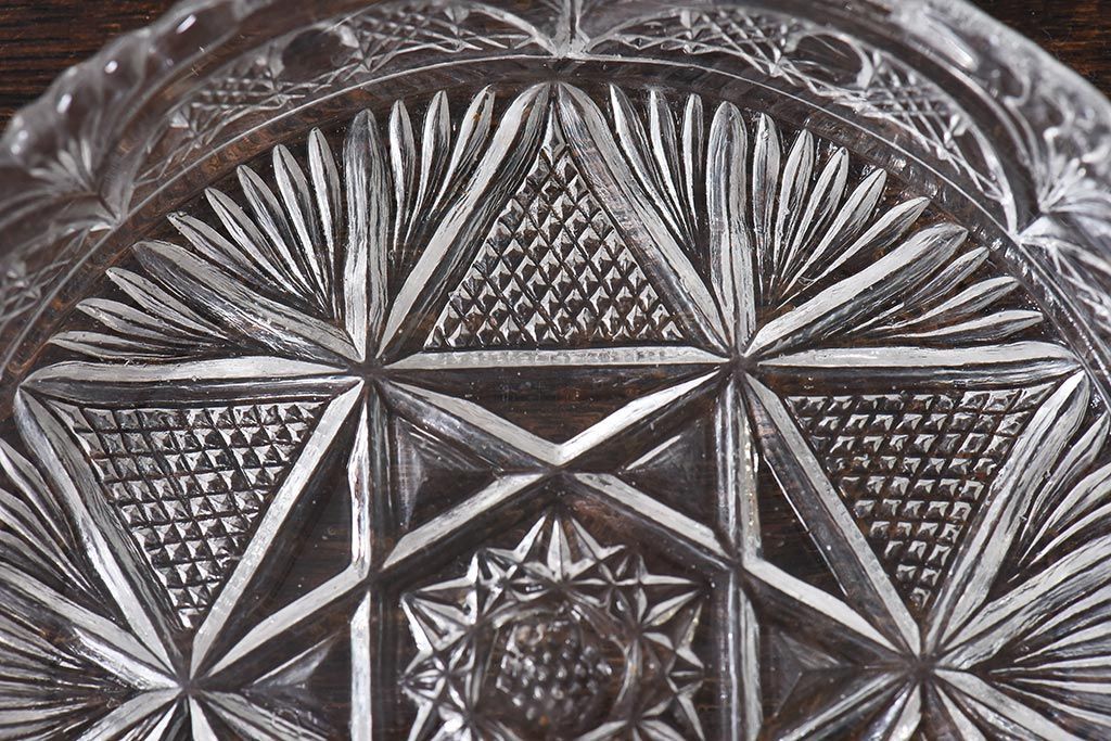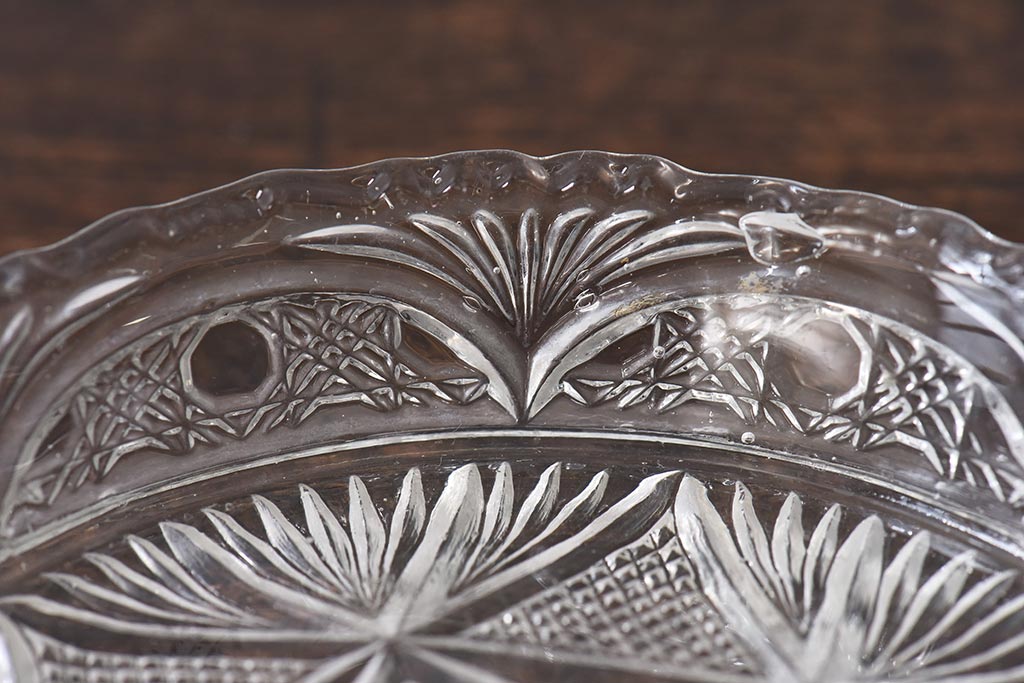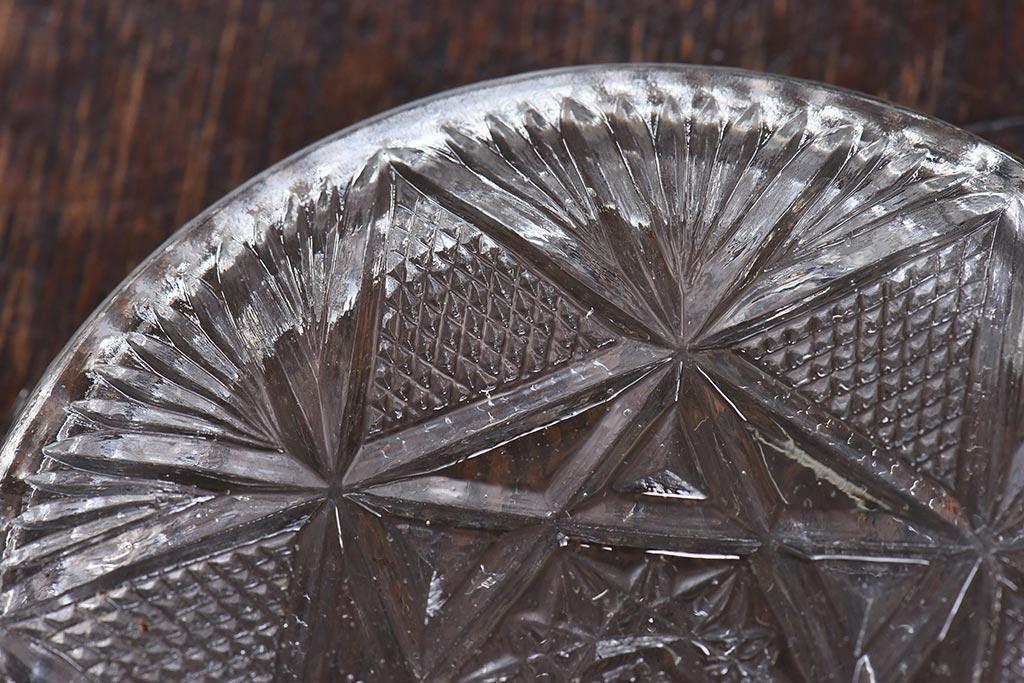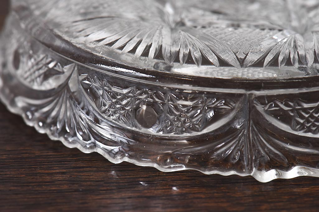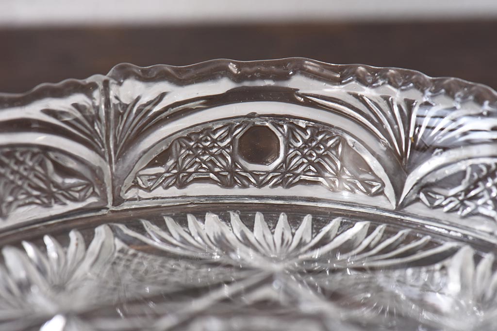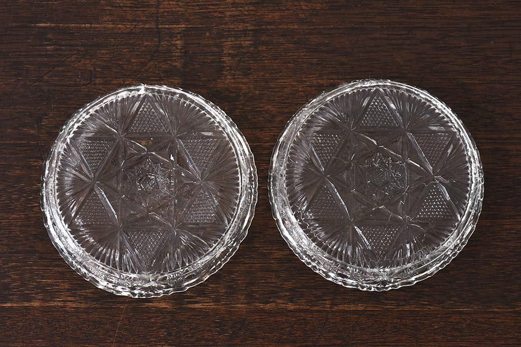 ラフジュ工房> 骨董・美術品> 骨董-ガラス食器 > アンティーク雑貨 昭和レトロ 小振りなサイズが可愛らしいプレスガラス製のお皿(器)2枚セット
