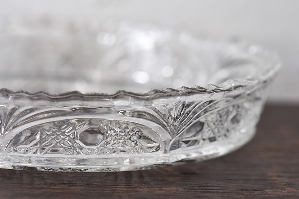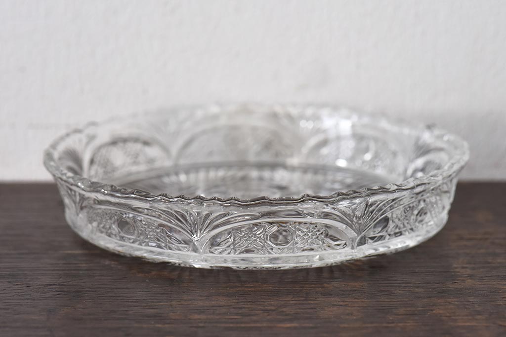 ラフジュ工房> 和食器・茶道具 > アンティーク雑貨 昭和レトロ 小振りなサイズが可愛らしいプレスガラス製のお皿(器)2枚セット