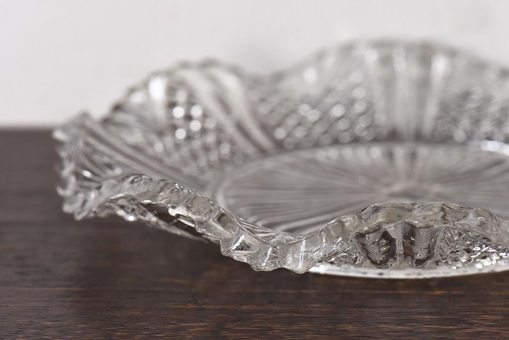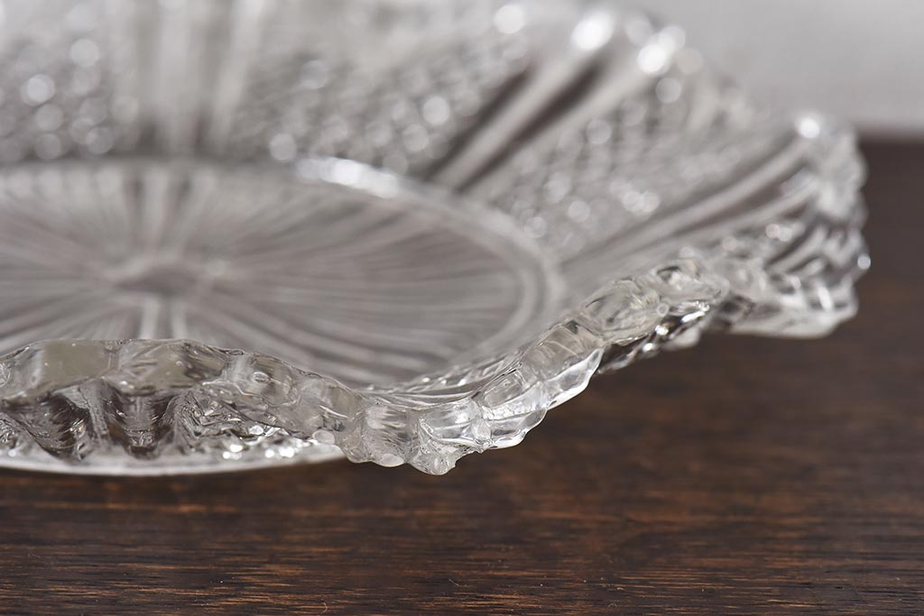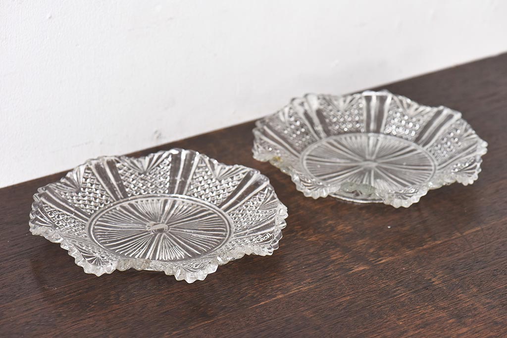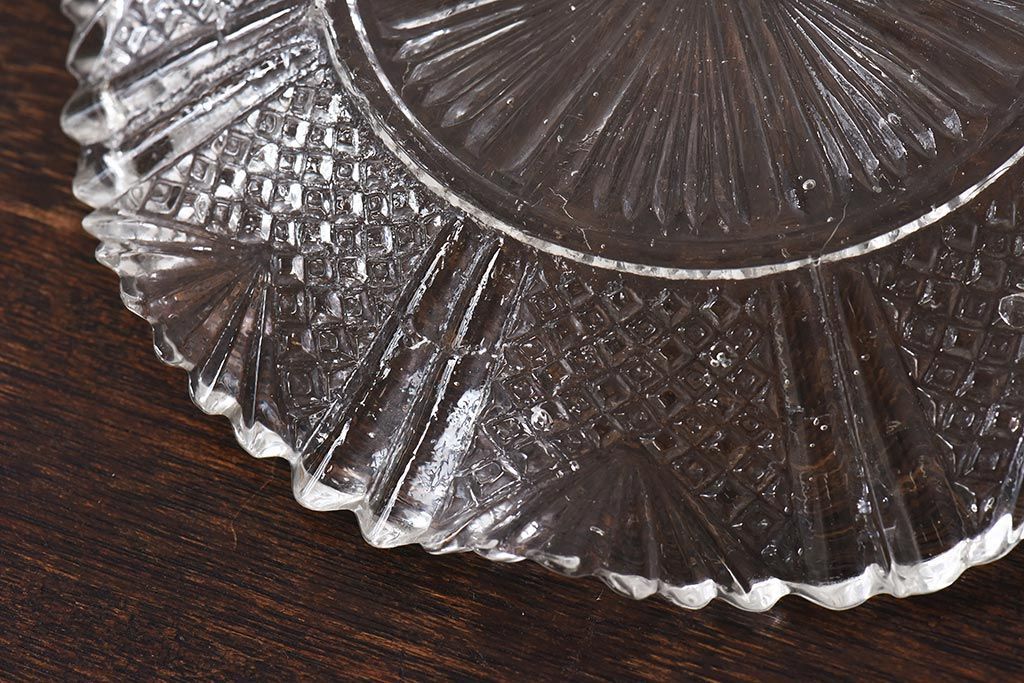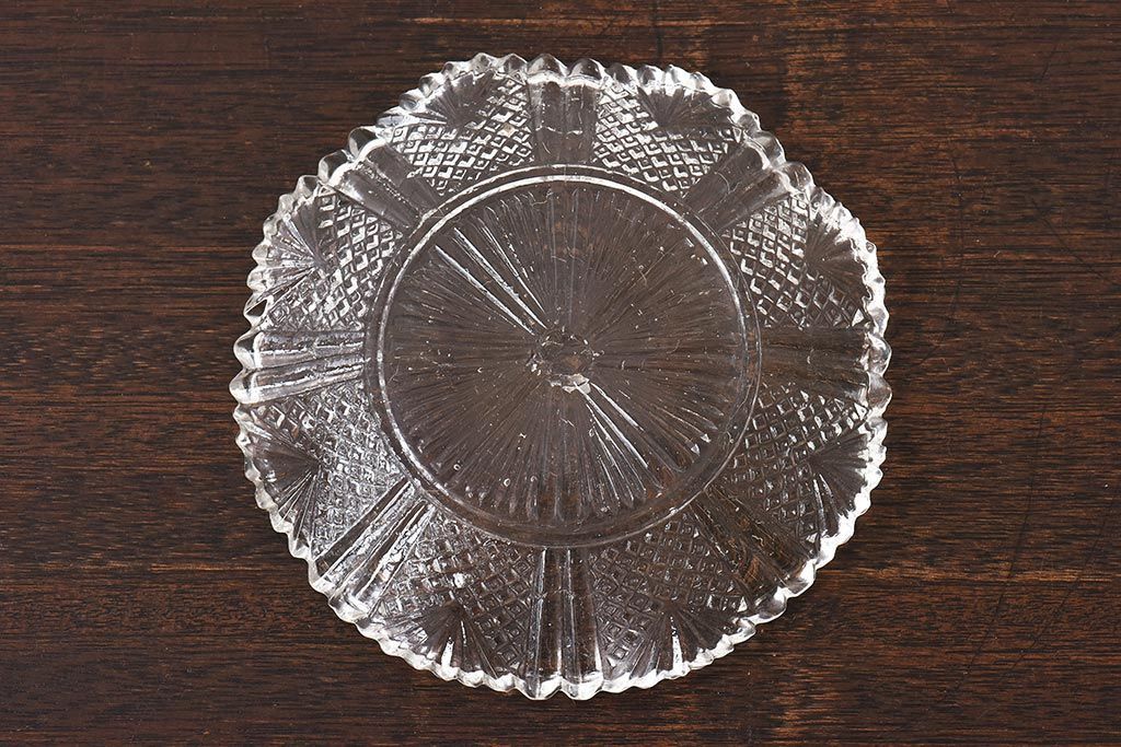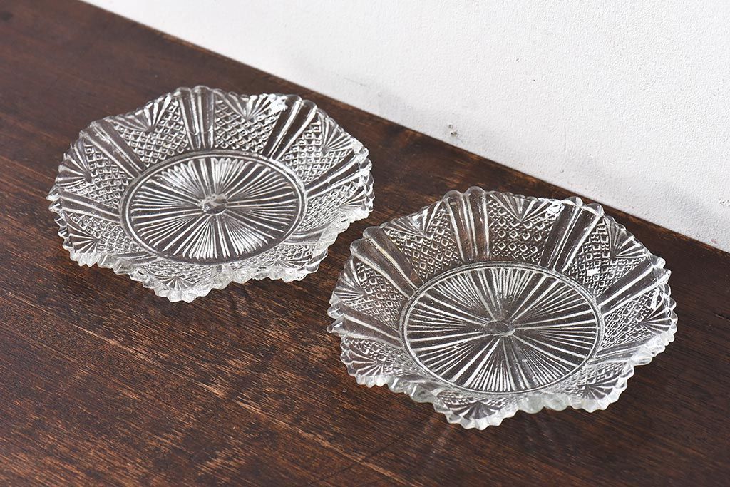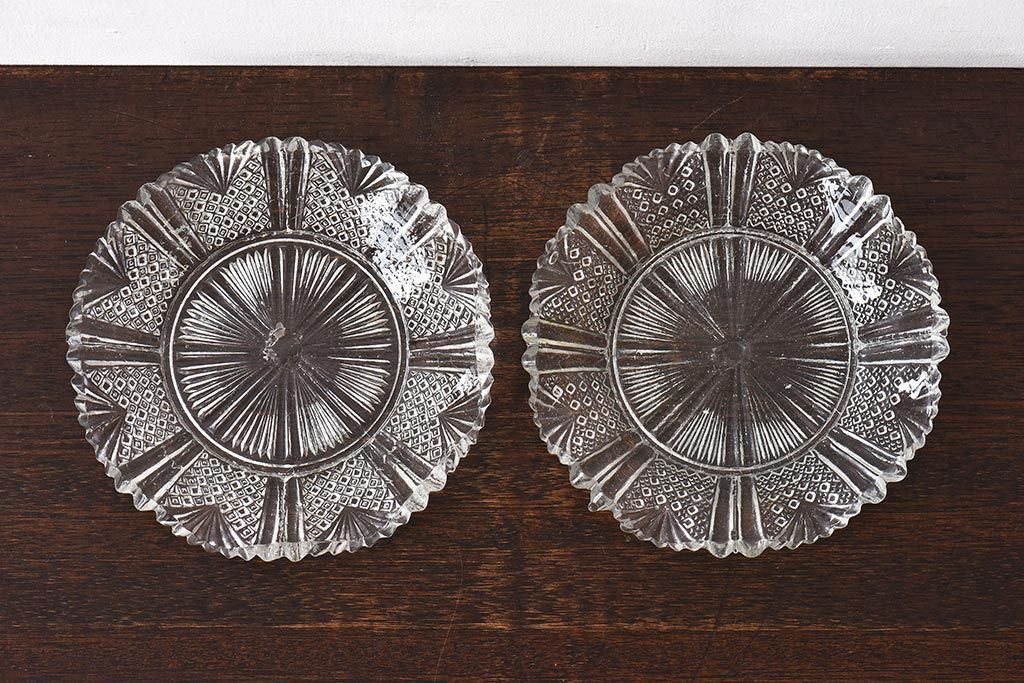 ラフジュ工房> 和食器・茶道具 > アンティーク雑貨 大正期 鱗八つ割文 シックなガラスプレート(プレスガラス、レース皿)2枚セット