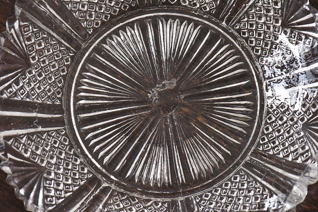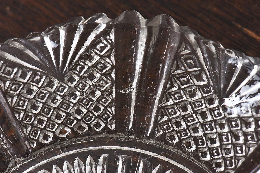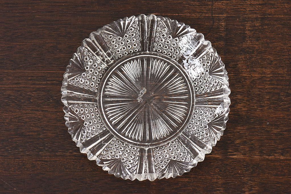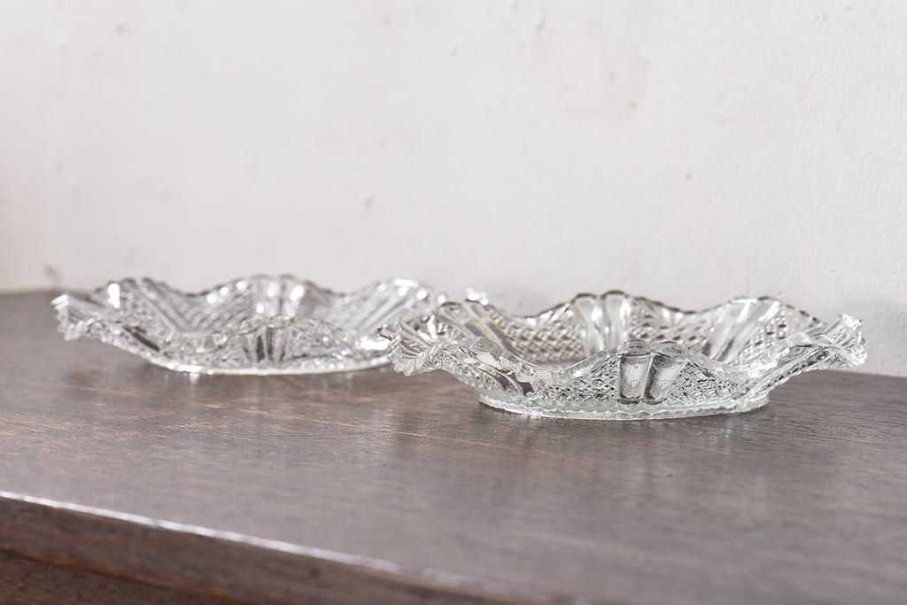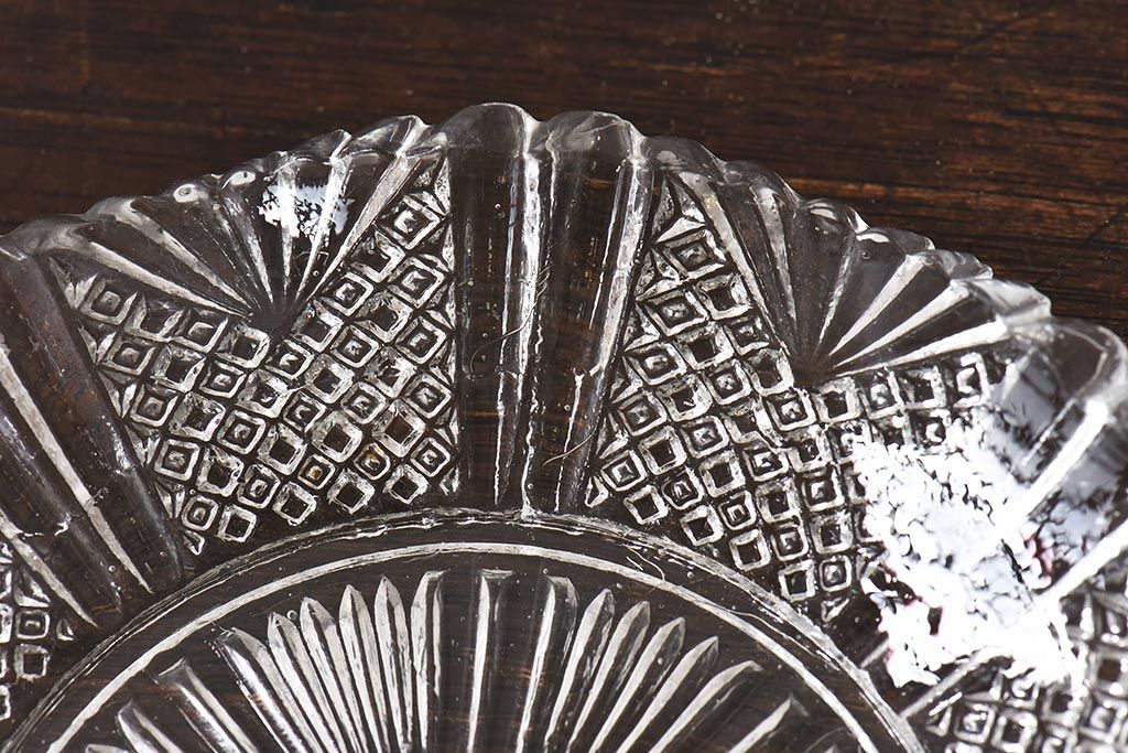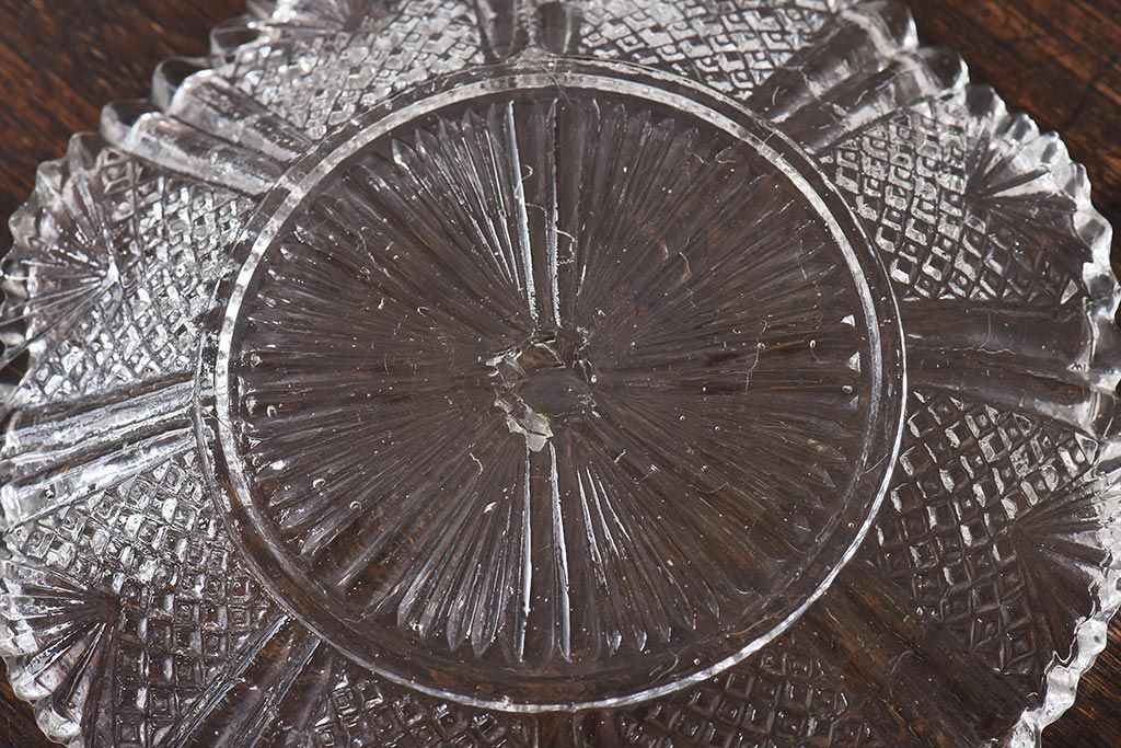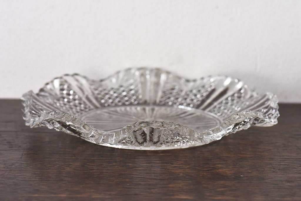 ラフジュ工房> 和食器・茶道具 > アンティーク雑貨 大正期 鱗八つ割文 シックなガラスプレート(プレスガラス、レース皿)2枚セット
