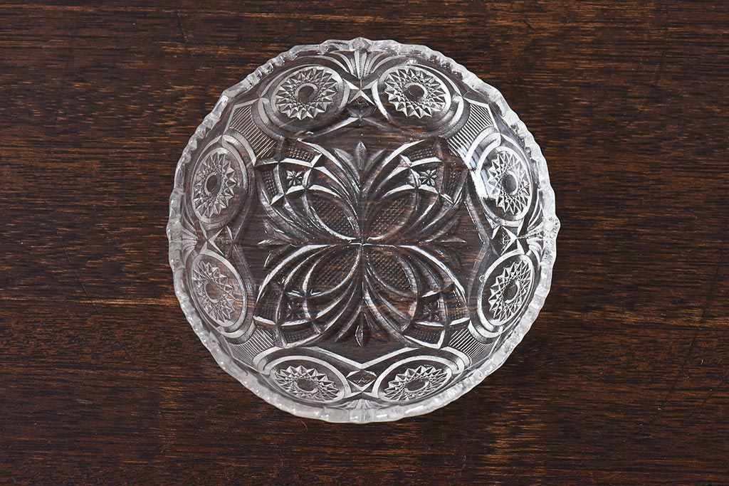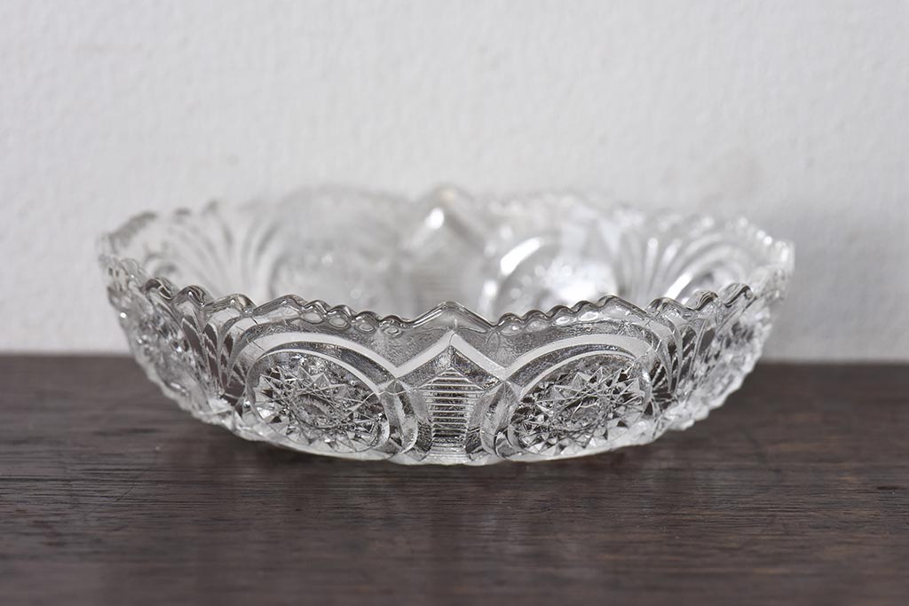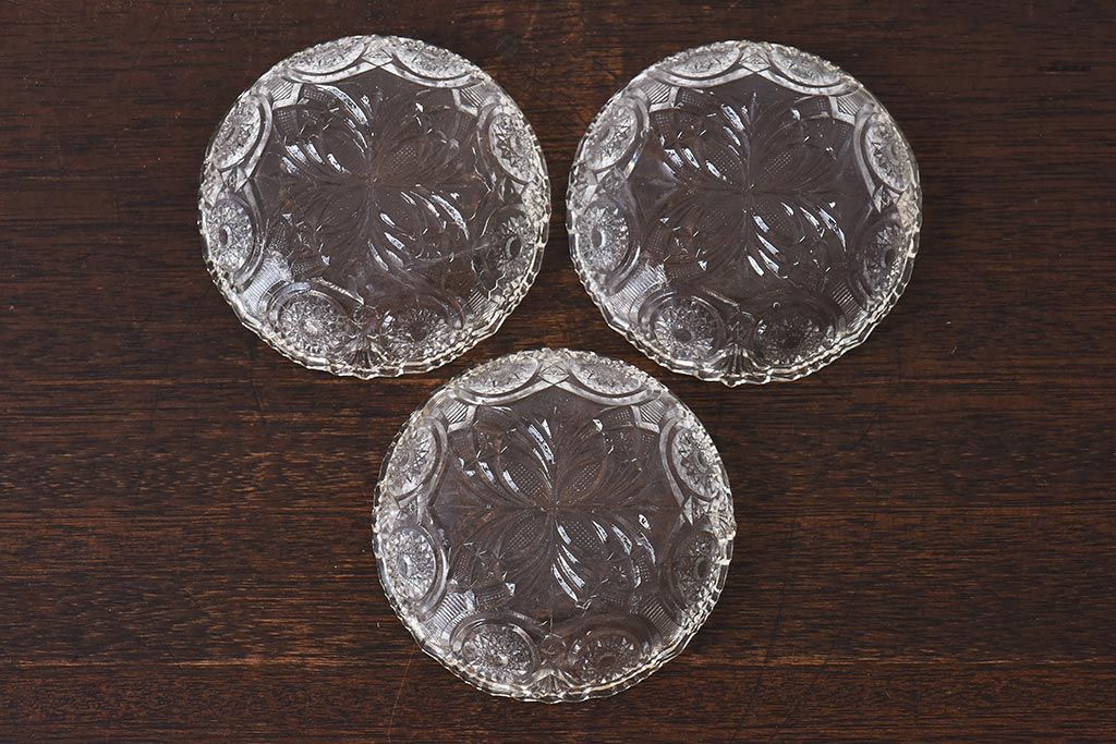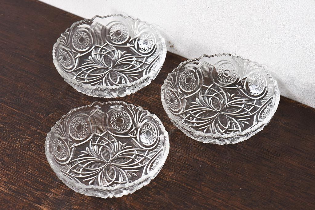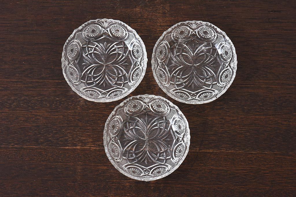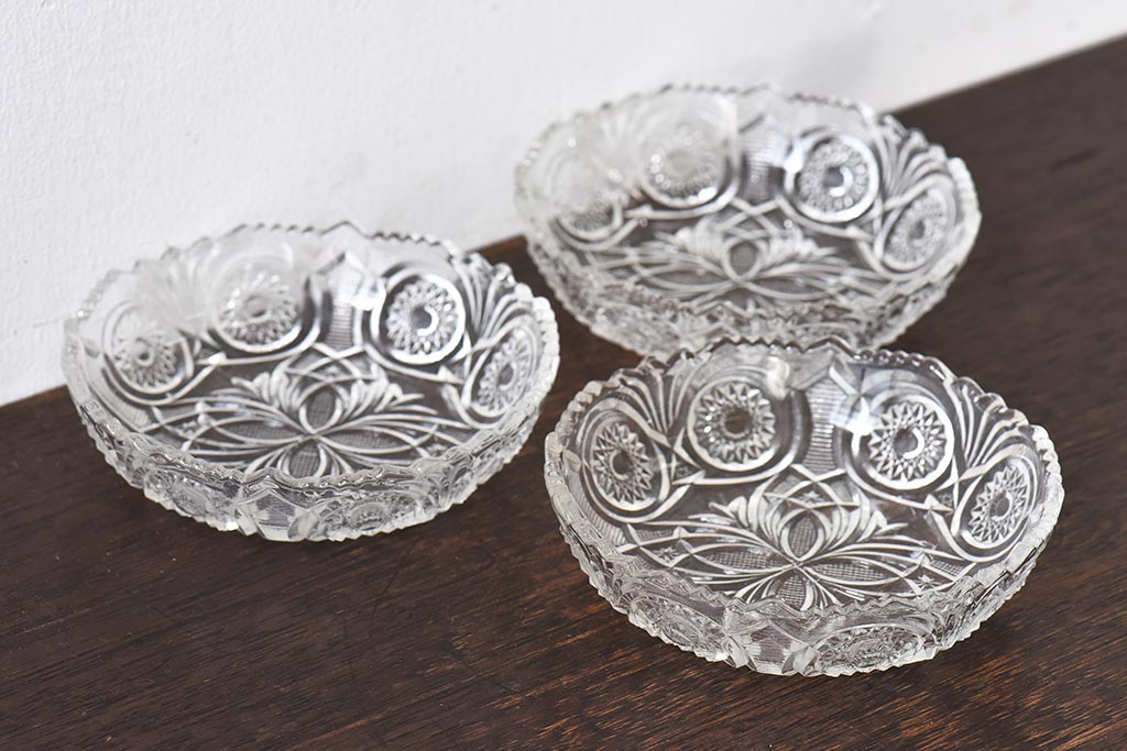 アンティーク雑貨 昭和レトロ オーソドックスな花モチーフのガラス深皿(小皿、鉢)3枚セット