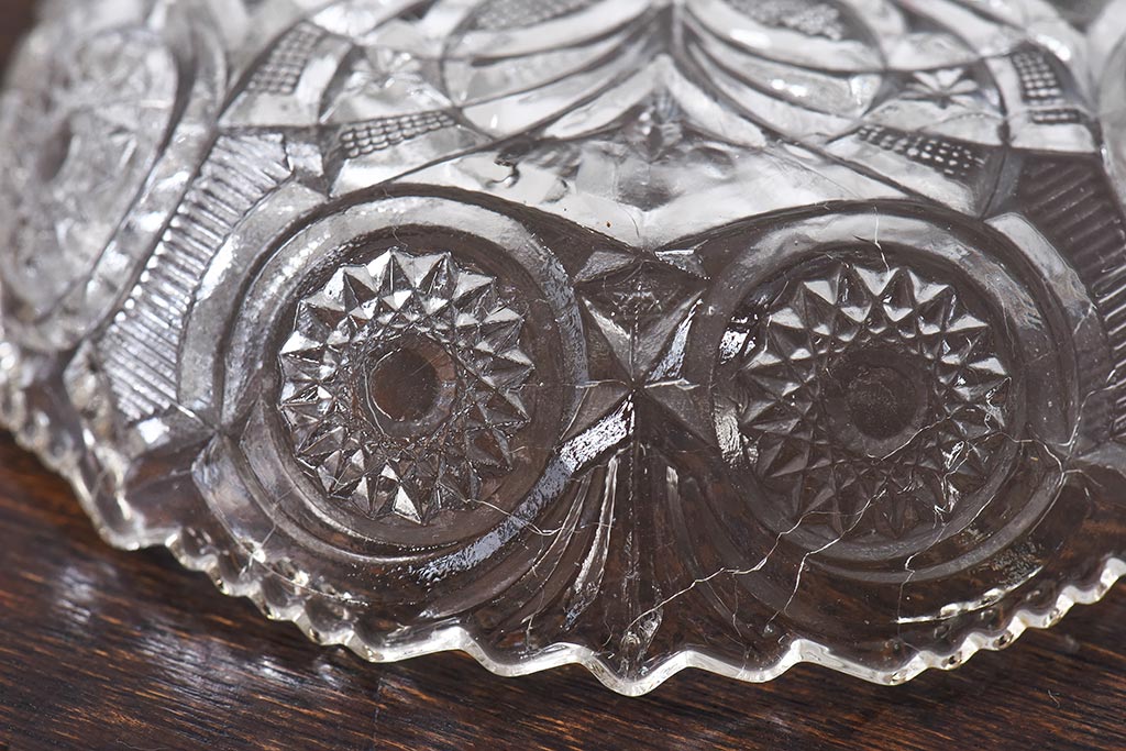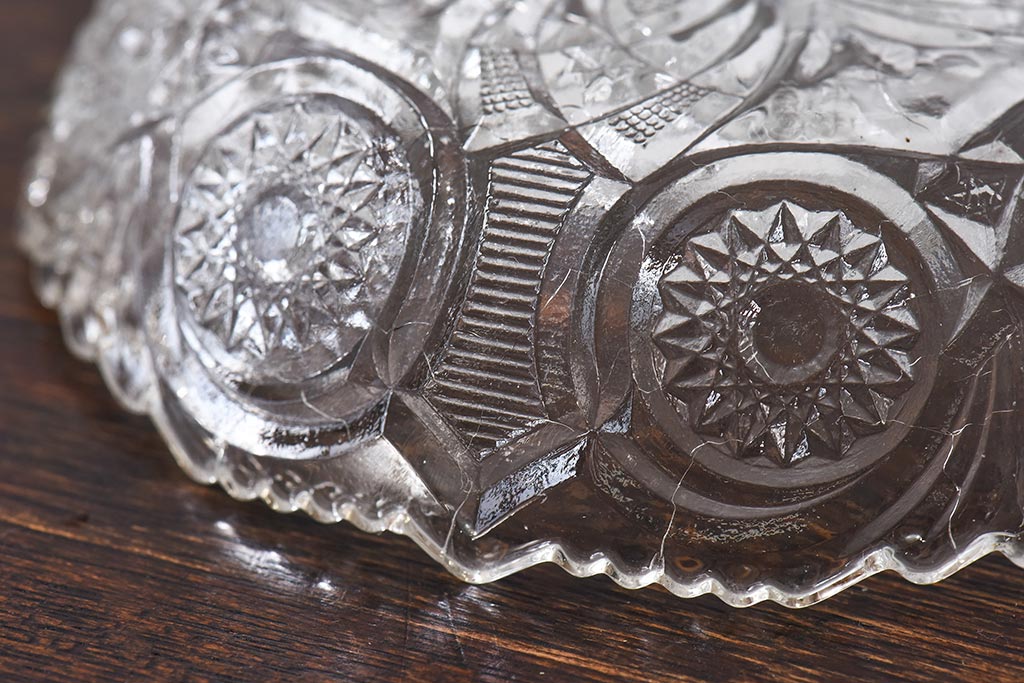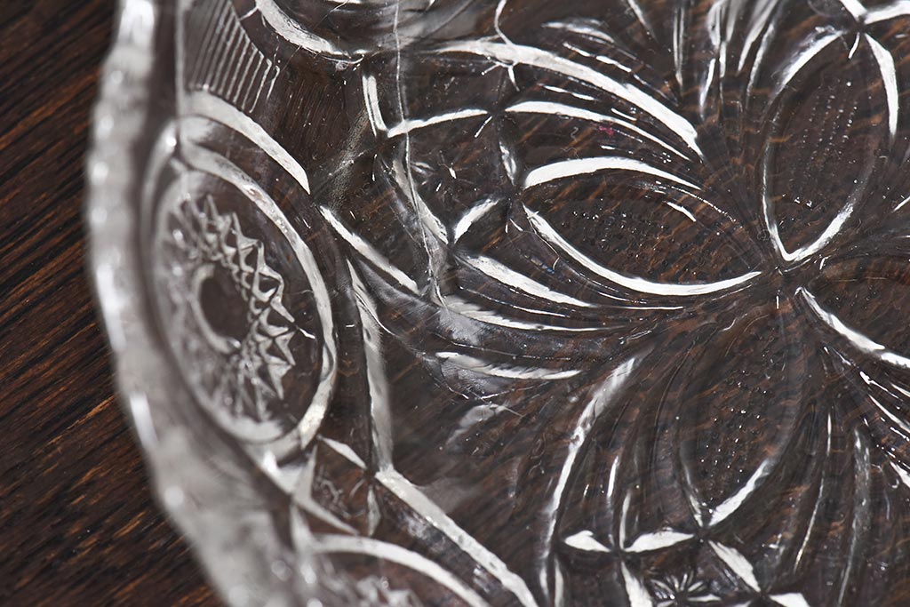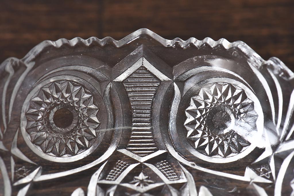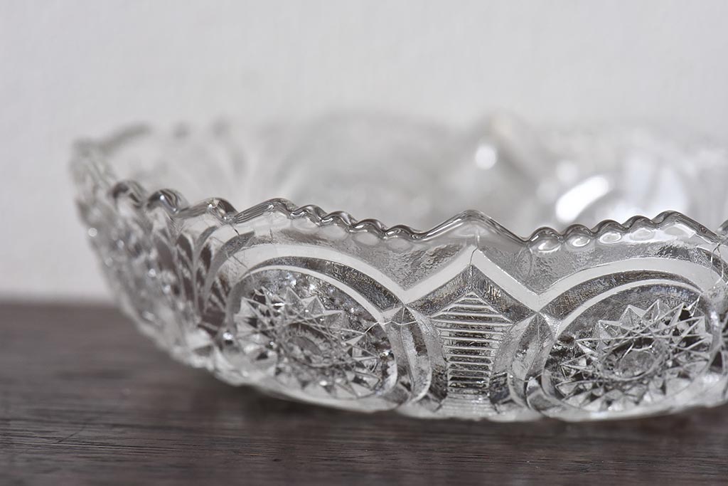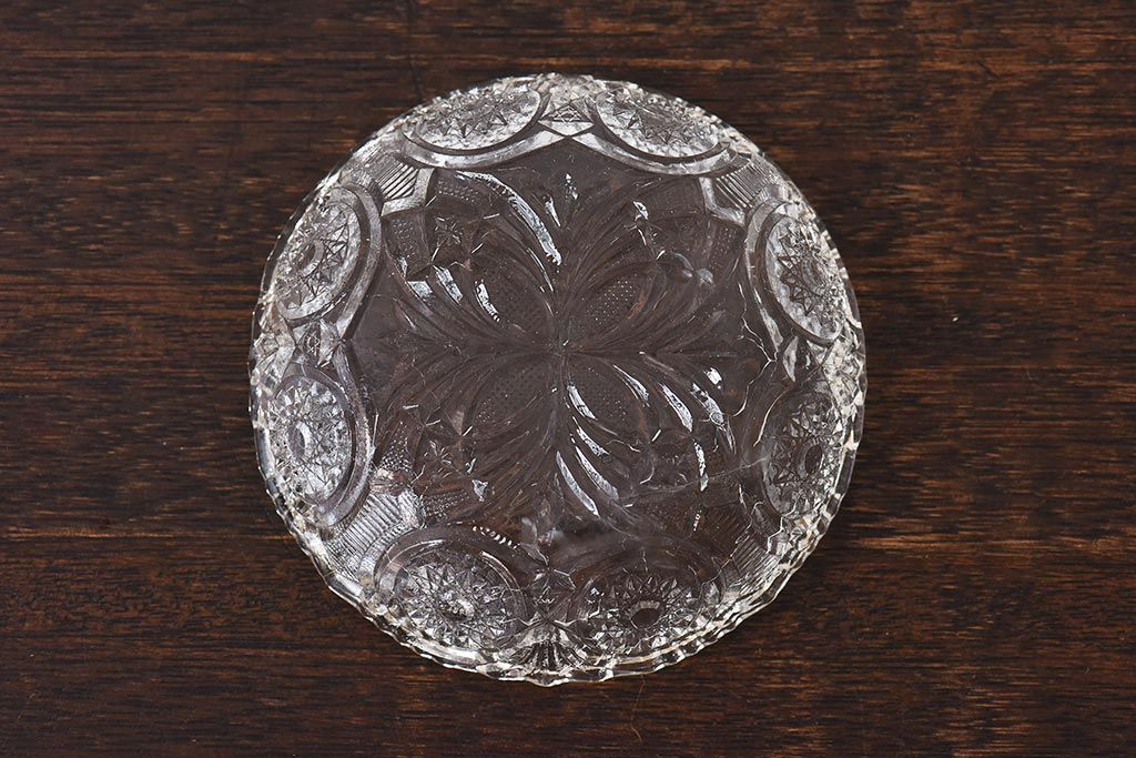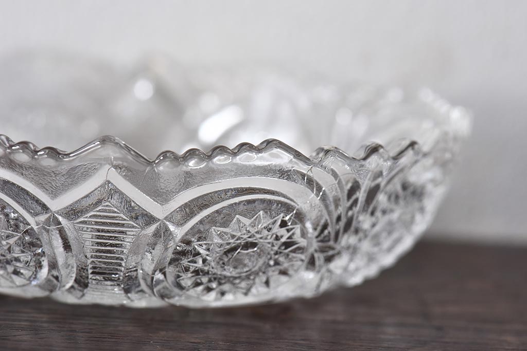 アンティーク雑貨 昭和レトロ オーソドックスな花モチーフのガラス深皿(小皿、鉢)3枚セット