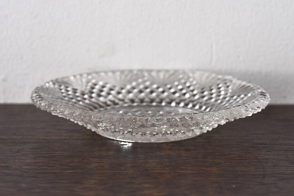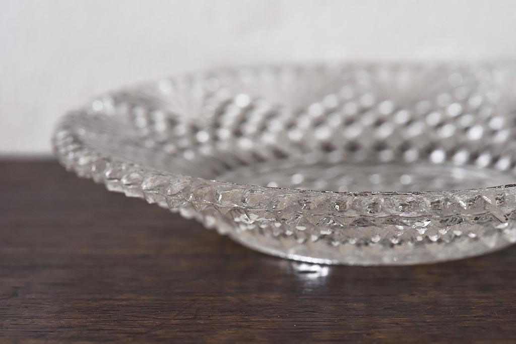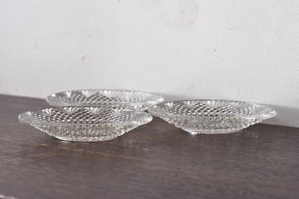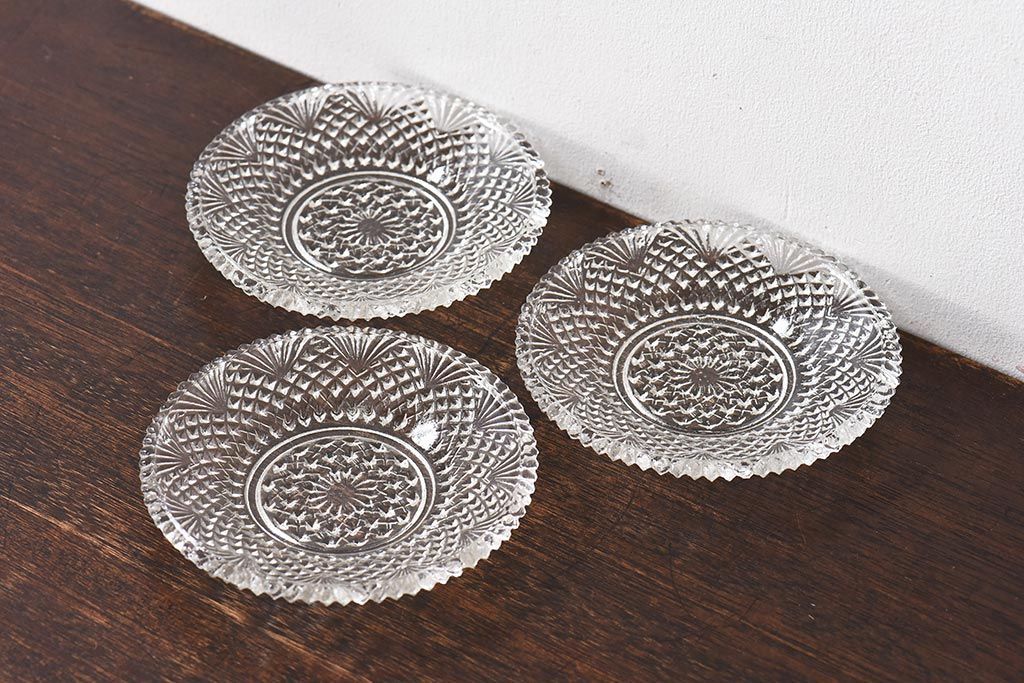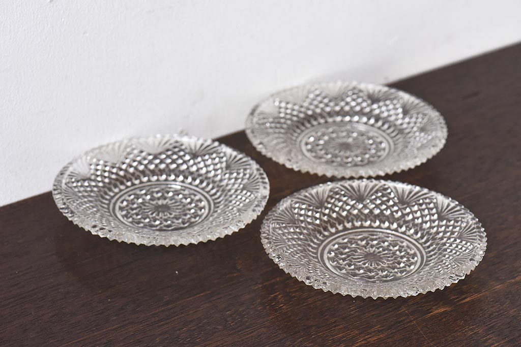 アンティーク雑貨 プレスガラス 昭和レトロ アンティークの小皿(レース皿)3枚セット
