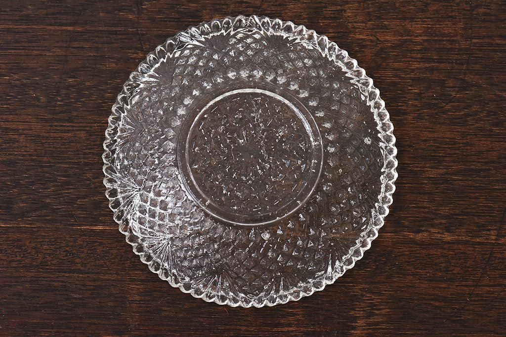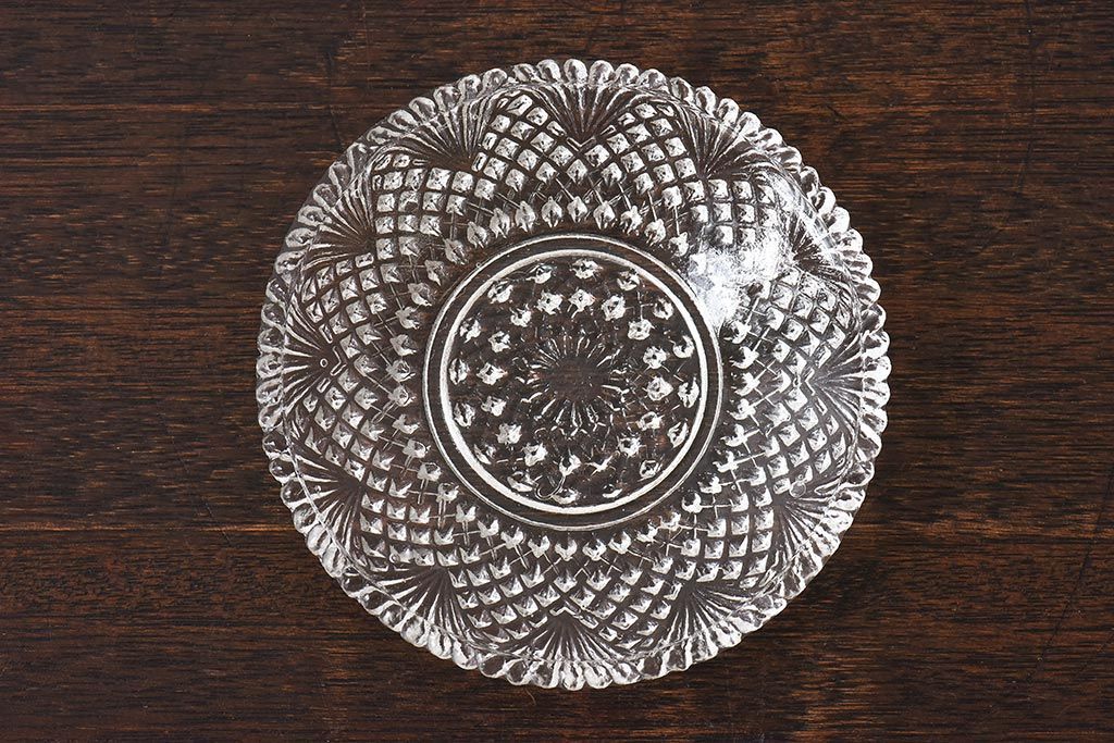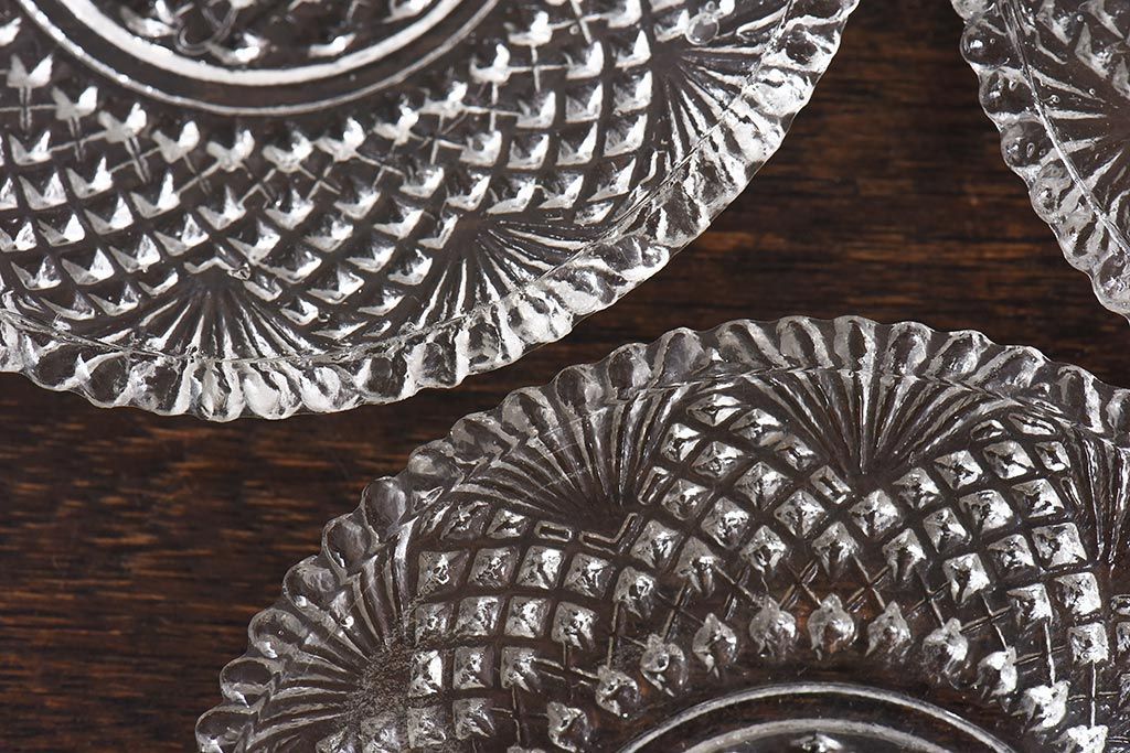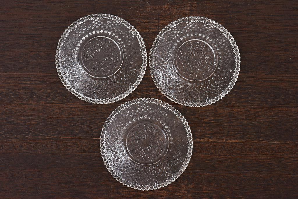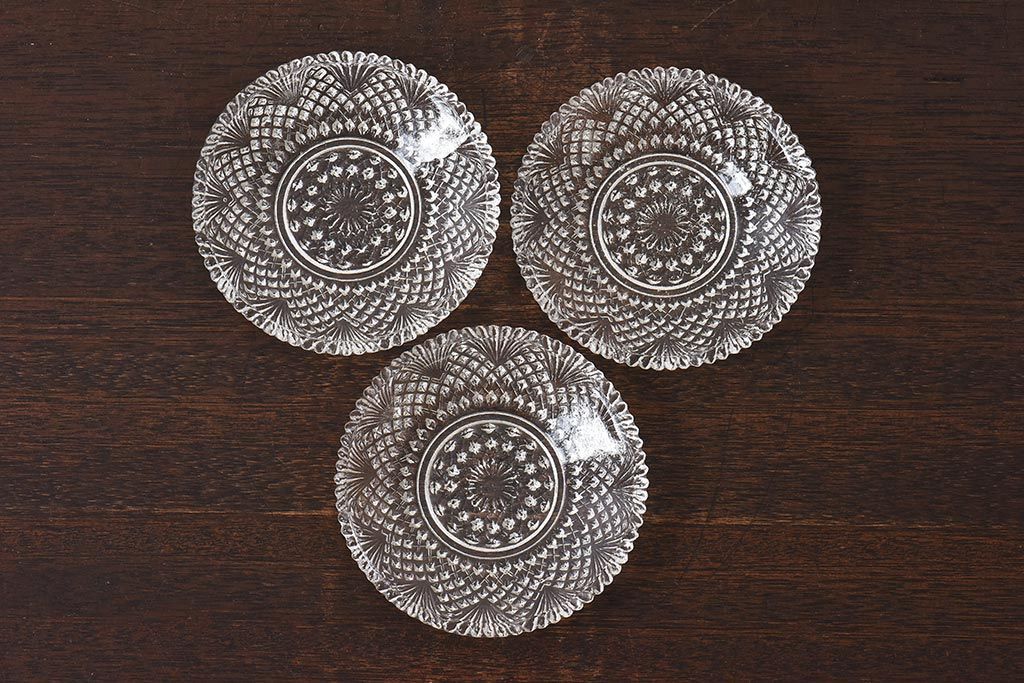 ラフジュ工房> 和食器・茶道具 > アンティーク雑貨 プレスガラス 昭和レトロ アンティークの小皿(レース皿)3枚セット