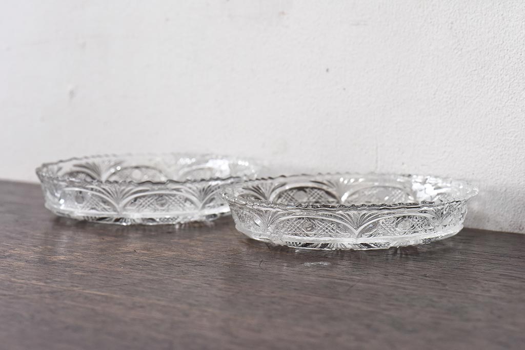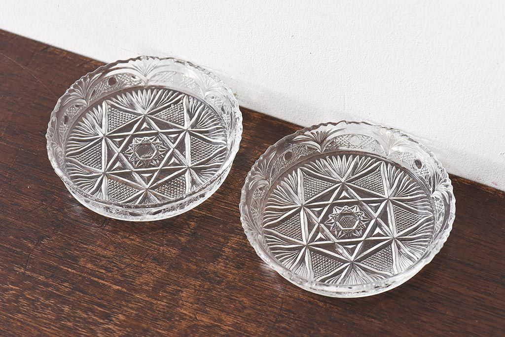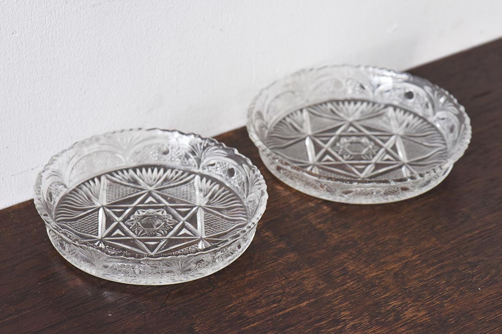 アンティーク雑貨 プレスガラス 昭和レトロ アンティークの小皿 2枚セット