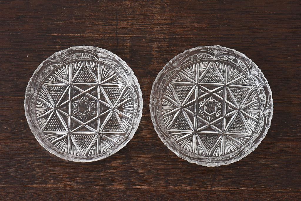 ラフジュ工房> 和食器・茶道具 > アンティーク雑貨 プレスガラス 昭和レトロ アンティークの小皿 2枚セット