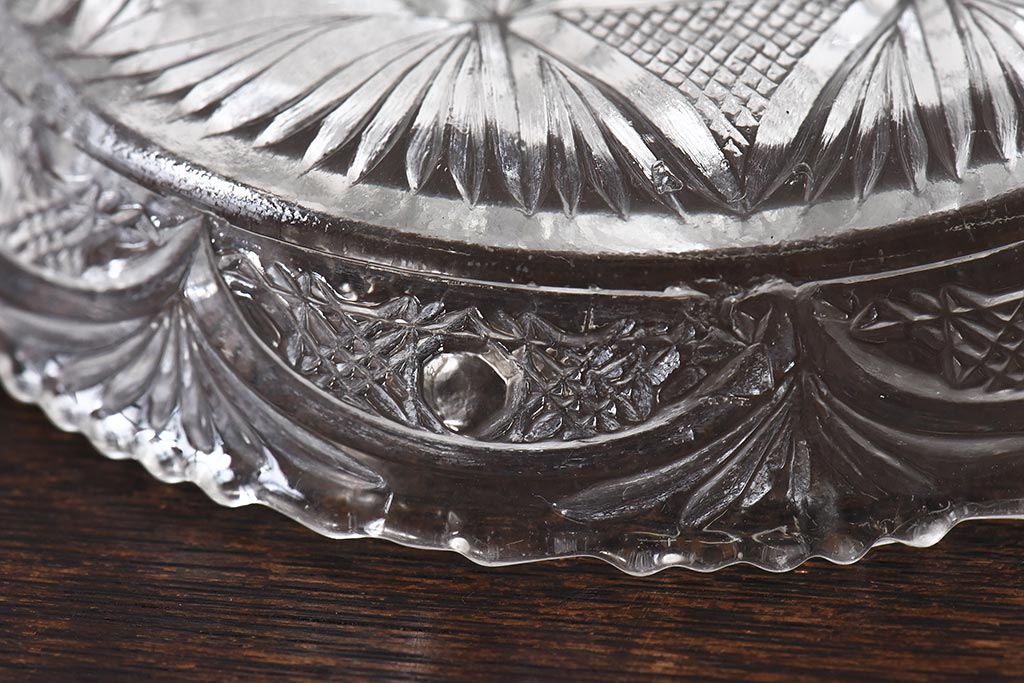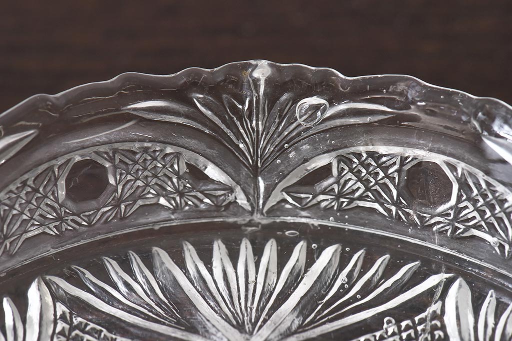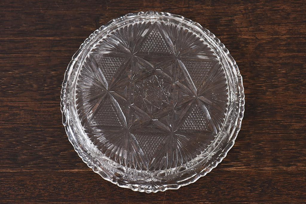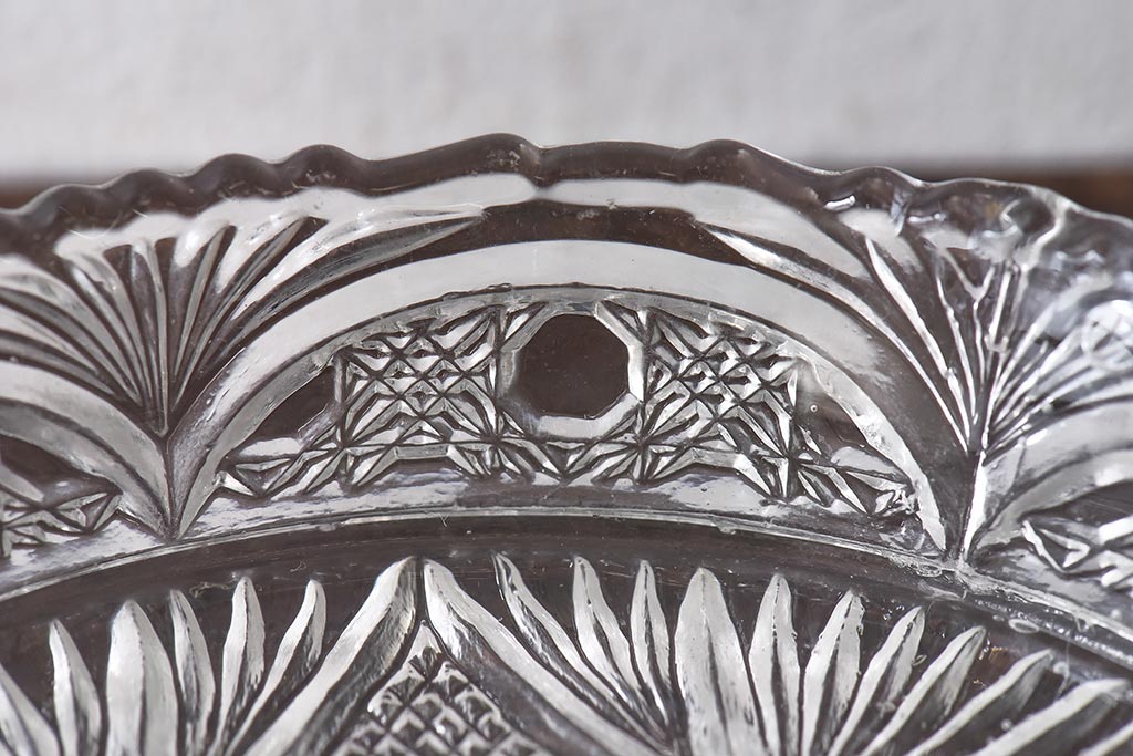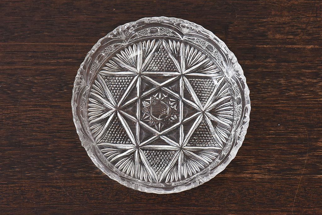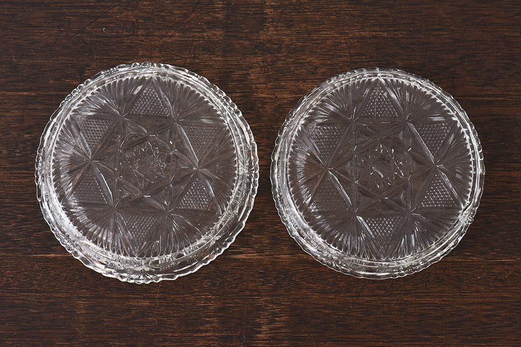 ラフジュ工房> 骨董・美術品> 骨董-ガラス食器 > アンティーク雑貨 プレスガラス 昭和レトロ アンティークの小皿 2枚セット