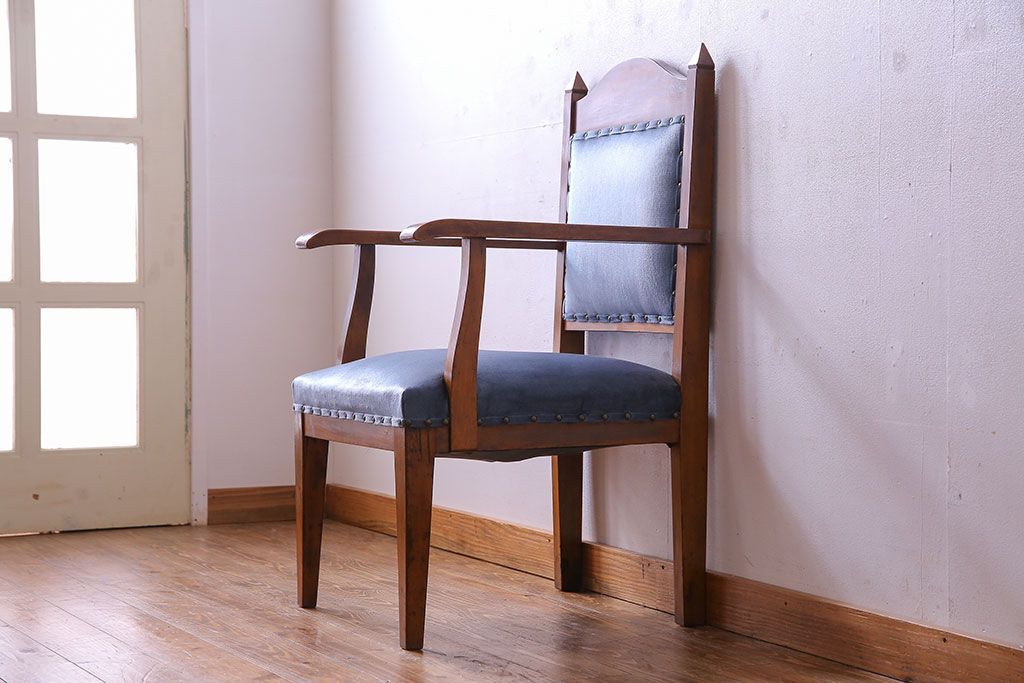 ラフジュ工房> 椅子・ベンチ> アームチェア > レトロ家具 昭和レトロ 古い木の質感が趣き深いチャーチチェア(椅子、アームチェア)(1)