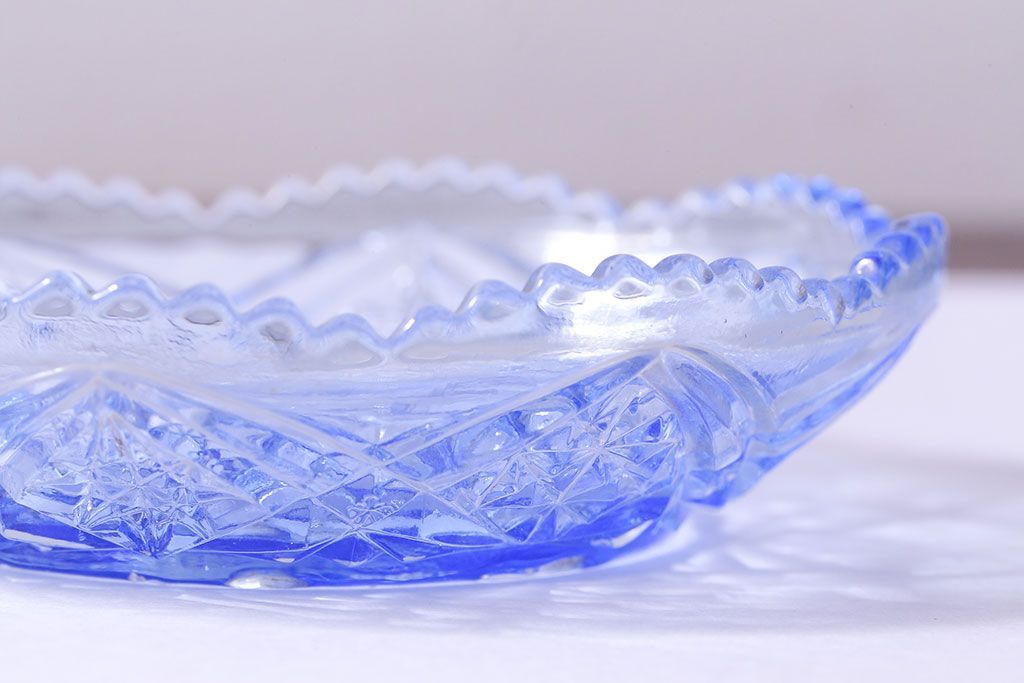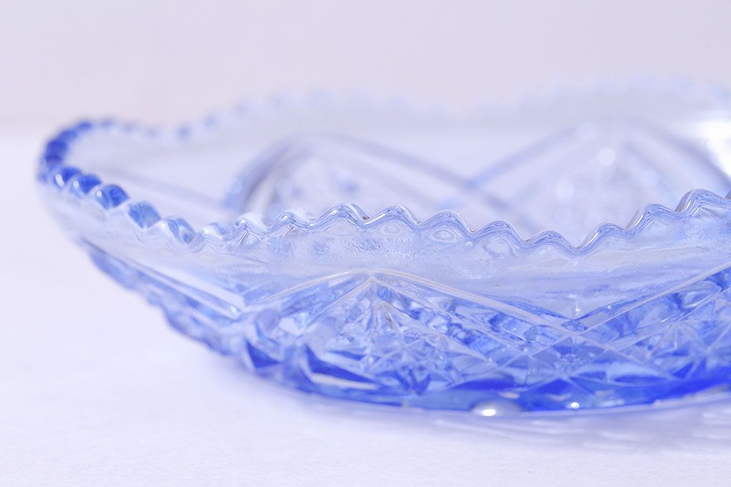 ラフジュ工房> 和食器・茶道具 > アンティーク雑貨 昭和レトロ 鳥の模様が愛らしい青いガラスの小皿(プレート、器)