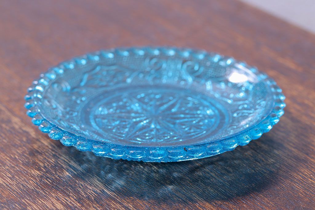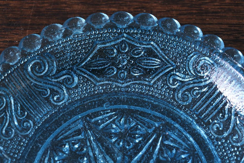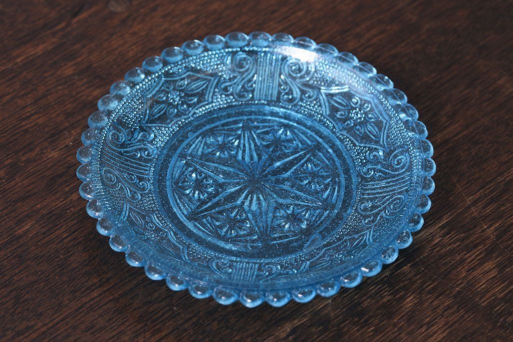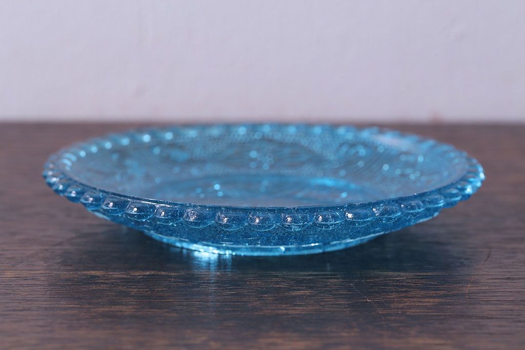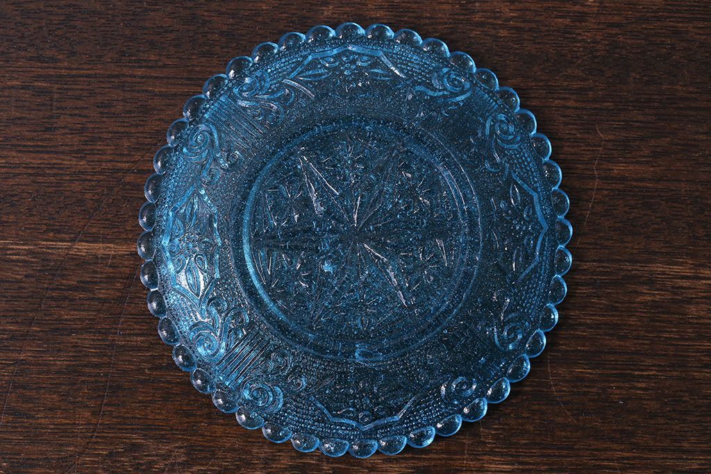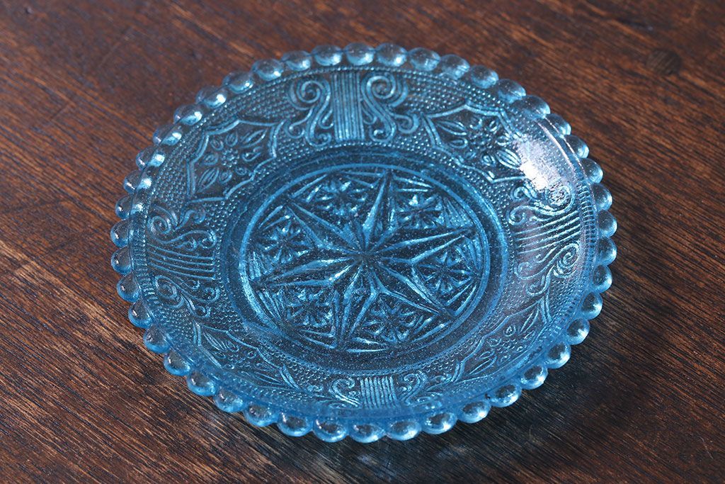ラフジュ工房> 和食器・茶道具 > アンティーク雑貨 大正期 星・ダイヤ 唐草文 レトロなプレスガラスのプレート(小皿、器)(1)