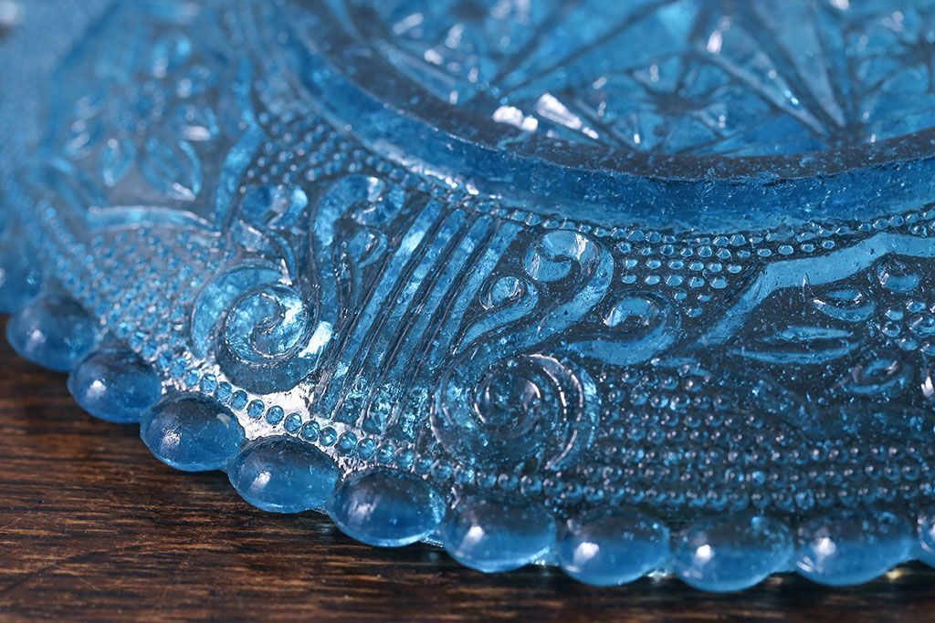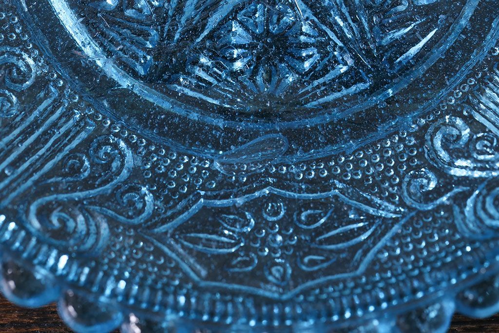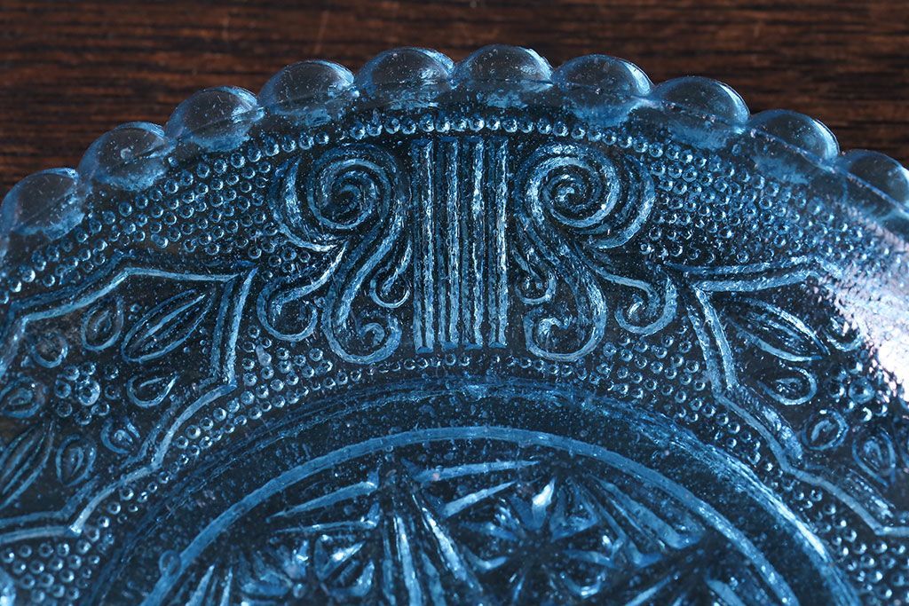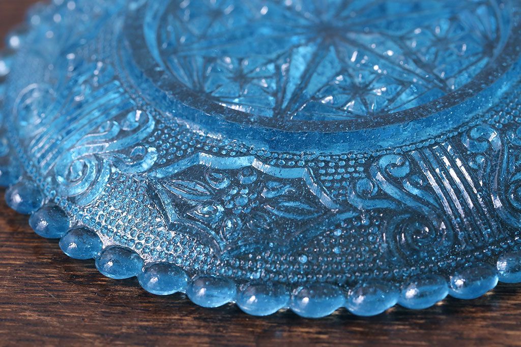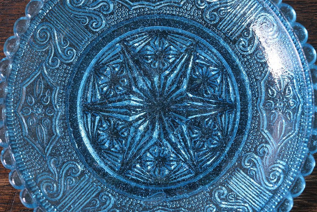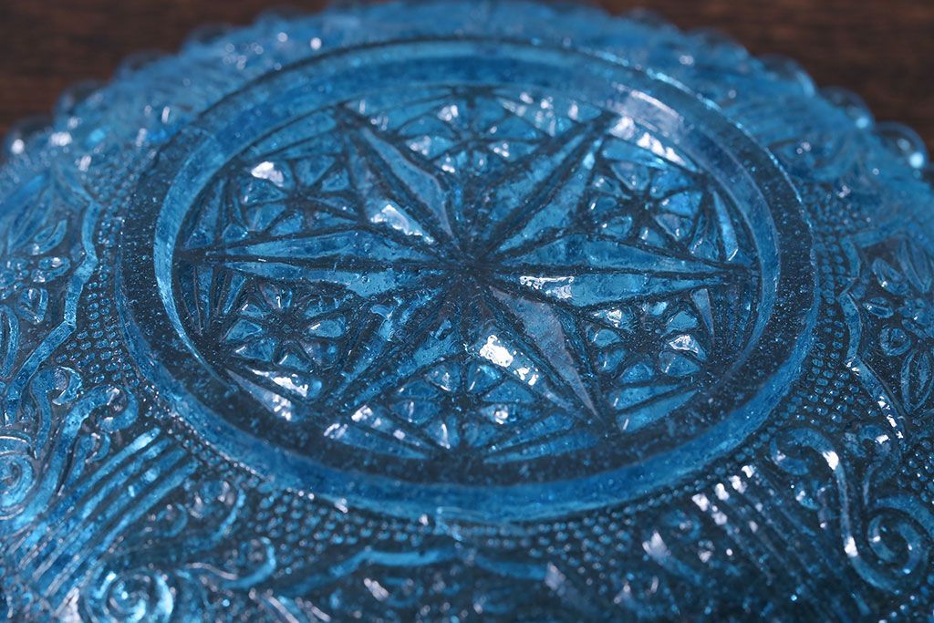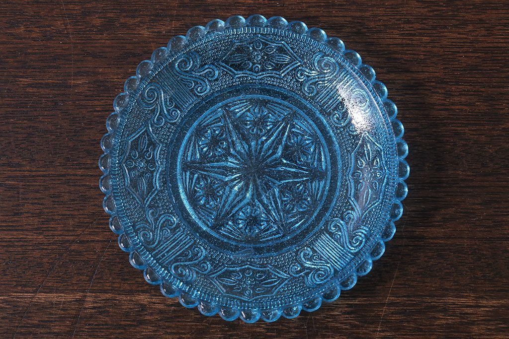 アンティーク雑貨 大正期 星・ダイヤ 唐草文 レトロなプレスガラスのプレート(小皿、器)(1)