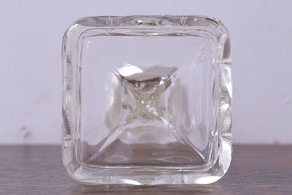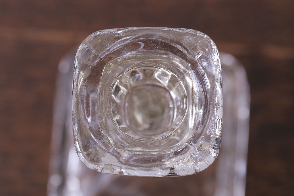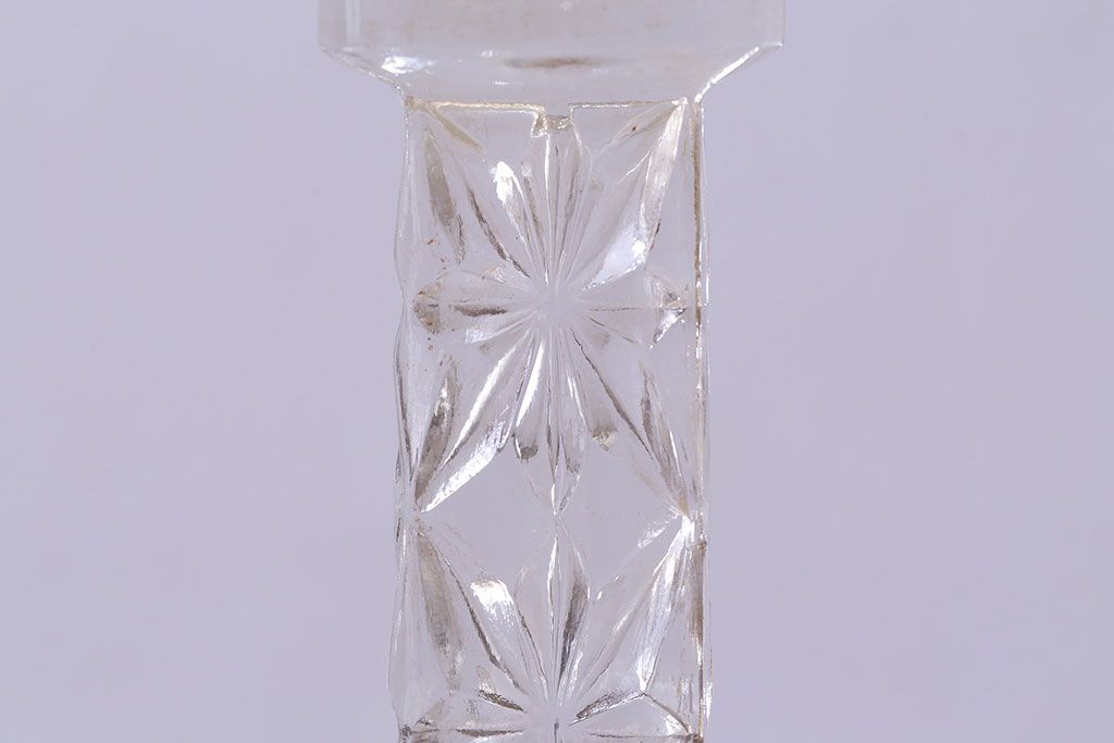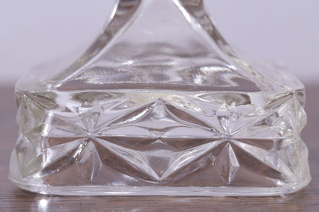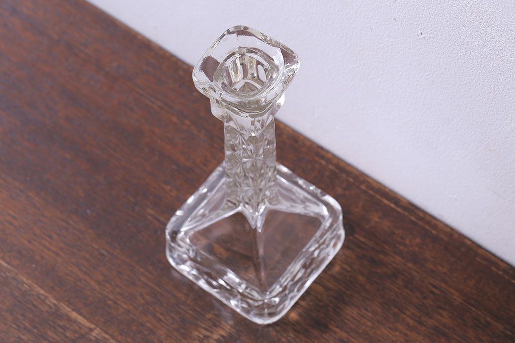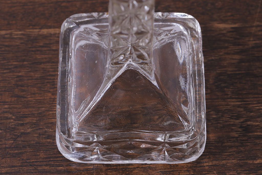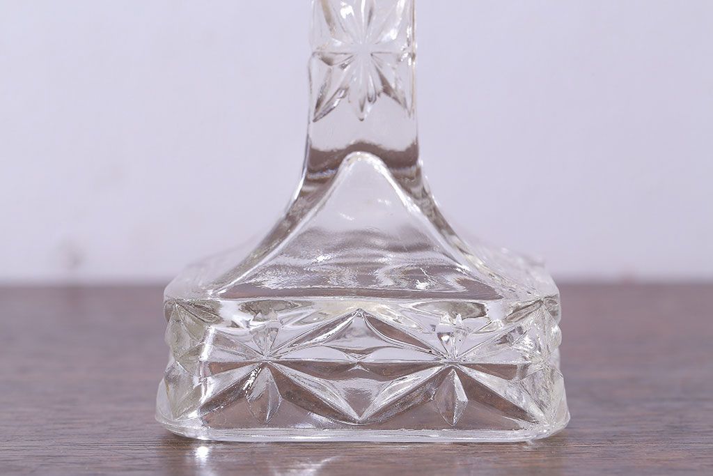 アンティーク雑貨 イギリスアンティーク 切り込みのデザインがシックなガラス製キャンドルスタンド(ろうそく立て、キャンドルホルダー)
