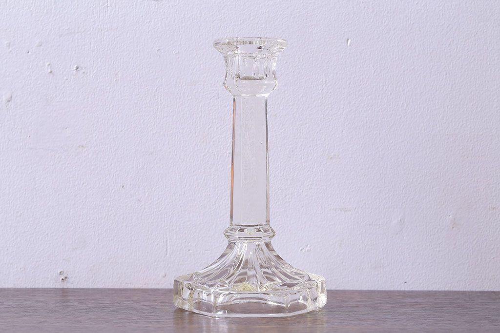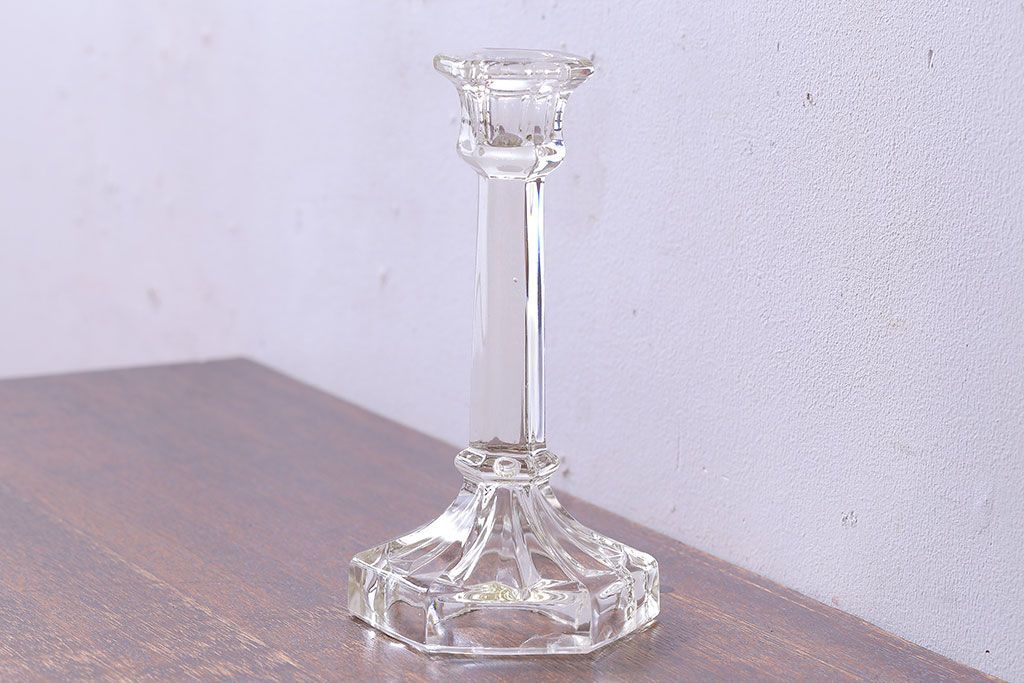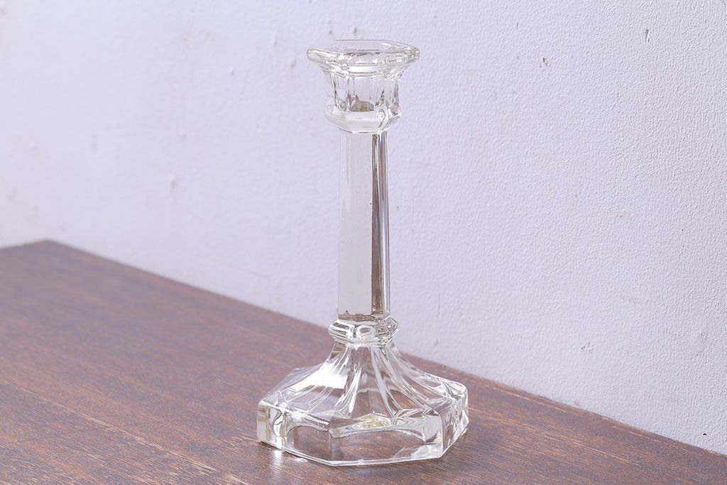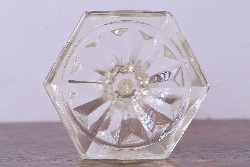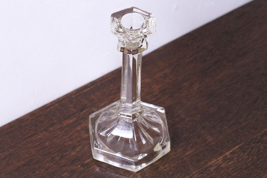 アンティーク雑貨 イギリスアンティーク スタイリッシュな六角形ガラス製キャンドルスタンド(ろうそく立て、キャンドルホルダー)