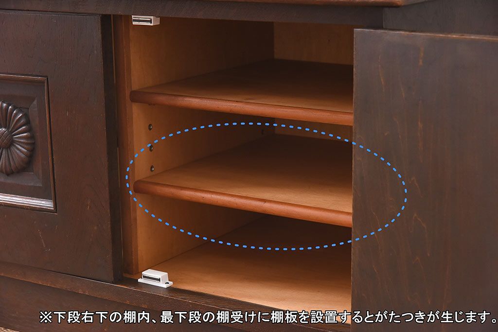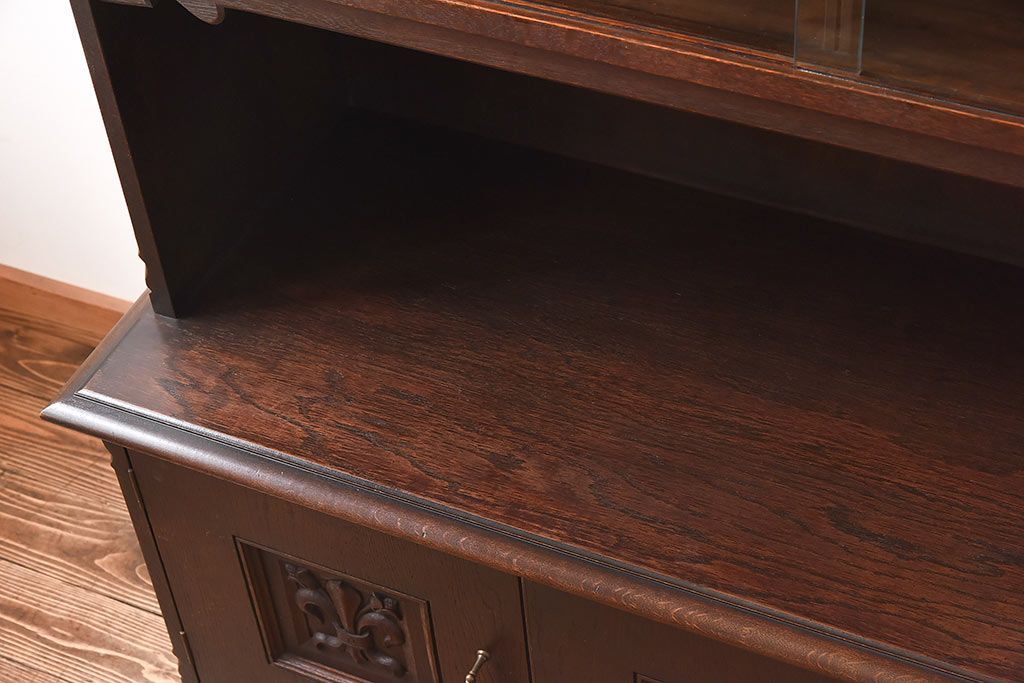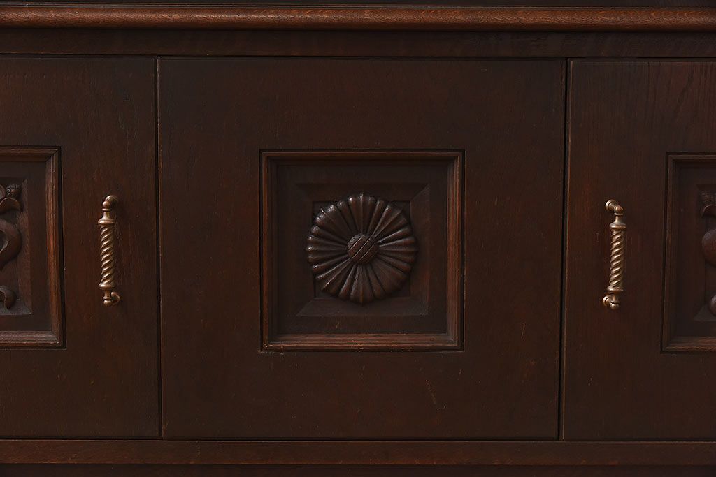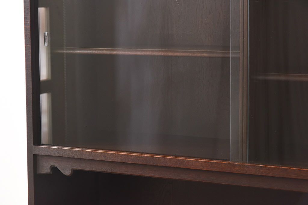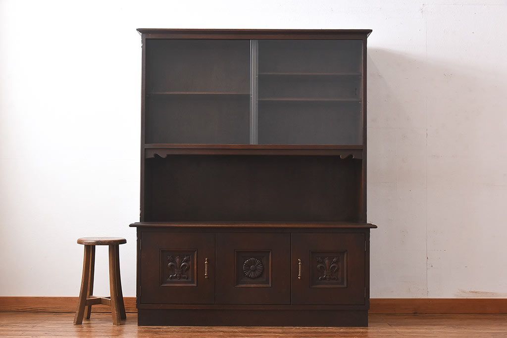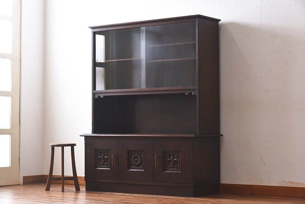 ラフジュ工房> キャビネット・戸棚> 食器棚・カップボード > ビンテージ 神戸洋家具 永田良介商店製 チルダ彫刻がおしゃれなキャビネット(食器棚、本棚)(定価約50万円)