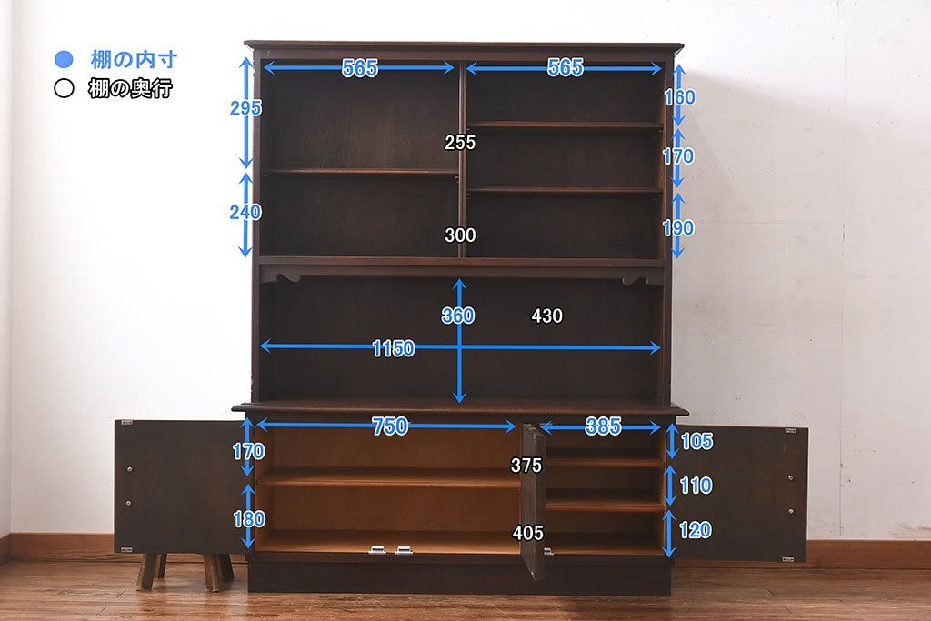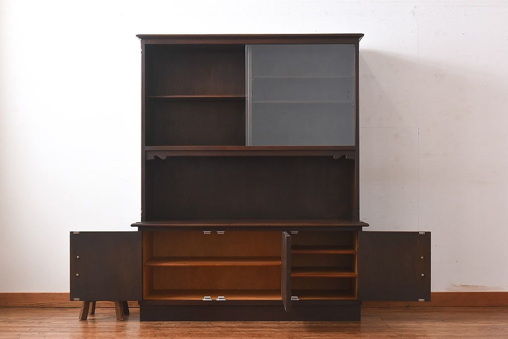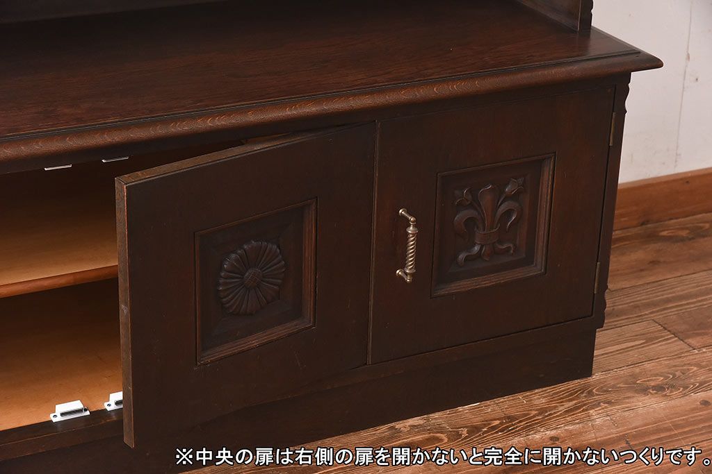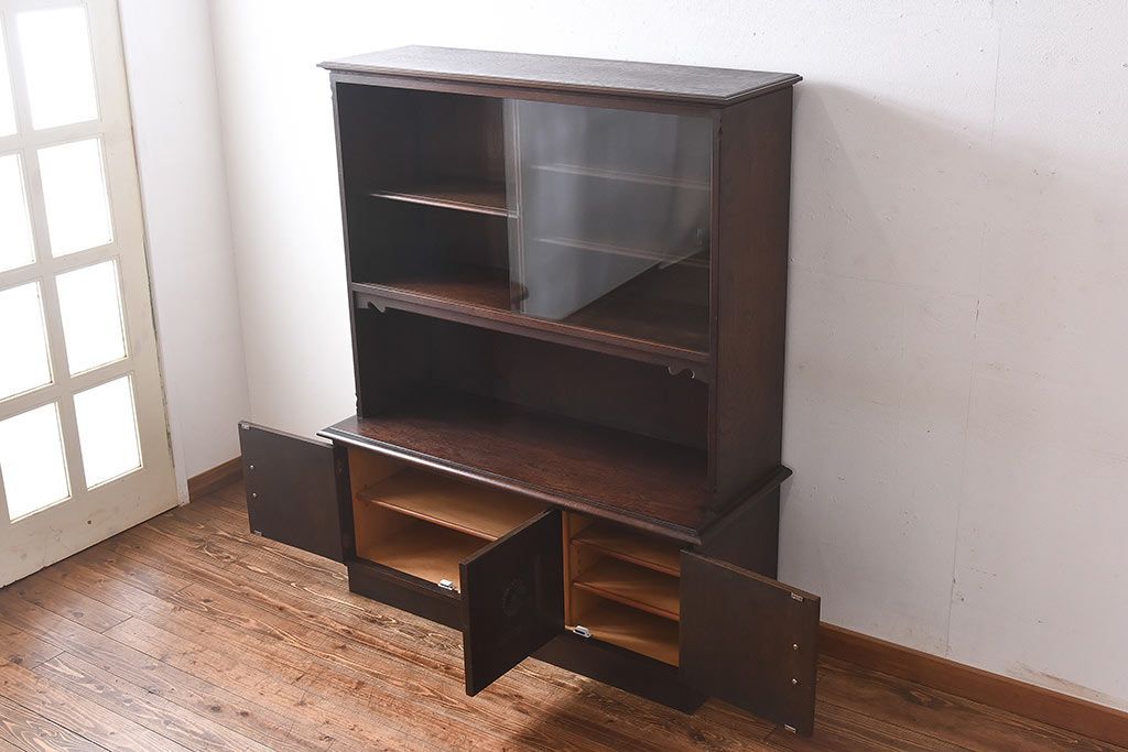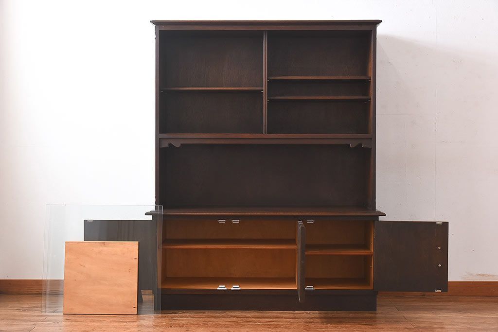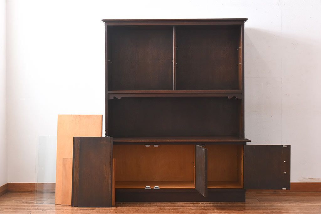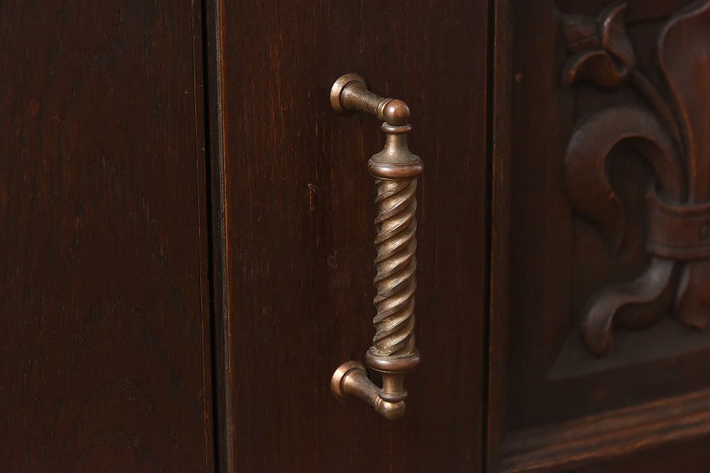 ラフジュ工房> キャビネット・戸棚> 食器棚・カップボード > ビンテージ 神戸洋家具 永田良介商店製 チルダ彫刻がおしゃれなキャビネット(食器棚、本棚)(定価約50万円)