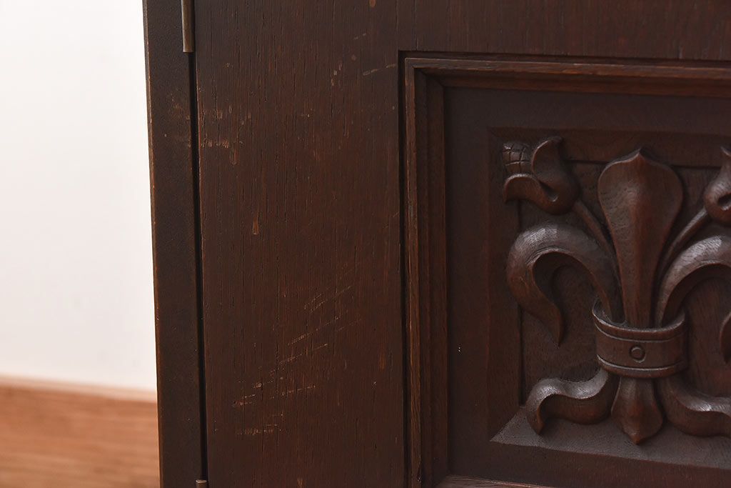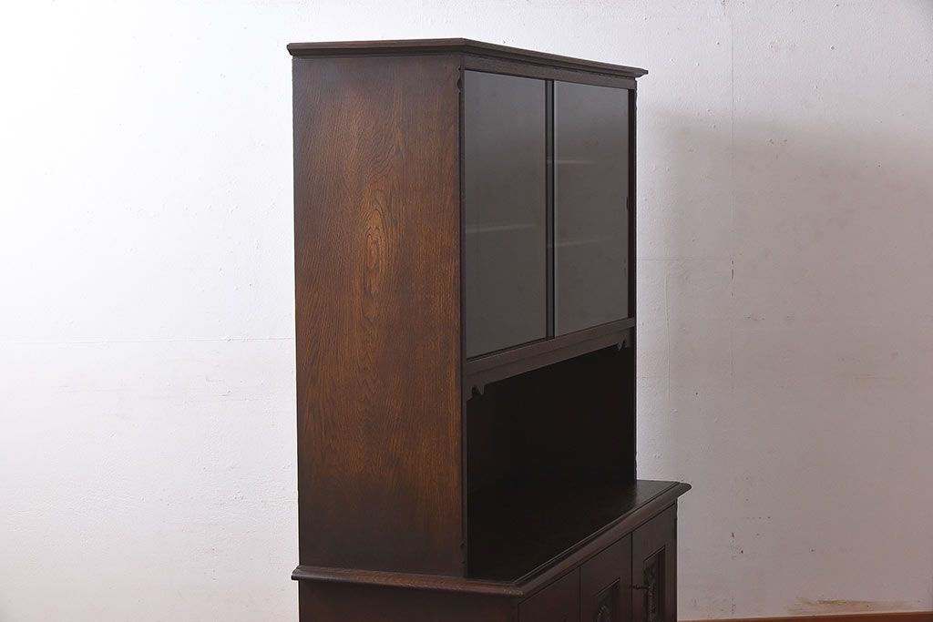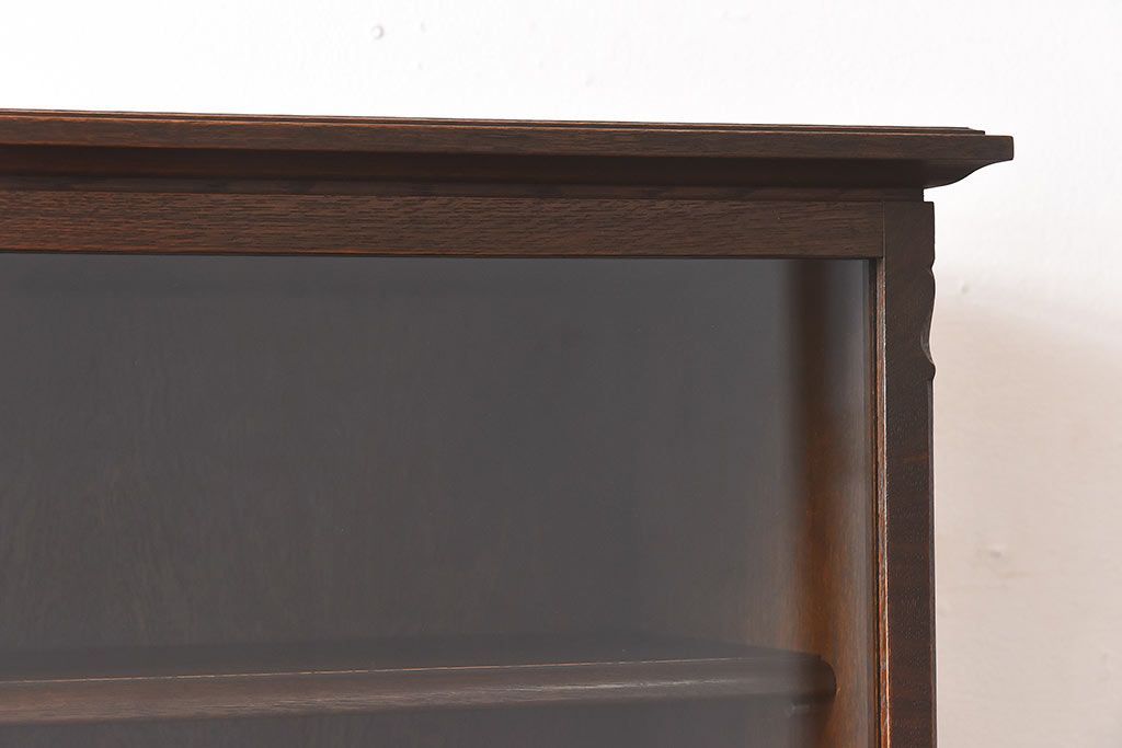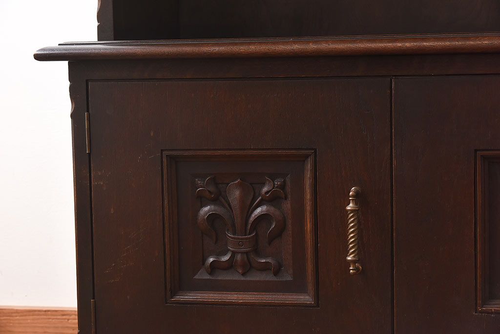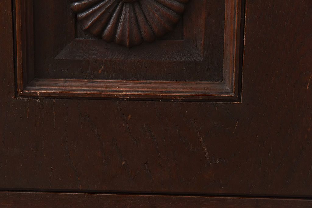ビンテージ 神戸洋家具 永田良介商店製 チルダ彫刻がおしゃれなキャビネット(食器棚、本棚)(定価約50万円)