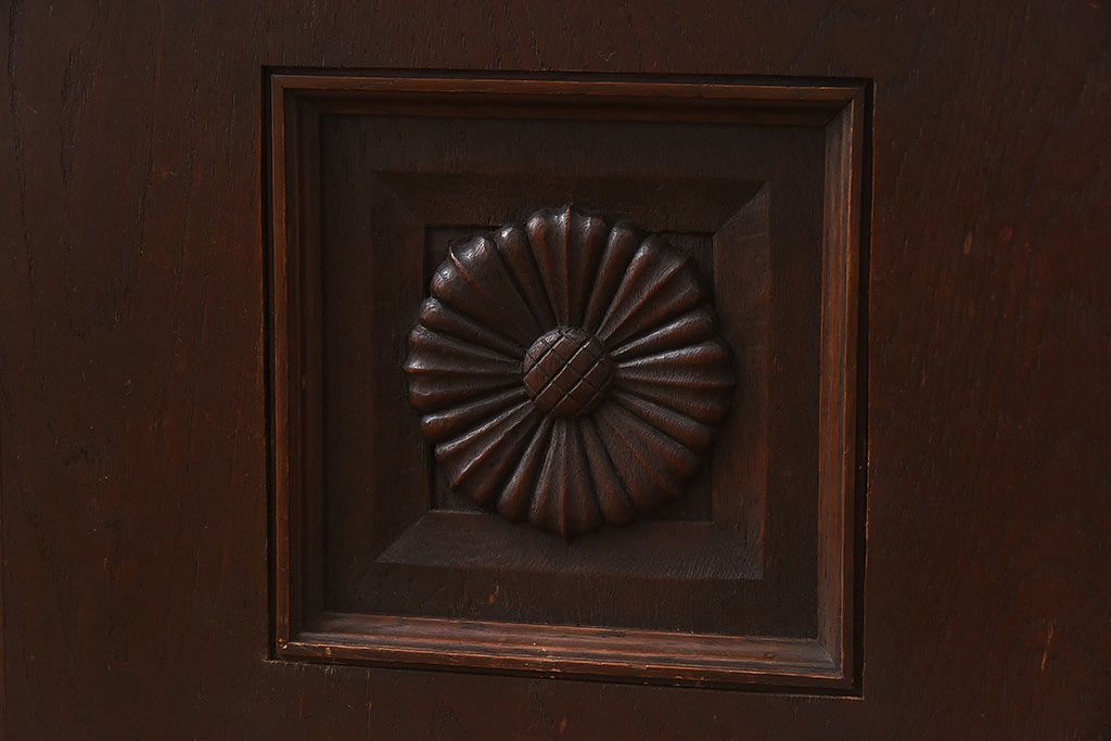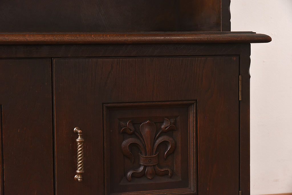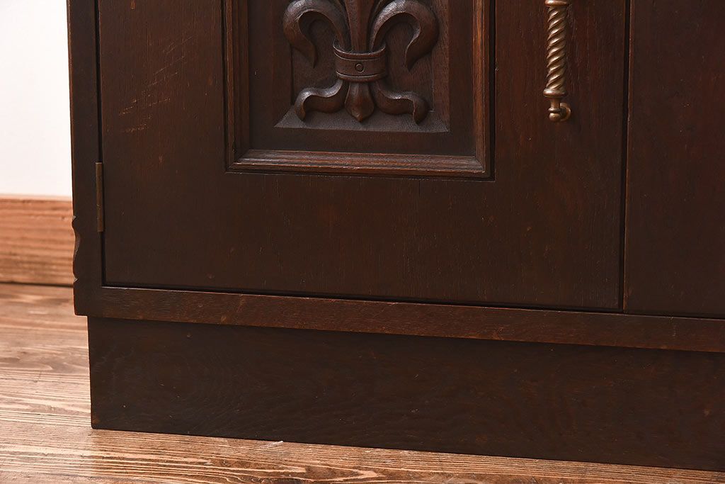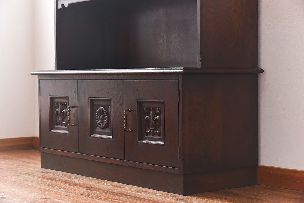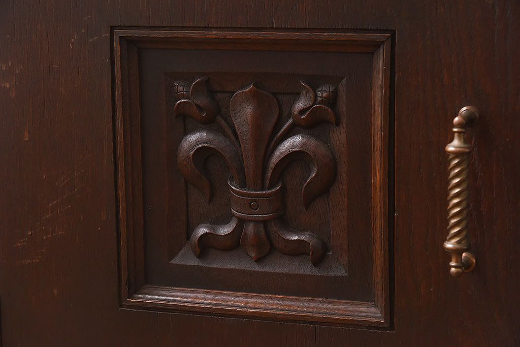ビンテージ 神戸洋家具 永田良介商店製 チルダ彫刻がおしゃれなキャビネット(食器棚、本棚)(定価約50万円)