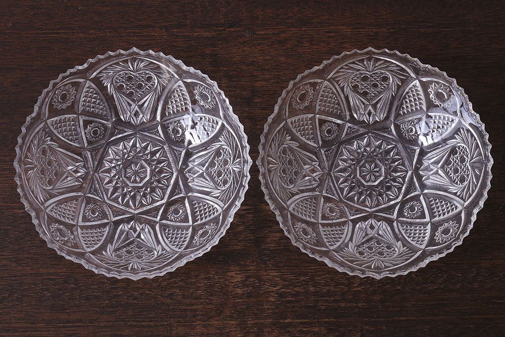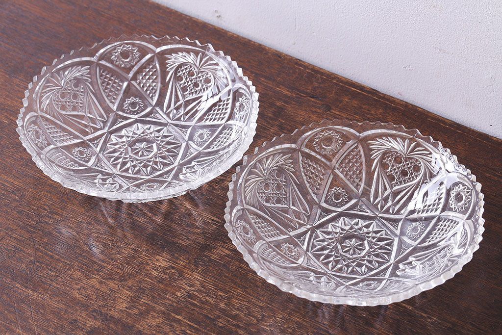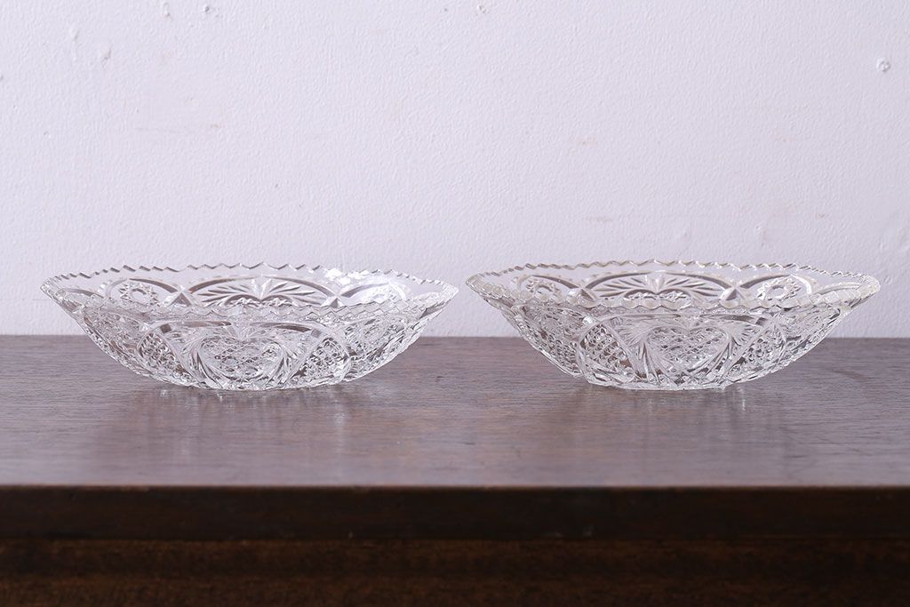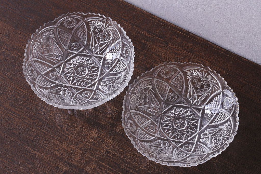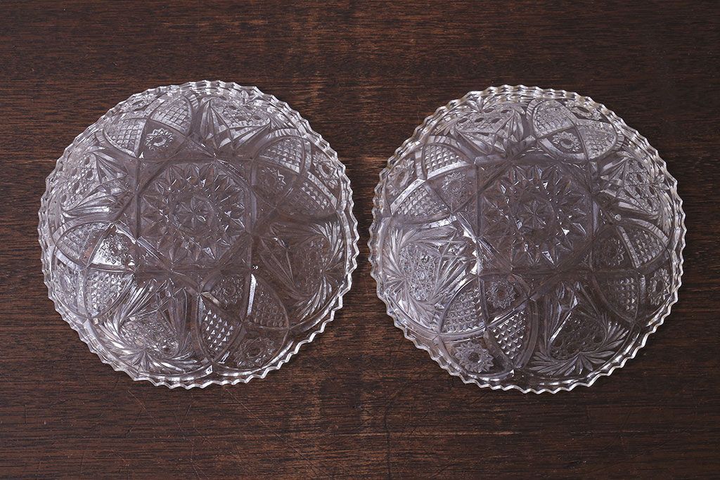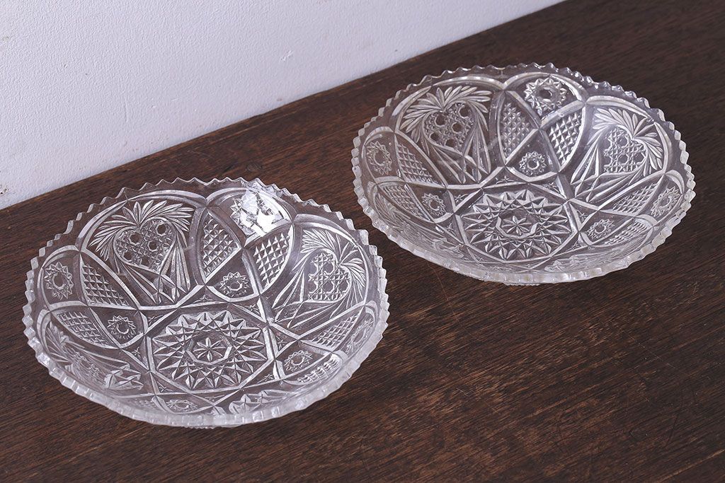 アンティーク雑貨 繊細で華やかなデザインのガラス製レース深皿(鉢、ボウル)2枚セット(3)