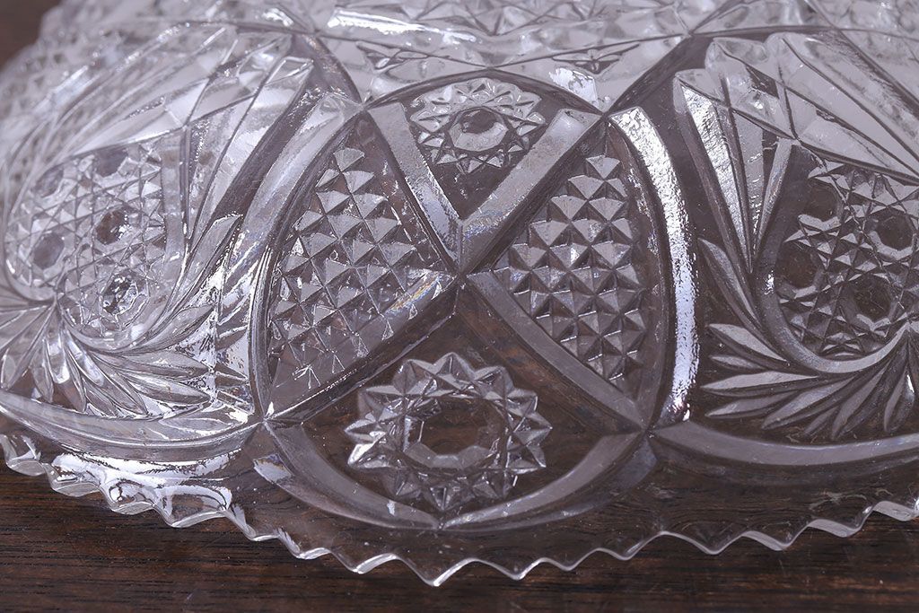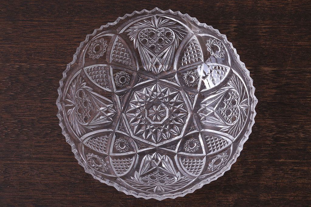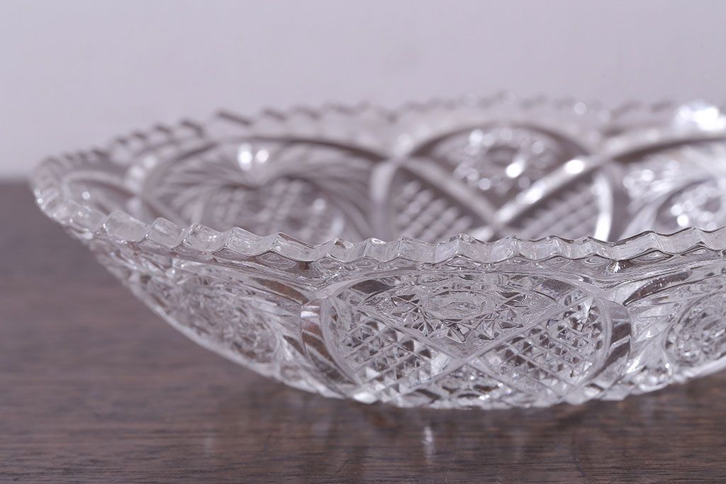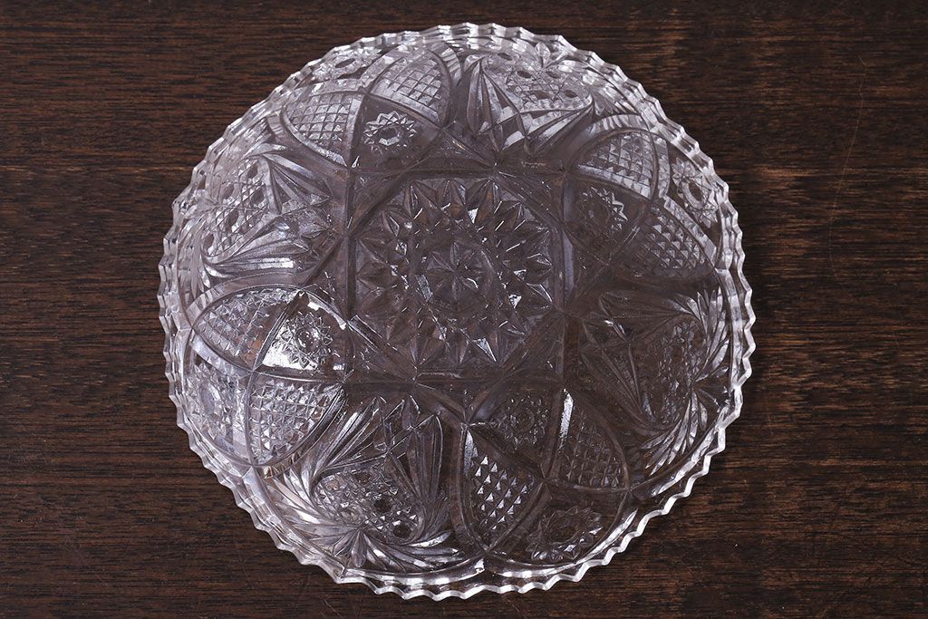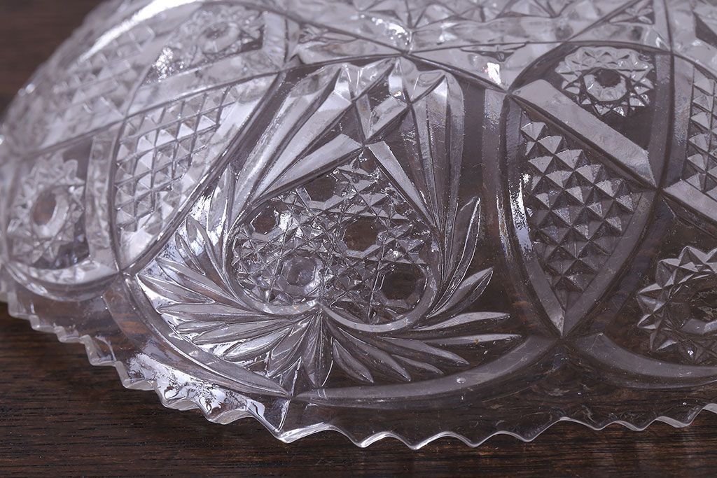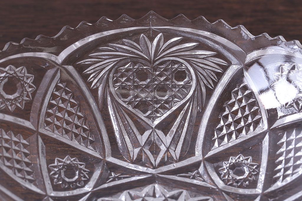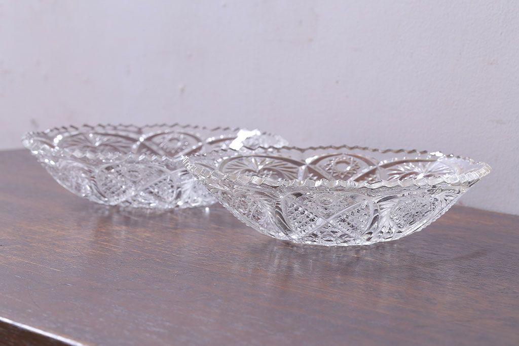 アンティーク雑貨 繊細で華やかなデザインのガラス製レース深皿(鉢、ボウル)2枚セット(3)
