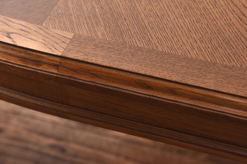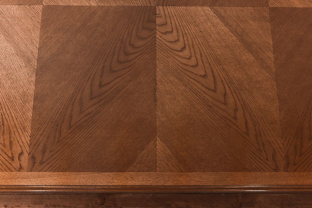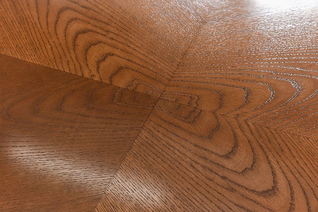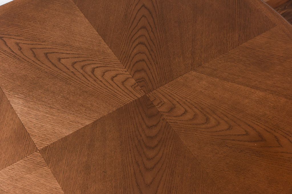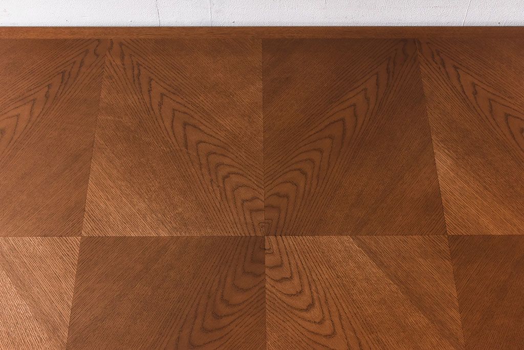 木目を組み合わせた美しい天板が魅力的な存在感を放ちます。