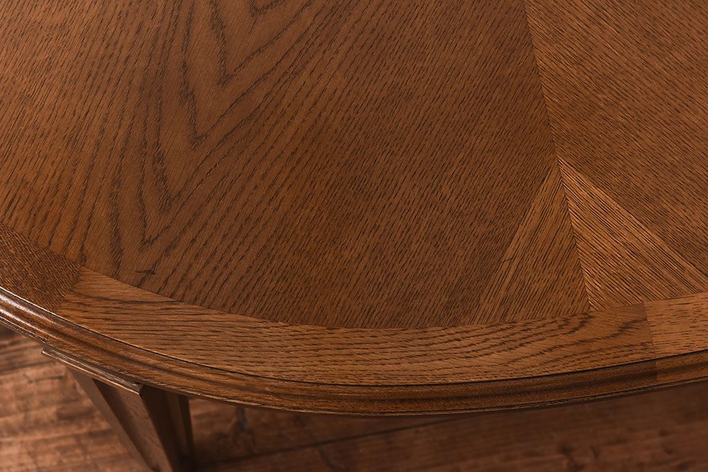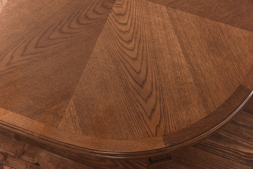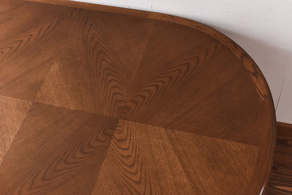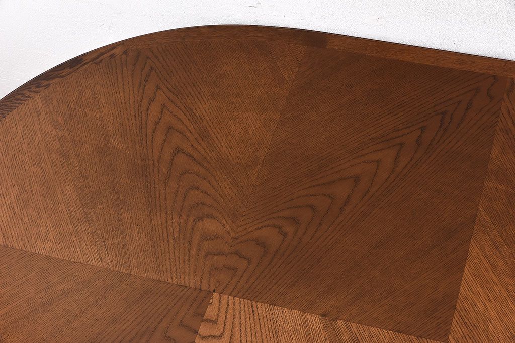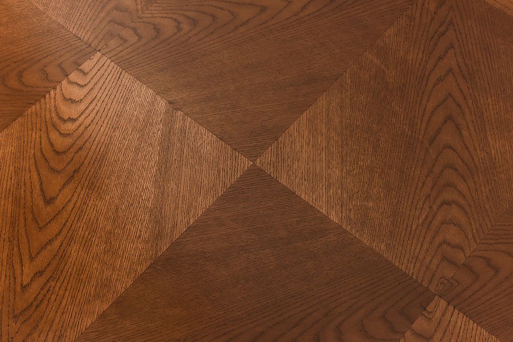 木目を組み合わせた美しい天板が魅力的な存在感を放ちます。