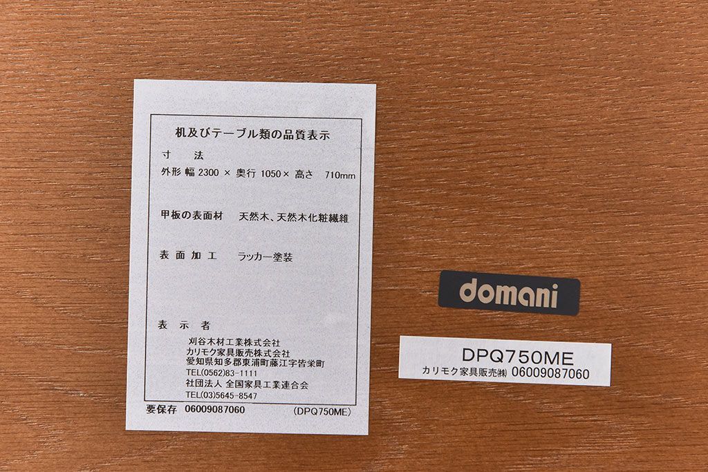 中古美品 カリモク domani(ドマーニ) QUEENS LIFE(クイーンズライフ) ダイニングテーブル(定価約49万円)