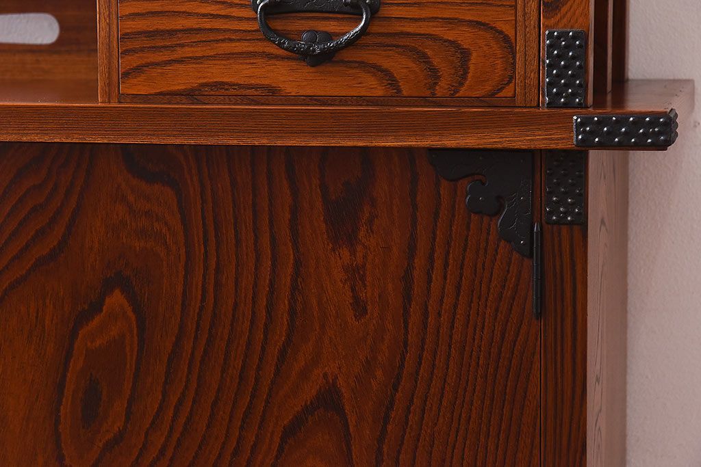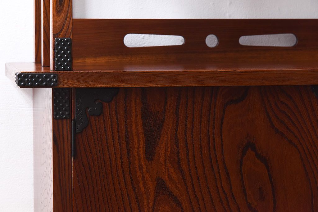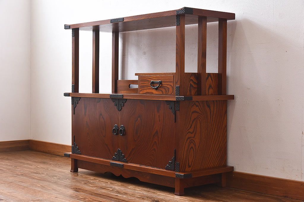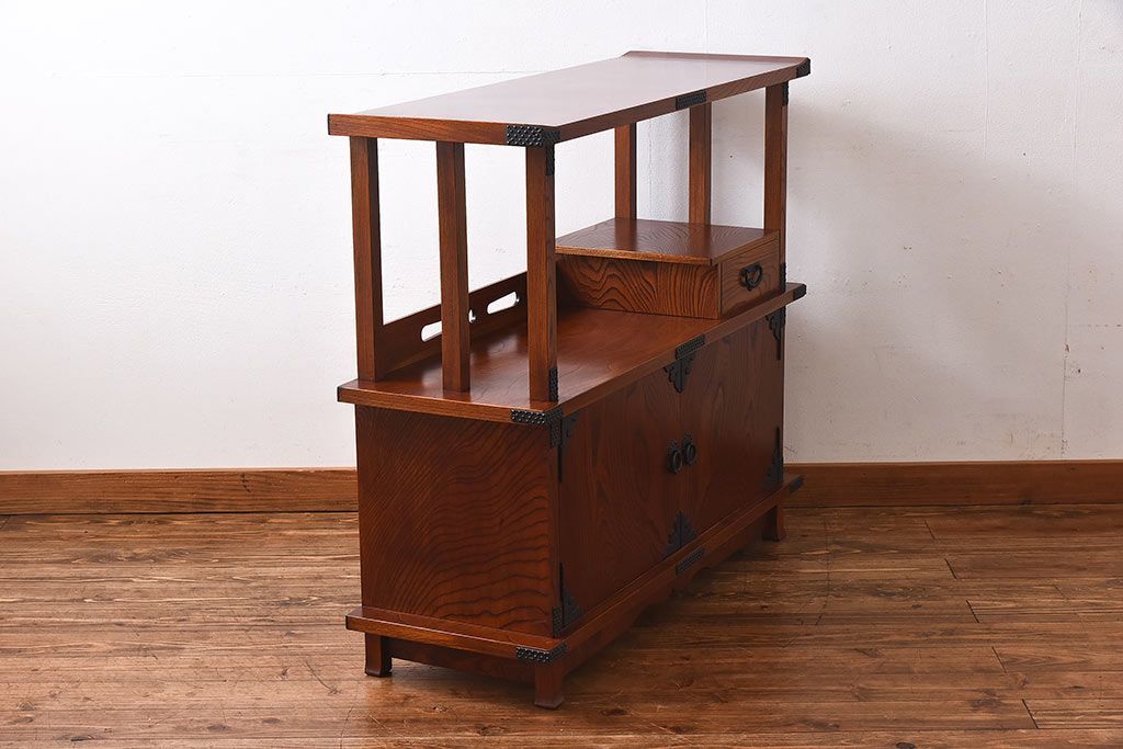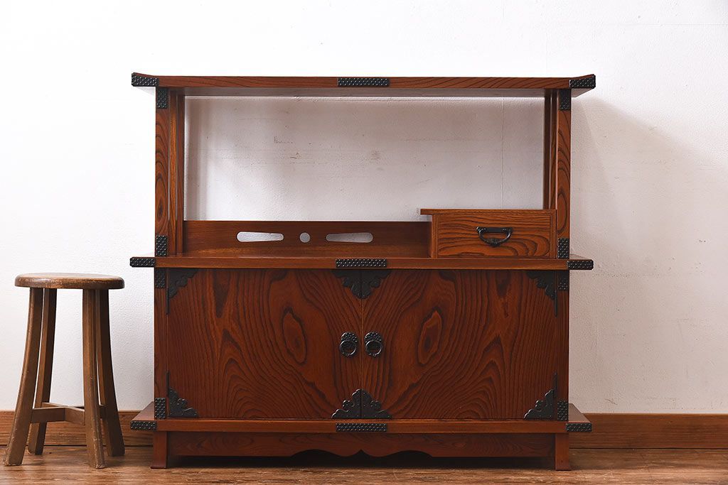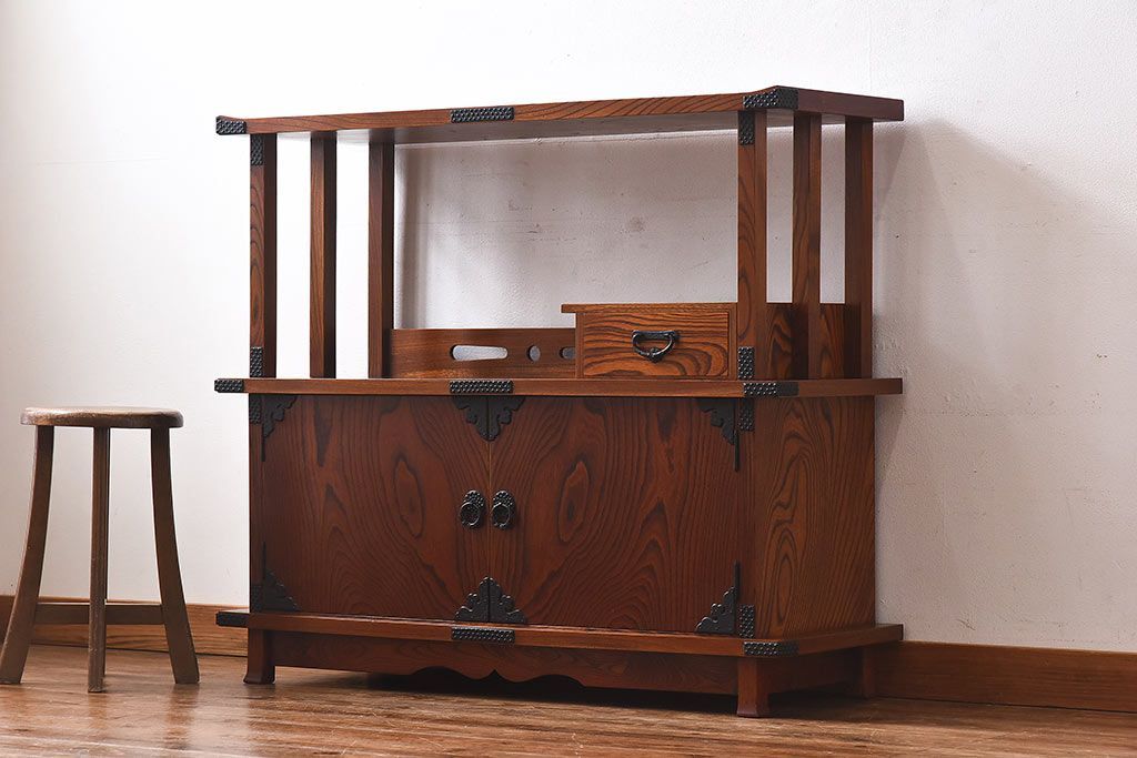 ラフジュ工房> 和箪笥 > 中古 民芸家具 力強い杢目が見事な飾り棚(茶棚)