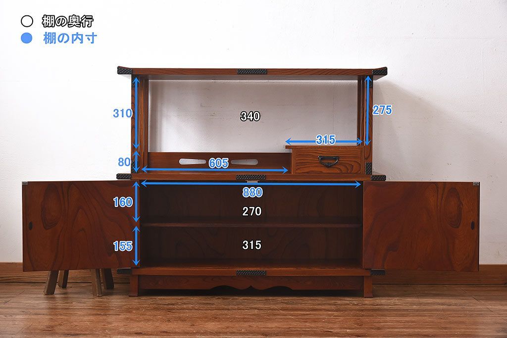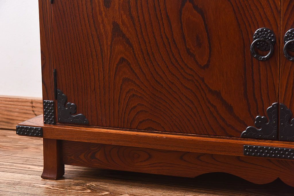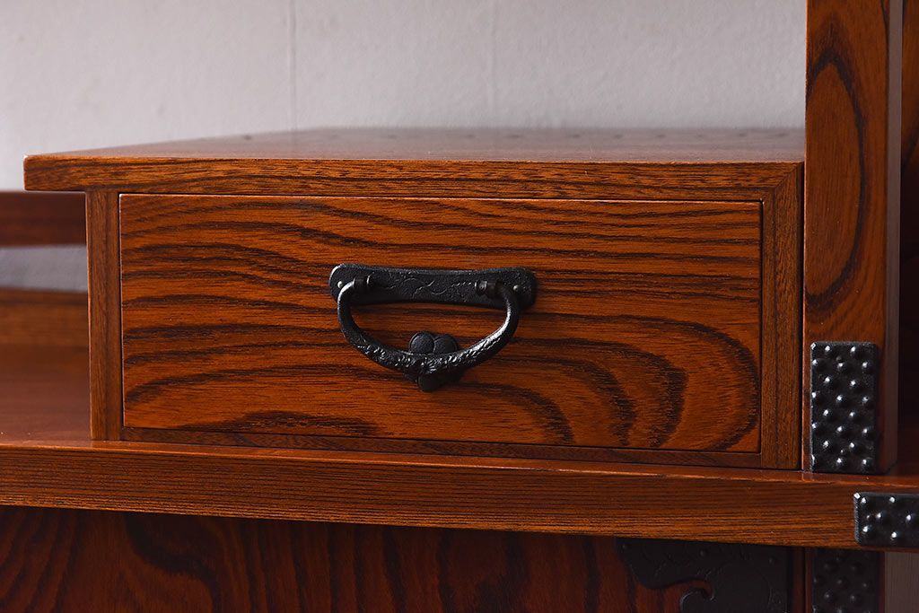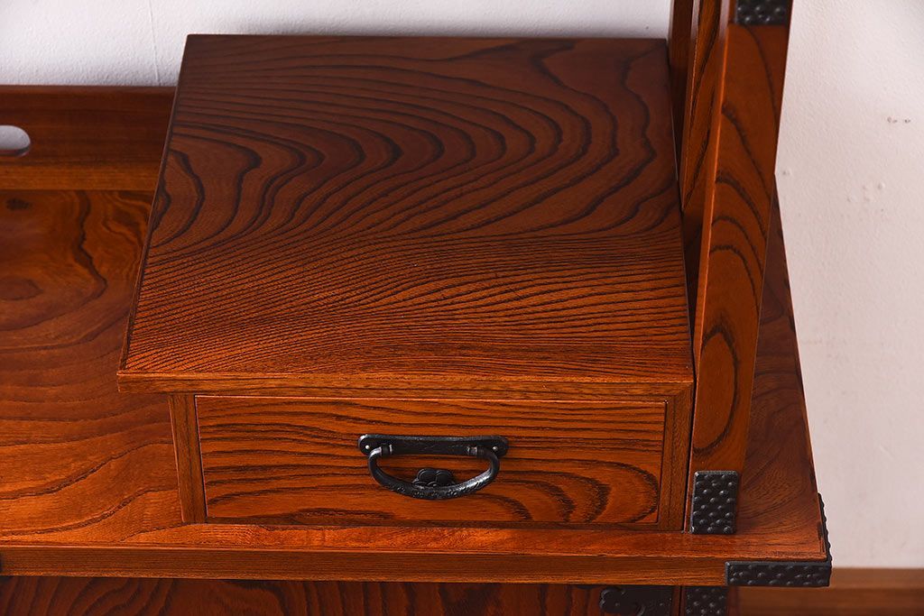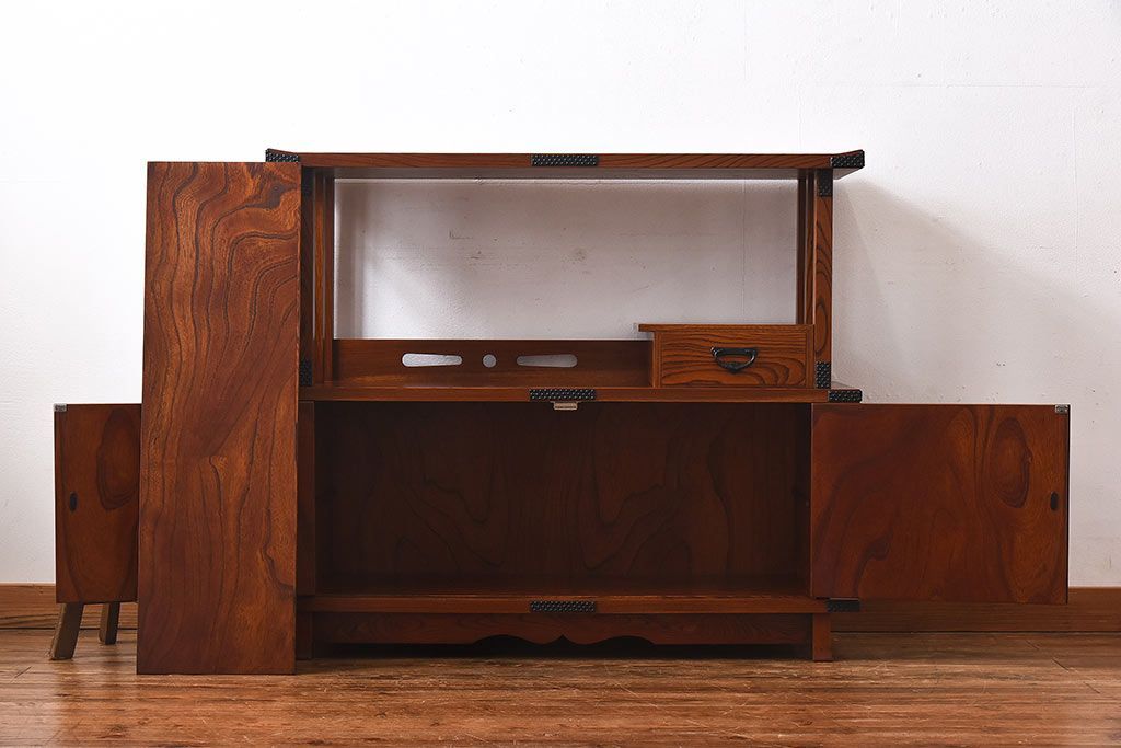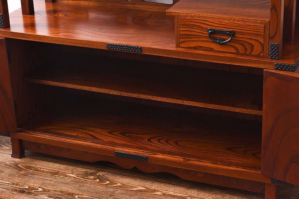 ラフジュ工房> 和箪笥 > 中古 民芸家具 力強い杢目が見事な飾り棚(茶棚)